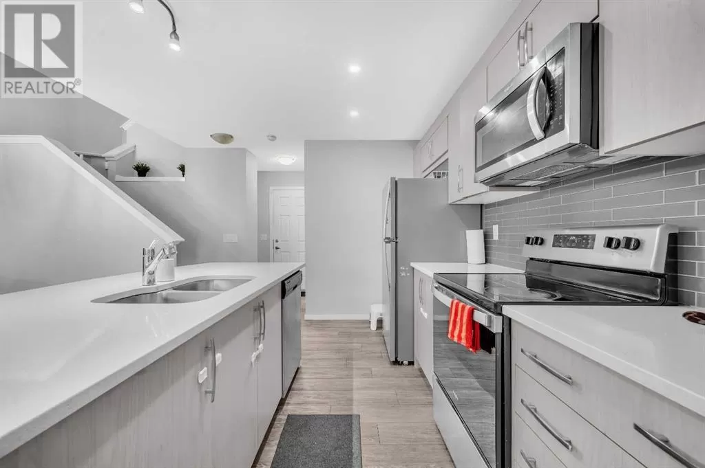 Stylish 3-Bedroom End Unit Townhouse â No Condo Fees!Welcome to this stunning end-unit townhouse offering 3 spacious bedrooms, 2.5 bathrooms, and modern finishes throughout â all with NO condo fees! Perfectly designed for comfort and style, this home features an open-concept layout, large east-facing windows that flood the main floor with natural light, and a double attached rear garage for convenience.Step into a contemporary space with luxury vinyl plank flooring, plush carpeting, elegant tiling, pot lights, and stainless steel appliances. The kitchen is the heart of the home, complete with quartz countertops, a chic backsplash, ample cabinetry, and a central island with seating, perfect for entertaining or casual meals.A discreetly located 2-piece powder room on the main floor adds to the thoughtful layout. Upstairs, youâll find three well-appointed bedrooms, including a primary suite with a walk-in closet and a private 4-piece ensuite. The other two bedrooms share a full 4-piece bathroom, and all are conveniently located near the upper-level laundry room.Need more space? Enjoy the bonus room upstairs â ideal for a home office, playroom, or cozy lounge. The unfinished basement is a blank canvas with rough-in plumbing already in place, offering endless potential for future development.Additional features include:Double attached garage with alley accessExtra under-stair storagePlenty of street parking for guestsThis home offers everything today's buyers are looking for â space, style, and value â without the added cost of condo fees. Donât miss out on this exceptional opportunity! (id:27476)