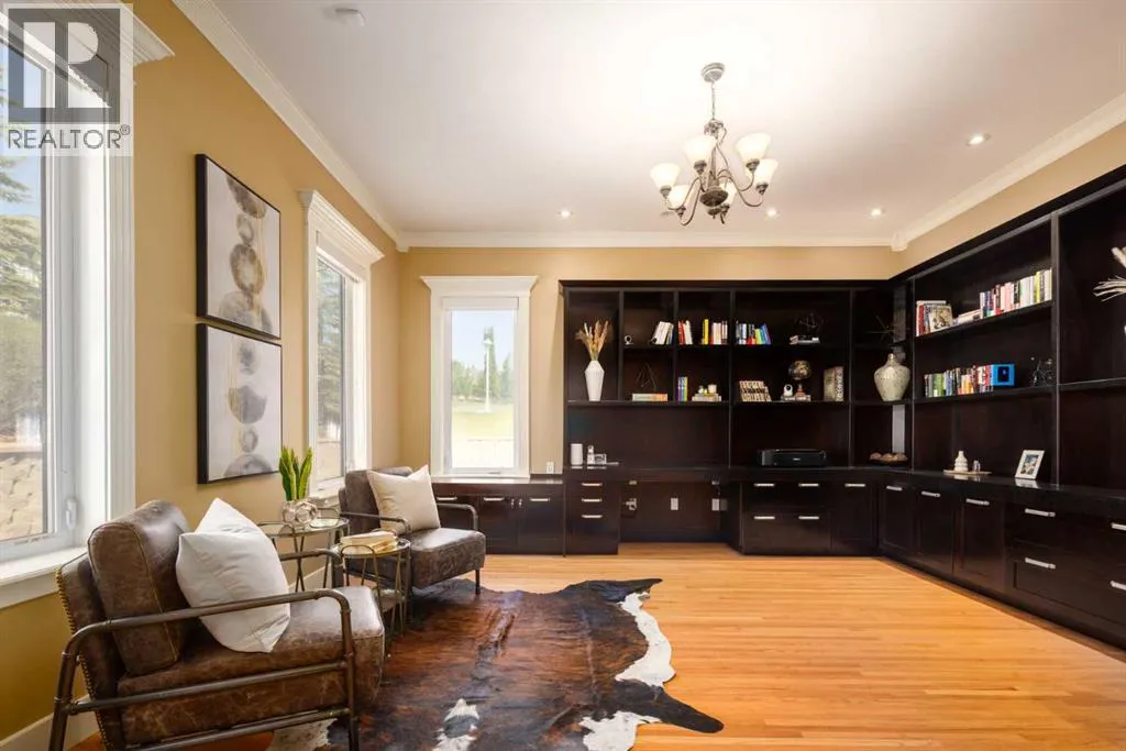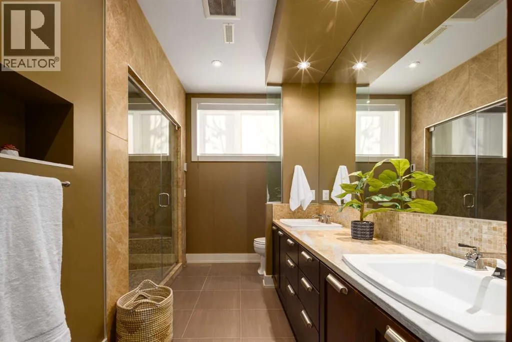 NEW PRICE! Located in the prestigious gated community of The Slopes, this exceptional estate home at 57 Slopes Point SW masterfully blends timeless craftsmanship, sustainable luxury, and an unbeatable location. Built with enduring quality, the home features in-floor radiant heating throughout multiple levels, the attached triple garage, and even the private heated drivewayâensuring ultimate comfort and energy efficiency through every season. A concrete tile roof adds to the homeâs structural integrity and low-maintenance appeal, underscoring the care and foresight behind every detail of this custom build. Set on a South-facing lot with views of The Rocky Mountains, this 5,500+ sq. ft. estate offers 4 spacious bedrooms above grade and 4.5 bathrooms, perfectly suited for families and entertainers alike. The heart of the home is the chef-inspired kitchen, which showcases custom walnut cabinetry, a Sub-Zero full fridge and full freezer, Miele six-burner gas range, Wolf range hood, and a Marvel beverage fridge, all thoughtfully selected for their performance and elegance. Granite countertops, a generous island, and panoramic views complete the space. Throughout the home, youâll find stunning crown molding, detailed millwork, soaring 10â ceilings, and expansive windows that flood the interior with natural light. A dramatic staircase, custom built-ins, and warm gas fireplace with a marble feature wall elevate the main floor living areas. The main level also includes formal living and dining spaces, a dedicated home office, convenient laundry room, and elegant powder room, plus access to a sunlit deck that spans the back of the home. Upstairs, the primary retreat offers luxury and serenity, featuring a private balcony with mountain views, a spa-inspired 6pc ensuite with soaker tub, dual vanities, and custom glass shower, along with a custom walk-in closet fitted with rich walnut cabinetry. Three additional bedrooms and beautifully appointed bathrooms provide ample space for a growing family. The fully finished walkout basement includes a 4pc bathroom with steam shower, a home theatre (convertible to a fifth bedroom), fitness room, and expansive recreation space with gas fireplace. A wet bar complete with dishwasher, beverage fridge, and wine fridge leads to a covered patio and beautifully landscaped backyardâperfect for summer entertaining. Positioned just moments from Aspen Landing Shopping Centre, Calgaryâs top-rated private schools (including Webber Academy, Rundle College, and Calgary Academy), and only 20 minutes to downtown, this location is as convenient as it is exclusive. Surrounded by professional landscaping, mature trees, and carefully curated outdoor living spacesâincluding multiple decks, BBQ areas, and a heated drivewayâthis home represents a rare opportunity to own in one of Calgaryâs most coveted communities. For those who value sustainable design, superior craftsmanship, and a prime location, 57 Slopes Point SW is the ultimate executive retreat. (id:27476)