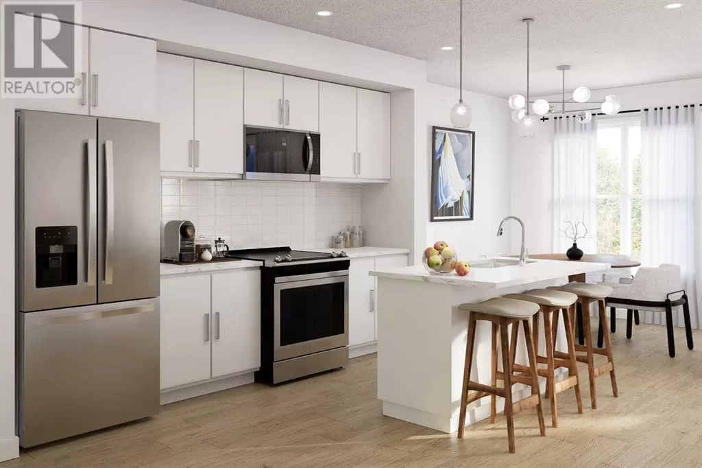 Welcome to 66 Creekside Way SWâwhere thoughtful design, flexible living space, and high-quality finishes come together in this fully developed 4-bedroom, 3.5-bathroom townhome. With over 1,600 sqft of living space including a professionally finished basement, this home offers room to grow, relax, and live with easeâall in one of Calgaryâs newest and most connected south communities.Step inside and immediately feel the warmth of a home thatâs been upgraded for everyday comfort and elevated living. The open-concept layout flows effortlessly across the main level, where 9â knockdown ceilings, contemporary lighting, and stylish finishes create a fresh, modern feel. Durable luxury vinyl plank flooring spans both the lower and main floors, offering practicality and style, while soft warm grey carpeting with plush 8lb underlay adds comfort in the upstairs hallway and bedrooms.The kitchen blends form and function with slab-style cabinetry extended to 42â uppers, soft-close drawers and doors, a designer tile backsplash, and gleaming quartz countertops. Stainless steel appliances complete the clean, modern look, while the thoughtful layout offers plenty of prep space and storage. A bright dining area and spacious living room invite gathering and connection, whether you're hosting or enjoying a quiet night in.Upstairs, you'll find three well-appointed bedrooms, including a serene primary suite with a private ensuite featuring quartz counters, tiled backsplash, chrome fixtures, and a high-efficiency toilet. A full second bathroom and convenient stacked laundry complete the upper level, adding practicality without sacrificing space.The fully finished basement extends the homeâs versatility, offering a fourth bedroom, a third full bathroom, and a spacious rec areaâideal for guests, a home office, or additional living space to suit your lifestyle.A single attached garage and an additional surface parking stall ensure that thereâs always room for both vehicles and storage. Enjoy warm summer evenings or quiet mornings on your private front patio, while the communityâs network of pathways, parks, and green space encourage an active, outdoor lifestyle.Sirocco offers unbeatable access to major routes like McLeod Trail, as well as nearby shopping in Shawnessy, Walden, and Legacy. Golfers will love being just minutes from Sirocco Golf Club, and equestrian fans are a short drive from Spruce Meadows. Whether you're commuting, shopping, or looking to unwind, this location keeps you close to it all.Stylish, functional, and move-in ready, this townhome offers the space and upgrades you want in a setting that feels like home. Welcome to 66 Creekside Way SWâwhere community, comfort, and convenience meet. (id:27476)