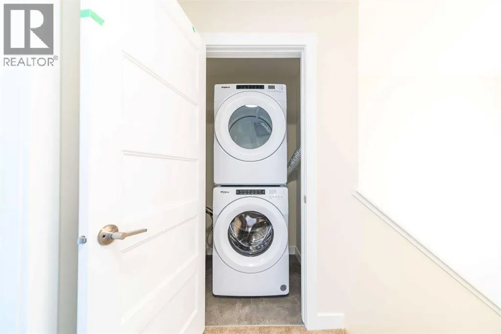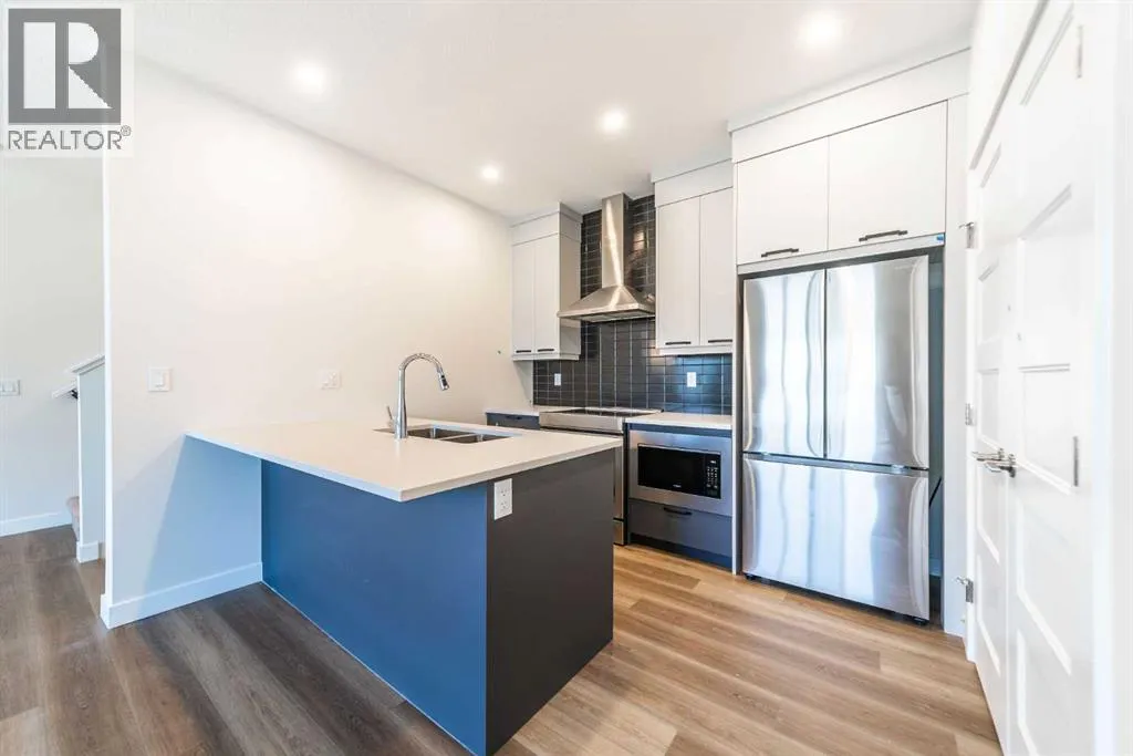 Move in before the end of the year! Current Promotion Offered: 2 years of FREE condo fees + complementary central air conditioning, allowing you to enjoy comfortable maintenance-free living from day one! Welcome to Crown Park, located just 5 minutes from downtown, Calgaryâs newest inner-city community, blends striking architectural design with modern elegance. Set on 13 acres of exquisite green spaces, the rolling landscape of the site has influenced the design of these park-side properties, offering panoramic views of the downtown skyline. The 'Manhattan' is a thoughtfully designed 3-storey city townhome offering an open-concept floor plan with all the luxuries you could desire in your next home. With over 1,300 square feet of developed space, this home features 2 bedrooms, 2.5 bathrooms, generous living areas, and an oversized private attached garage. The contemporary design centers the living room between the kitchen and dining area, creating the perfect space for entertaining guests. The home also boasts 9-foot ceilings on the main level, providing a bright and inviting atmosphere throughout the day. The gourmet kitchen is upgraded with full-height soft-close cabinetry to the ceiling, stone countertops, and a suite of stainless-steel appliances, including an electric cooktop, chimney hood fan, and a built-in microwave & oven. The homes are designed back-to-back to maximize space, creating an expansive main living area with a wall of windows and access to a private balcony with picturesque views of the surrounding landscape. The upper level features a primary bedroom with its own en suite, complete with a walk-in shower and walk-through wardrobe. A second generously sized bedroom, an additional full bathroom, and convenient upper-level laundry add to the home's appeal. The nearly 19'x7' balcony is the perfect outdoor living space complete with BBQ gas-line and A/C rough-in and the oversized attached garage is the perfect space to keep your vehicle and valuables s afe all year long. Crown Park is one of the city's most coveted developments due to its prominent location near the golf course, walkability to transit, and easy access to downtown's countless amenities. This property is perfect for those who enjoy proximity to walking trails along the Bow River, dog-friendly parks, and local hot spots for dining and entertainment. The home comes complete with an extended 3-year workmanship warranty, moving concierge, and complimentary legal fees, offering peace of mind and an easy transition into your new home. Please note: Photos are from a previous property and may not exactly represent the property for sale. (id:27476)