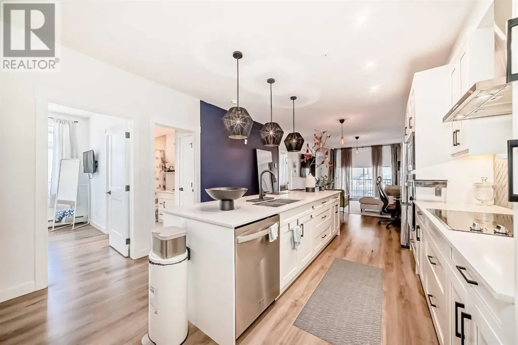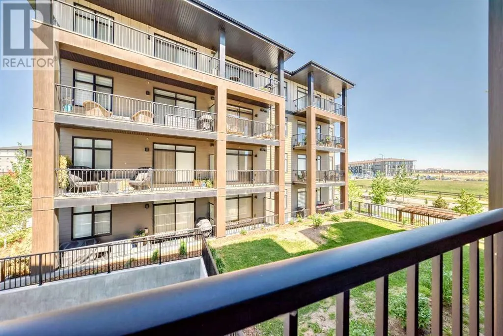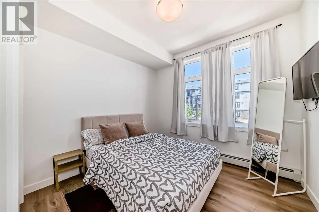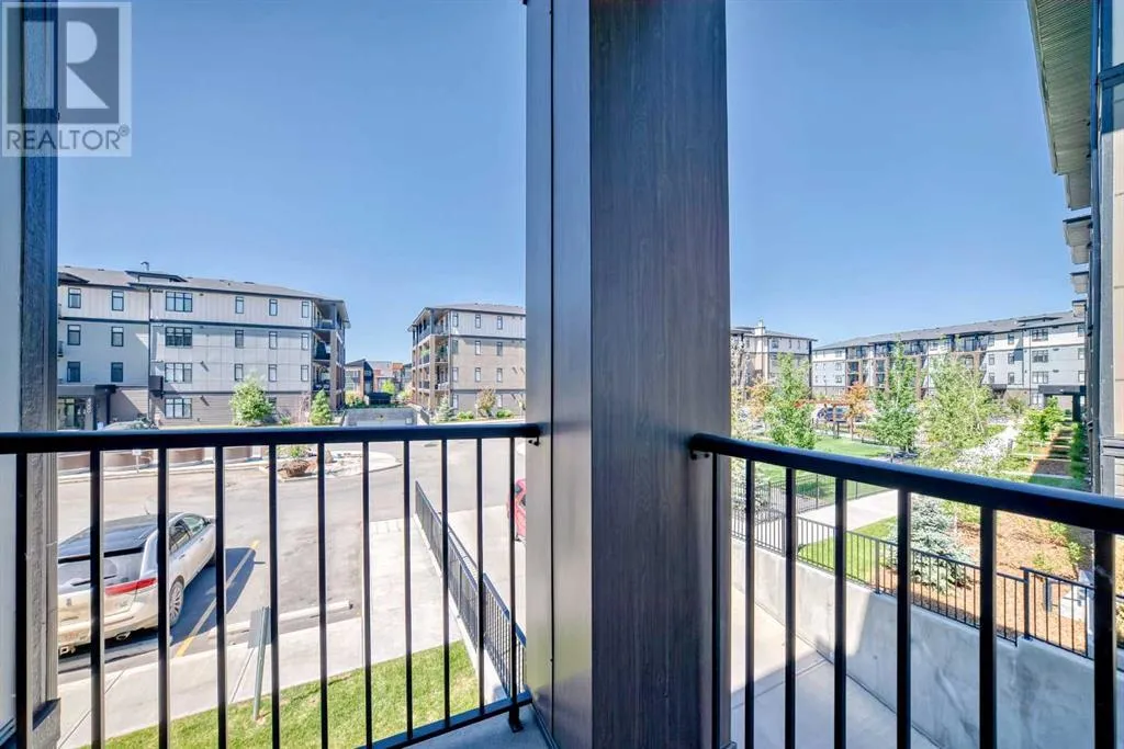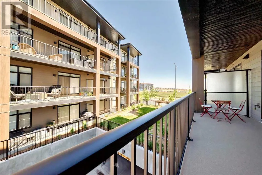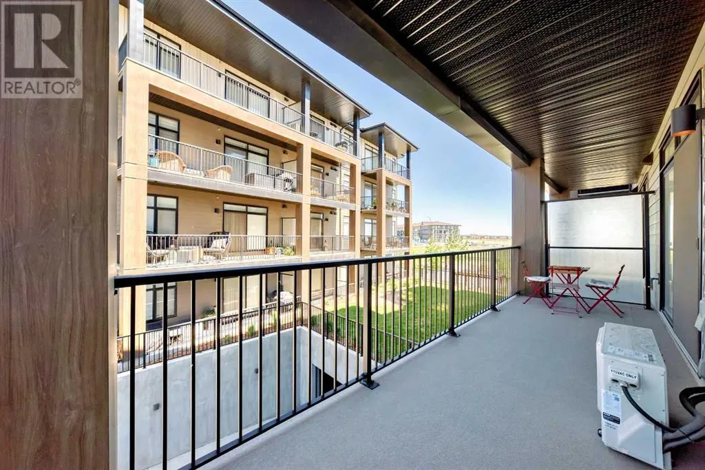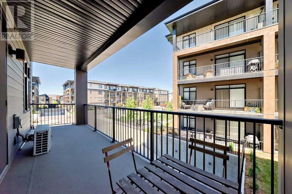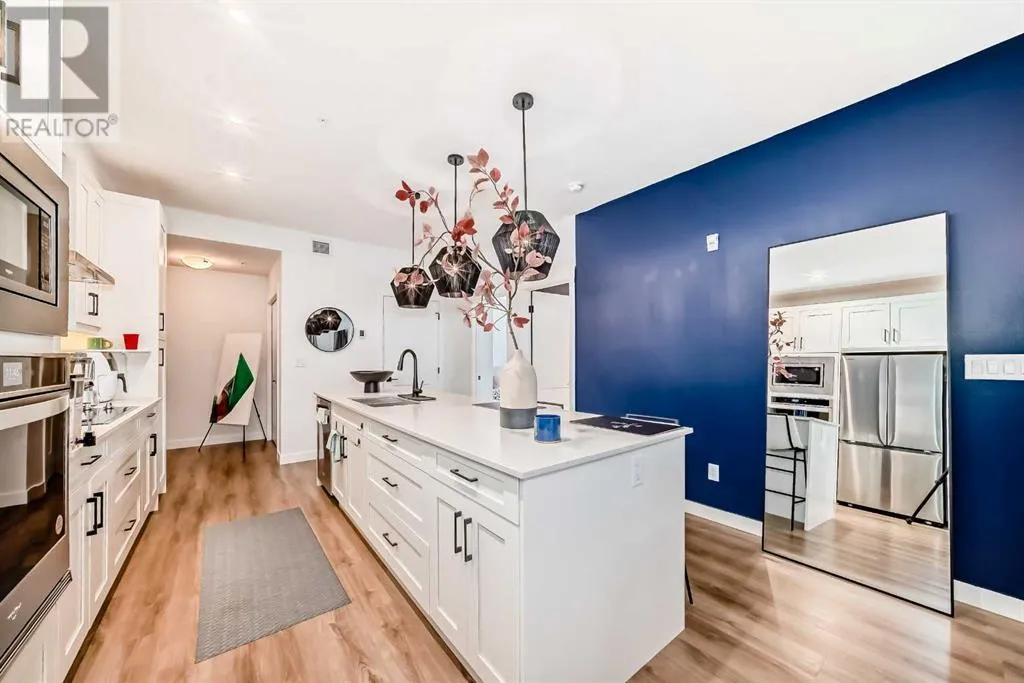 Welcome to this beautifully upgraded second-floor corner unit in the heart of Setonâoffering over 957 sq. ft. of thoughtfully designed living space with premium builder enhancements throughout. Perfect for first-time buyers, professionals, or those looking to downsize without compromising on quality, this home offers a perfect blend of comfort, style, and location.Situated in the vibrant Seton West community, you'll enjoy unrivaled access to shops, restaurants, the South Health Campus, the YMCA, and the future Green Line LRT. With quick access to Deerfoot and Stoney Trail, commuting across the city is effortless.Inside, a welcoming foyer leads you into an expansive open-concept living area. The designer kitchen is a true centrepieceâfeaturing a custom-extended island, full-height quartz backsplash, built-in wall oven, and a chimney-style hood fan. Pot drawers, upgraded fixtures, and a sleek matte black faucet complete this culinary showstopper.The kitchen flows seamlessly into the spacious dining and living areas, enhanced by large windows and luxury vinyl plank (LVP) flooring that extends throughout, including both bedrooms. Step outside to your 130 sq. ft. private patioâideal for morning coffee, summer BBQs (gas line included), or simply unwinding in comfort.The primary suite is a tranquil retreat with a large walk-in closet and a fully upgraded ensuite featuring dual under-mount sinks, a tiled walk-in shower, and quartz finishes. The second bedroom offers generous space and direct access to the main bathroomâperfect for guests or family.Additional features include central air conditioning, in-suite Samsung laundry, pot lighting, upgraded pendant fixtures, and a wall-mount TV package with hidden cable routing.This meticulously maintained home also comes with a titled underground parking stall (#605). Monthly condo fees include heat, water, building insurance, and moreâensuring both convenience and value.Enjoy a bright and balanced atmosphere with you r northeast-facing balcony, offering pleasant morning sunlight and cooler afternoonsâideal for outdoor living without the heat intensity of west-facing units.Move-in ready and better than new, this is your opportunity to enjoy a refined lifestyle in one of Calgary's most sought-after communities. Contact your favourite real estate agent today to schedule a private showing of this exceptional home! (id:27476)