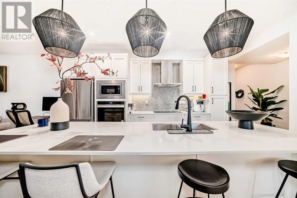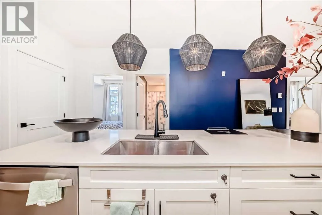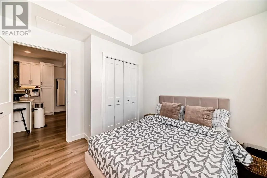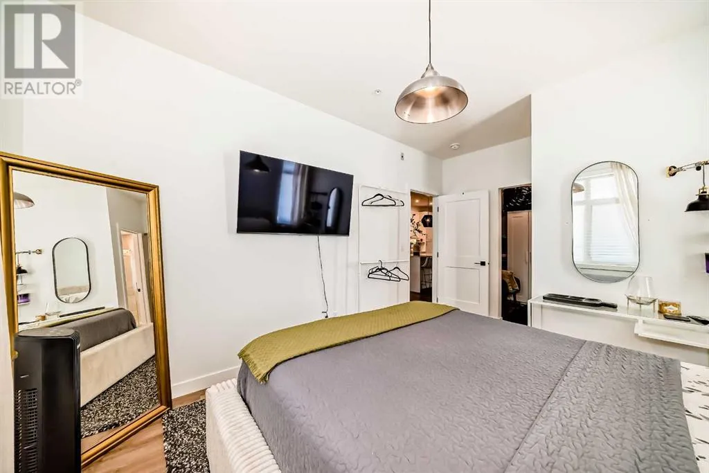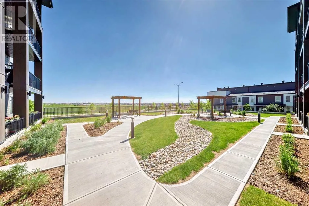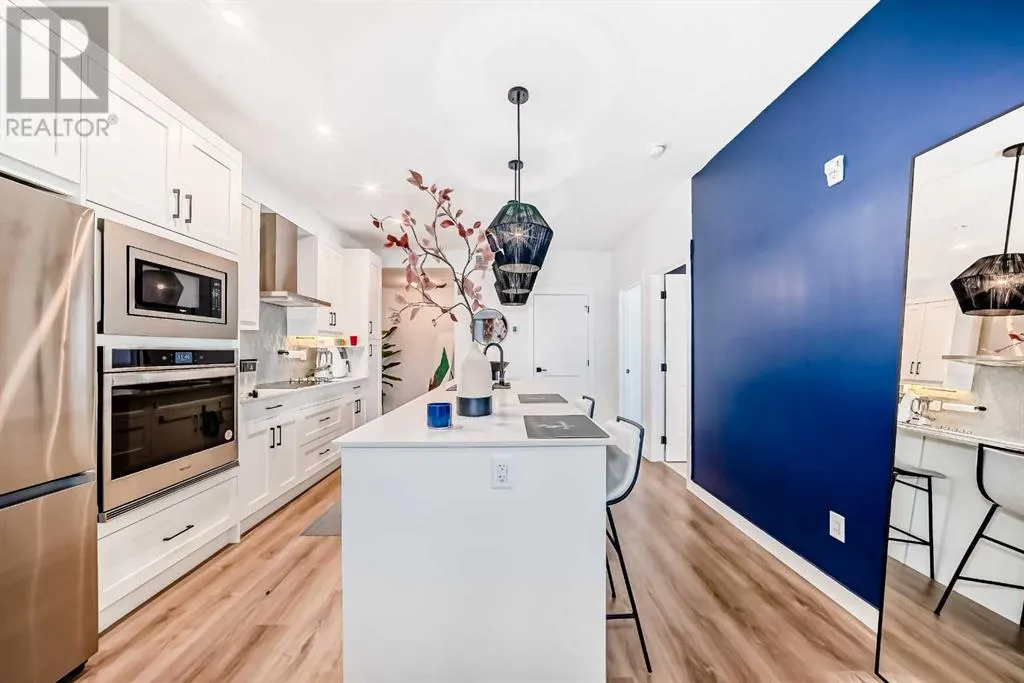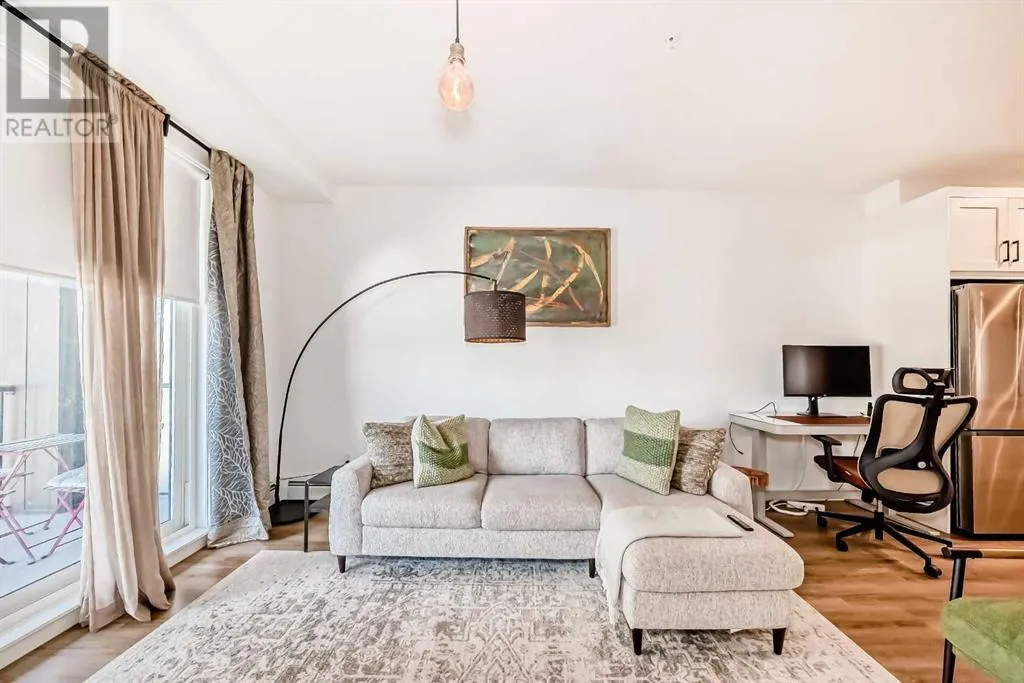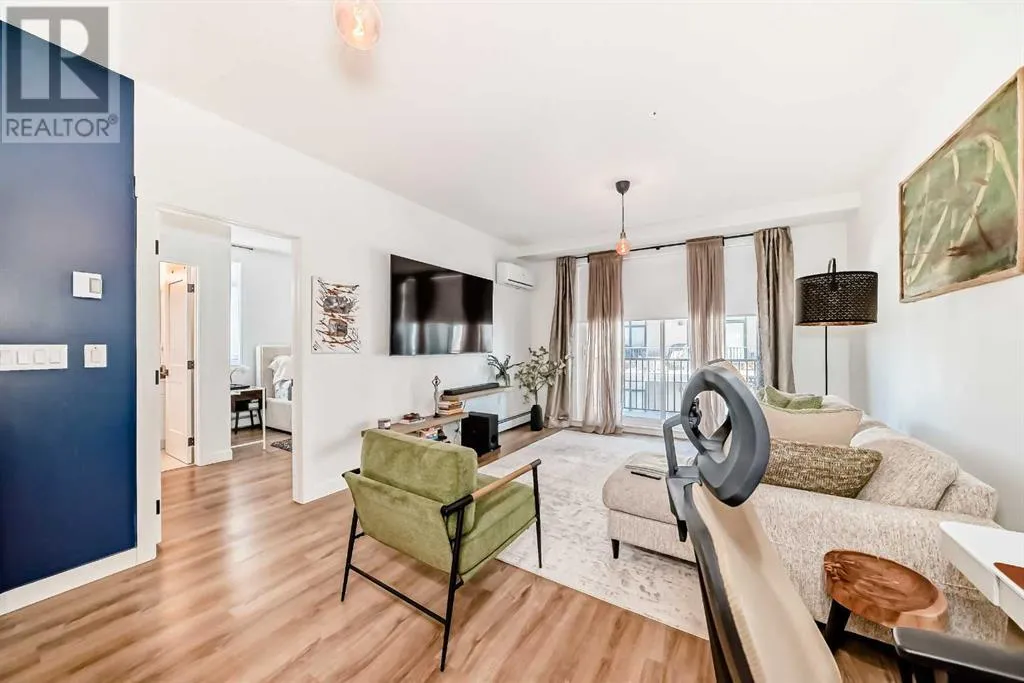 Welcome to this beautifully upgraded second-floor corner unit in the heart of Setonâoffering over 957 sq. ft. of thoughtfully designed living space with premium builder enhancements throughout. Perfect for first-time buyers, professionals, or those looking to downsize without compromising on quality, this home offers a perfect blend of comfort, style, and location.Situated in the vibrant Seton West community, you'll enjoy unrivaled access to shops, restaurants, the South Health Campus, the YMCA, and the future Green Line LRT. With quick access to Deerfoot and Stoney Trail, commuting across the city is effortless.Inside, a welcoming foyer leads you into an expansive open-concept living area. The designer kitchen is a true centrepieceâfeaturing a custom-extended island, full-height quartz backsplash, built-in wall oven, and a chimney-style hood fan. Pot drawers, upgraded fixtures, and a sleek matte black faucet complete this culinary showstopper.The kitchen flows seamlessly into the spacious dining and living areas, enhanced by large windows and luxury vinyl plank (LVP) flooring that extends throughout, including both bedrooms. Step outside to your 130 sq. ft. private patioâideal for morning coffee, summer BBQs (gas line included), or simply unwinding in comfort.The primary suite is a tranquil retreat with a large walk-in closet and a fully upgraded ensuite featuring dual under-mount sinks, a tiled walk-in shower, and quartz finishes. The second bedroom offers generous space and direct access to the main bathroomâperfect for guests or family.Additional features include central air conditioning, in-suite Samsung laundry, pot lighting, upgraded pendant fixtures, and a wall-mount TV package with hidden cable routing.This meticulously maintained home also comes with a titled underground parking stall (#605). Monthly condo fees include heat, water, building insurance, and moreâensuring both convenience and value.Enjoy a bright and balanced atmosphere with you r northeast-facing balcony, offering pleasant morning sunlight and cooler afternoonsâideal for outdoor living without the heat intensity of west-facing units.Move-in ready and better than new, this is your opportunity to enjoy a refined lifestyle in one of Calgary's most sought-after communities. Contact your favourite real estate agent today to schedule a private showing of this exceptional home! (id:27476)