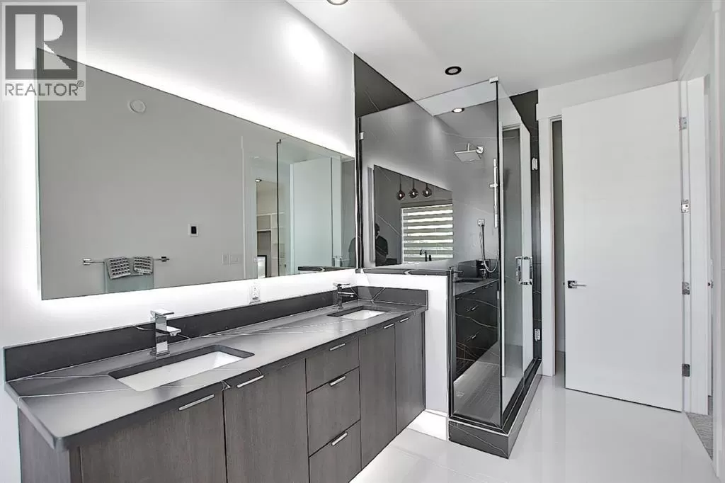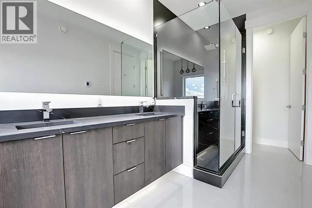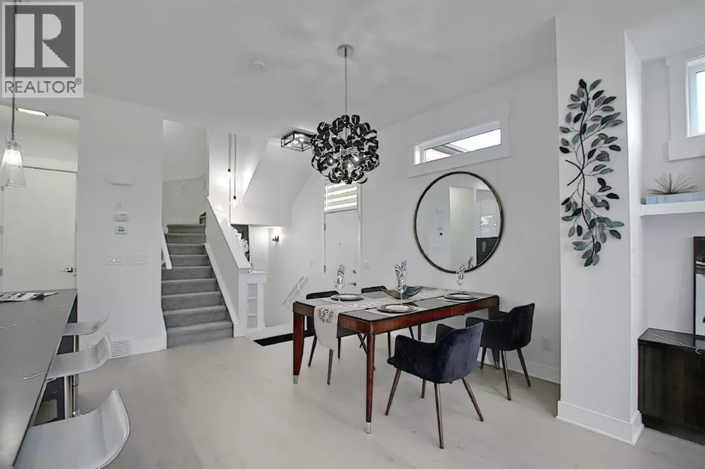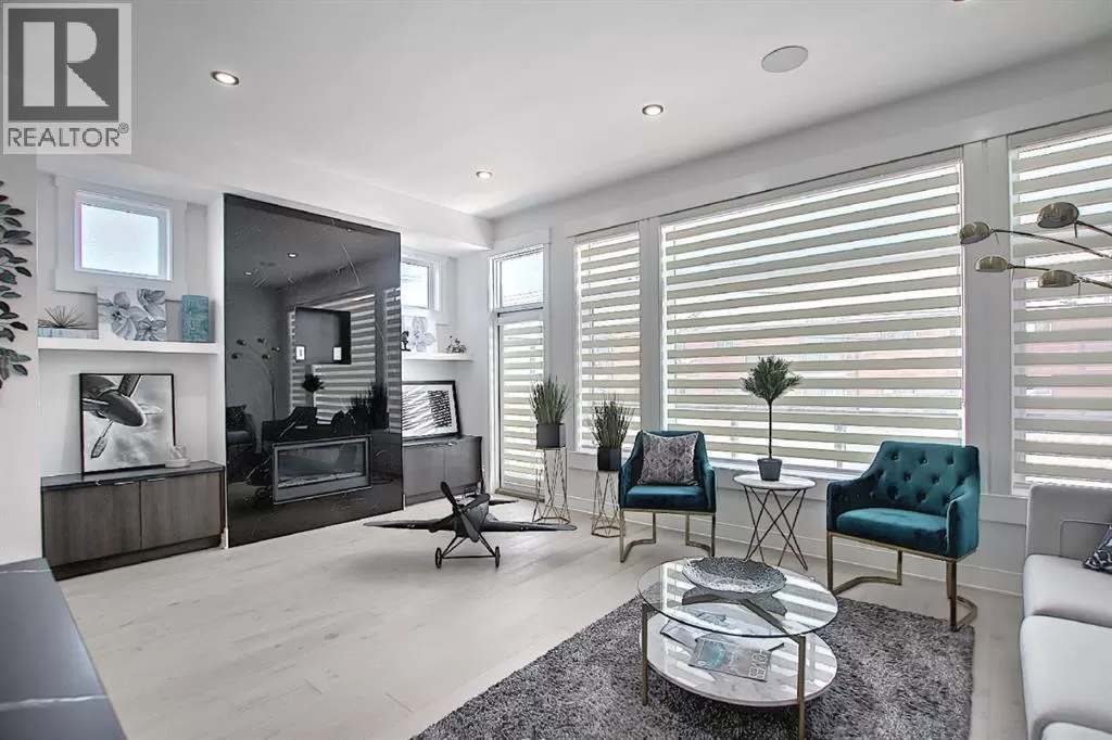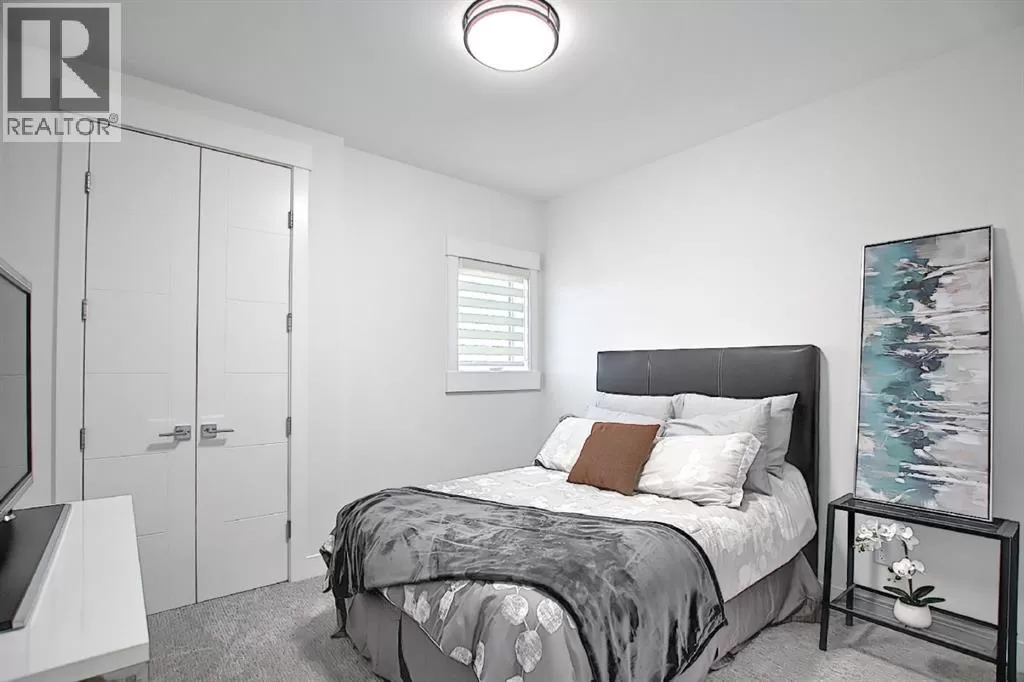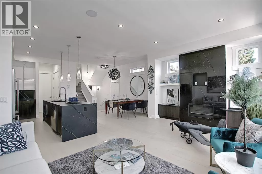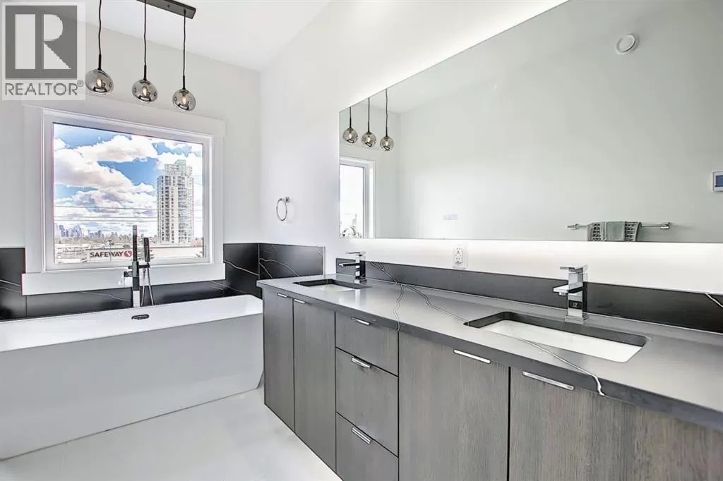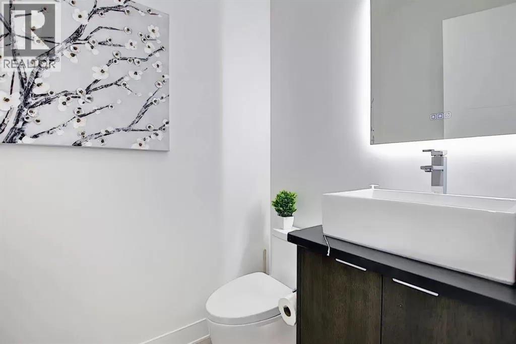 Gorgeous inner city fully finished 3-storey DREAM HOME with 2125 sqft of developed living space, VIEWS of DOWNTOWN Calgary & community, 3 large beds + 3.5 stunning baths + 3rd floor flex room. Unit is located on the back Northside of the building. M-C2 zoning perfect for a work from home or home-based business set up. Upscale urban living at an exceptional price point. Check out 3D TOUR. Impressive forward-thinking features, modern and contemporary design & stylish floorplans. 3 large decks offer either DOWNTOWN Calgary or community VIEWS. Natural light flows through this exceptionally spacious floor plan with large windows + 10-foot ceilings on main floor + 9-foot ceilings. Beautifully designed & equipped kitchen, includes a European Blomberg appliance package, PREMIUM quartz counter-tops & backsplash, giant island w/stunning double waterfall quartz feature for guests to gather is perfectly located adjacent to the large living & dining rooms. The focal point of the living room is a simply stunning gas fireplace with a one piece marble tile surround. A wall of windows leads to a giant deck complete w/gas BBQ hookup. DOUBLE master bedrooms. The 1st master bedroom on the 2nd floor features a large walk-in closet, luxurious spa inspired ensuite, a jetted tub, shower, floating double sink vanity & quartz countertops. Bedroom #2 is a generous size, a full luxury bathroom + a handy 2nd floor laundry room equipped with a front-load washer & dryer, quartz countertops, cabinets & a sink. The 3rd floor offers a 2nd master bedroom featuring DOWNTOWN VIEWS from the deck, walk-in closet, a luxurious spa inspired ensuite, freestanding soaker tub, unforgettable custom shower, a floating vanity with double sinks & quartz countertops + a flex room, equipped with a wet bar and private deck with beautiful community views. Luxurious features throughout include a blind package, engineered oak hardwood, solid 8 ft doors throughout, smooth painted level 5 ceilings, designer LED lighting p ackage. full height built-in custom cabinetry, built-in Bluetooth speaker system. Bathrooms w/heated tiled floors + sound-enabled backlit LED mirrors + under vanity lighting. Energy-efficient and well-insulated, a high-efficiency furnace, tankless hot water on demand system, humidifier and central A/C. Roughed in for a central vacuum system & water softener. Lower level offers a mudroom, access to a single attached garage + storage/ mechanical room. Additional driveway parking. Roughed in electric vehicle charging station in the garage. No permits required for additional street parking. Exceptional curb appeal with high-end modern exterior finishes & architectural design. Centrally located inner-city community on the Westside. Minutes drive to Downtown, steps to Westbrook mall, Library/LRT Station, golf, schools, shops, dining, aquatic centre, bike & transit routes. Balance of 10 year Progressive New Home Warranty. Professionally managed. LOW condo fee. Owner pay their own utilities. NO grass to cut (id:27476)