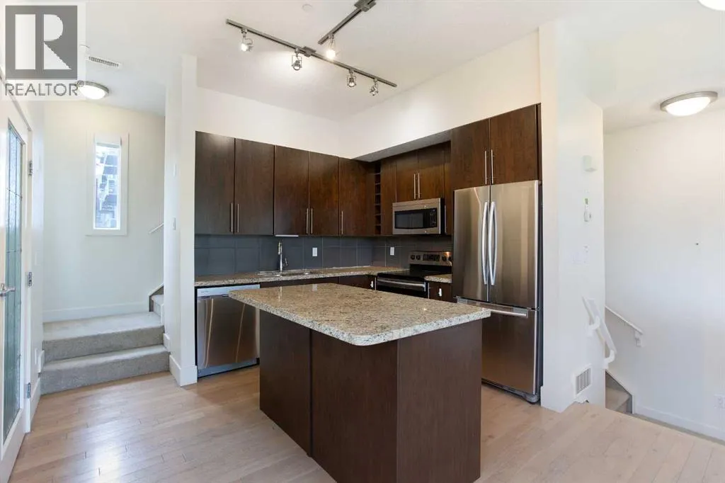 A multi-level townhouse located in Bankview with a secured, underground parking stall and overlooking a park . Offering 2 bedrooms and 2.5 bathrooms, this spacious unit features hardwood flooring throughout the main living area and a functional layout ideal for investors or buyers looking to add value. Each bedroom includes its own private ensuite, with the top-floor bedroom also featuring a private balcony. The walkout basement living room has a gas fireplace and doors that lead to a fenced courtyard, offering additional outdoor space and privacy. There is direct access to the home from the underground parking. Donât miss this opportunity to get into a desirable location with strong upside potential. This property is being sold as is, where is under a court order. (id:27476)