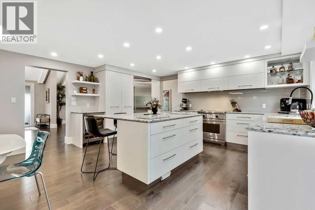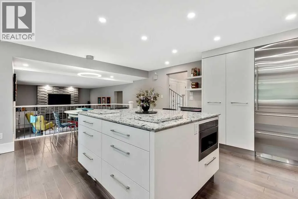 This is what you have been waiting for! A fully renovated lake access home in mature Lake Bonavista. This beautiful two storey split features a traditional floor plan with vaulted open beam ceilings in the living/dining room. The main floor has recessed lighting and gorgeous hand scraped hardwood floors. You will fall in love with the timeless kitchen that boasts granite counters, a Sub Zero built in fridge, and a Wolf induction top stove. The family room is a great place to hang out with family at the end of the day. There is a main floor laundry with tonnes of cabinet and counter space. Upstairs, you will find a spacious open den that can work as an office, TV area, or kid hangout space. The master bedroom is has a four piece en suite with a walk in shower, large walk in closet with lots of built ins, and a balcony. The perfect place to enjoy a morning coffee. Proceed to the finished lower level that has a generously sized rec room, fourth bedroom, 3 piece bath, and an excellent gym space. Stroll down to your semi private dock to swim and paddle board on Lake Bonaventure on a sunny summer's day. When you are finished, relax in the hot tub in the private and well treed back yard. Kept in absolutely immaculate condition, this home is a rare opportunity! (id:27476)