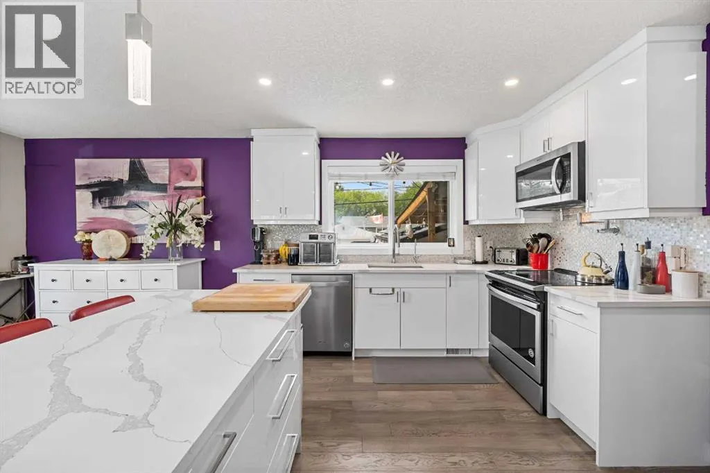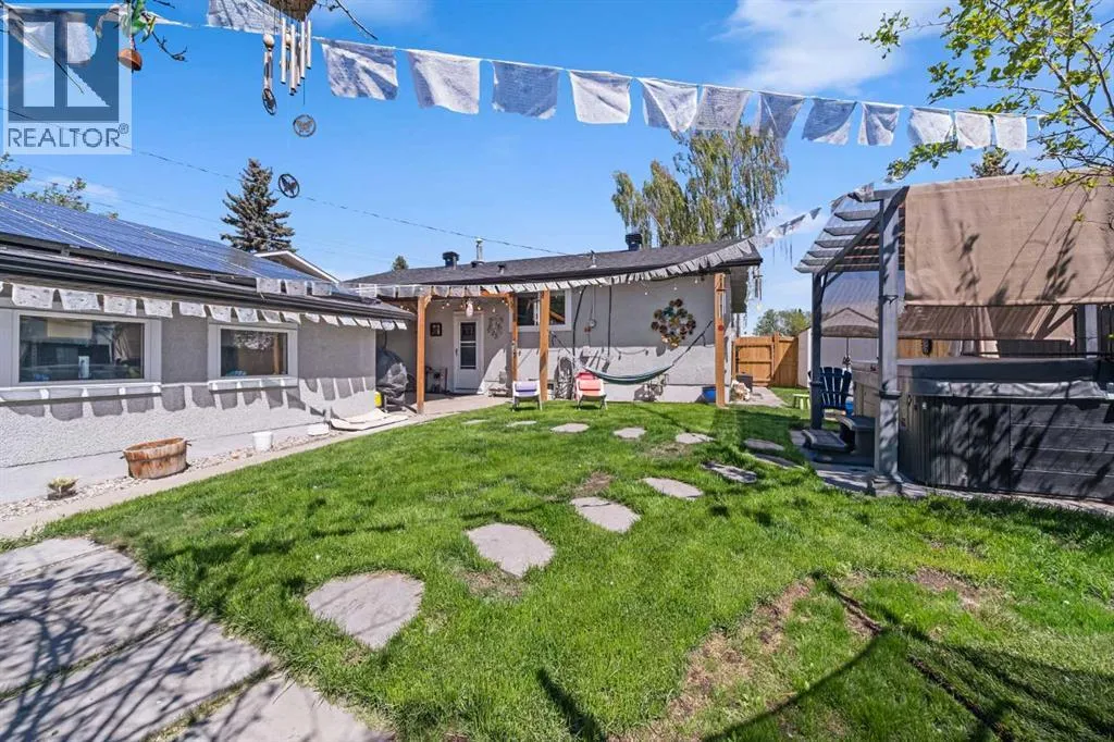 Welcome to this gorgeous, fully renovated family home with a beautiful west-facing backyard and an oversized heated garage, nestled on a quiet close in the heart of mature, R-C2 zoned Acadia! This stunning bungalow boasts nearly 2200 SF of developed space, meticulously renovated from top to bottom, featuring a brand-new kitchen, flooring, windows, doors, roof, and a 4.88 kW fully functional solar system. The chef in the family will adore the gourmet kitchen, complete with a large window overlooking the backyard, a massive center island, quartz countertops, ample full-height cabinets, and upgraded appliances. The spacious primary suite offers a beautiful walk-in closet and a luxurious ensuite with a walk-in glass shower. The second bedroom conveniently accesses another beautifully designed full bathroom. The developed lower level is perfect for entertaining and relaxation, featuring a huge family room, a den, an extra bedroom, a large 4-piece bathroom, new epoxy floors, and abundant storage options. Step outside to the west-facing backyard, a true family playground with a private shaded area for relaxation, a firepit spot, space for a trampoline, and a hot tub area, perfect for unwinding at the end of the day. Plus, the oversized detached heated garage ensures your vehicles and belongings stay safe and warm during the colder months. This prime location is close to schools, parks, playgrounds, walking and bike paths, and all amenities. This is a complete family home, ready to create new memories. Donât miss outâbook your viewing today! (id:27476)