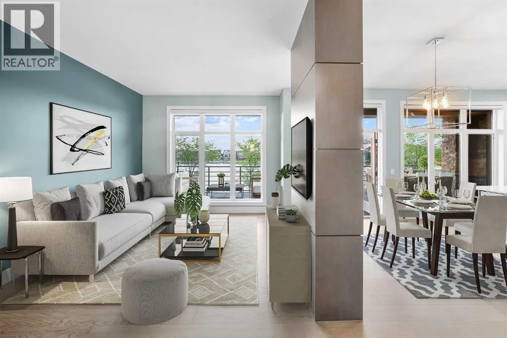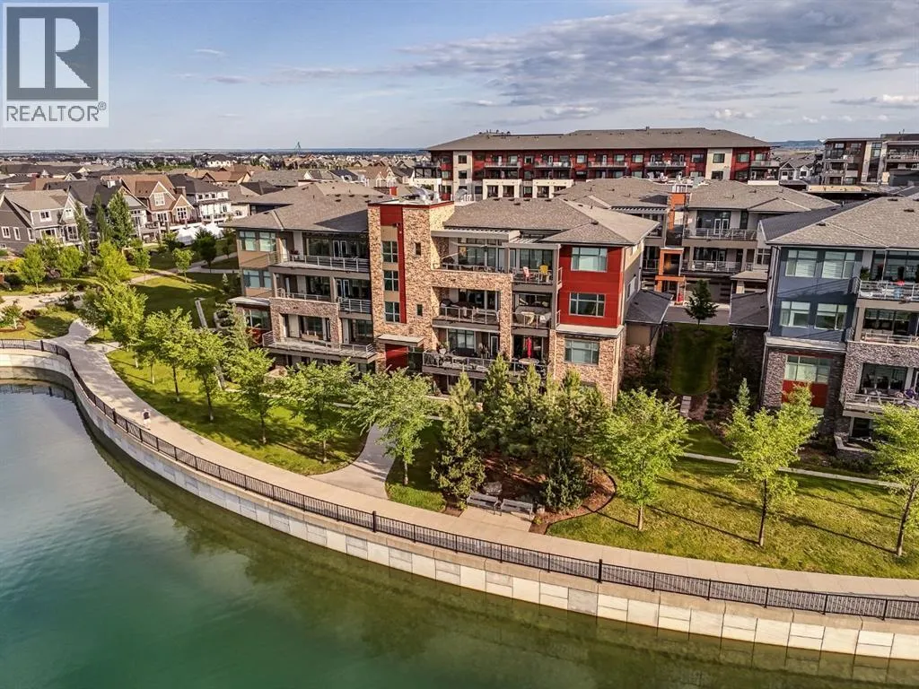Welcome to a rare offering in Reflection at Westman Village, where elevated design meets effortless lakefront living. Perfectly positioned on the shores of Mahogany Lake, this impeccably designed walkout residence features over 2,380 sq ft of refined interior space and an expansive 725 sq ft of covered outdoor balconyâall with uninterrupted views of the water from both levels.Thoughtfully laid out for everyday comfort and exceptional entertaining, this 3-bedroom, 4-bathroom home blends modern elegance with timeless detail. The gourmet kitchen is a showstopperâfeaturing a bold cabinetry palette, gas cooktop, built-in wall ovens, premium appliances, and sleek designer finishes. The open-concept main floor is anchored by walls of windows that flood the home with natural light and draw your attention to the shimmering lake just beyond.Retreat to the luxurious primary suite, where youâll find private balcony access and a spa-inspired 5-piece ensuite complete with a deep soaker tub, dual vanities, walk-in shower, and thoughtful details that encourage rest and relaxation.The walkout lower level opens directly to Mahogany Lake, inviting you to step outside and enjoy the walking paths, parks, and serene waterfront that make this community so special. Whether you're entertaining on the terrace or enjoying a quiet morning coffee by the water, this is truly a home designed for connectionâto nature, to neighbours, and to lifestyle.Living in Westman Village means access to a vibrant, maintenance-free lifestyle unlike anything else in Calgary. From the 40,000 sq ft amenity centre featuring a fitness studio, indoor pool with waterslide, golf simulator, wine room, art space, movie theatre, and moreâto the rich dining and retail experiences including Chairmanâs Steakhouse, Alvinâs Jazz Lounge, Analog Coffee, and a host of services just steps from your door.Enjoy the peace of mind that comes with 24/7 concierge and security, heated underground parking (for residents and gues ts), and a fully connected +15 skywalk and underground tunnel system. Every detail has been considered to create a truly effortless way of life.Whether youâre downsizing, investing in your forever home, or simply seeking a higher standard of everyday living, this rare lakefront residence offers it allâwith unparalleled views, sophisticated finishes, and a community designed to live well.A statement in luxury, lifestyle, and locationâthis is lakeside living at its finest. Welcome to Westman Village. (id:27476)