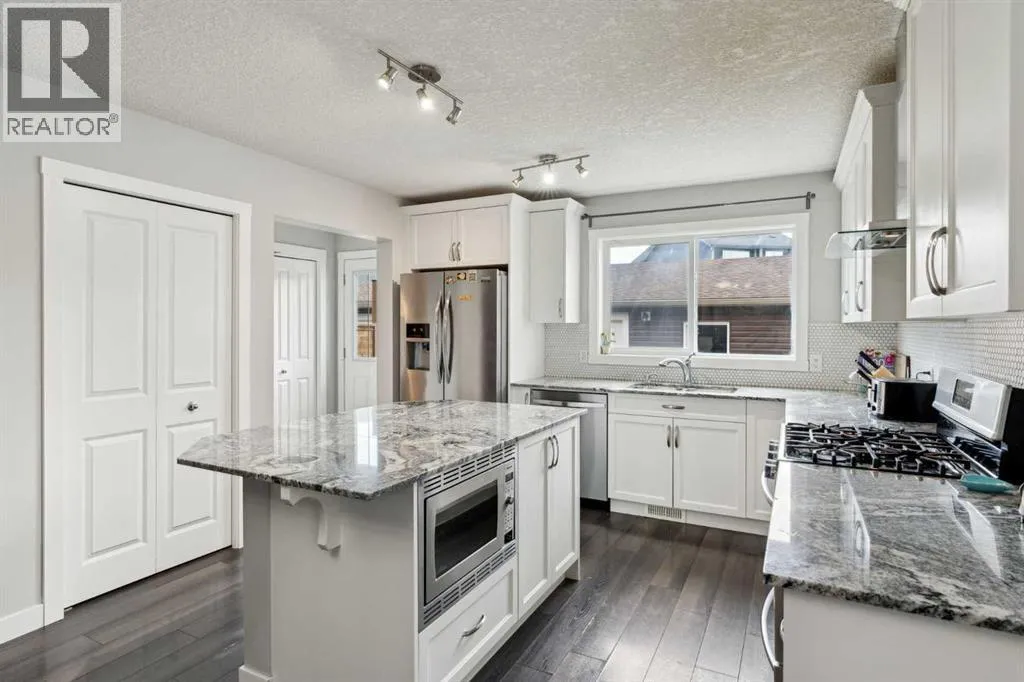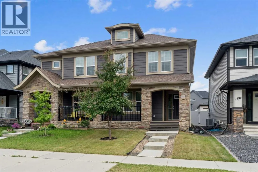 Welcome to 1488 Legacy Circle SE, a beautifully maintained 3-bedroom, 3-bathroom home tucked into the heart of the sought-after Legacy community. From the charming stone-accented front porch to the sun-drenched south-facing backyard, this property blends classic style with everyday comfort.Step inside and enjoy the open main floor layout, complete with durable luxury vinyl plank flooring throughout. The inviting living room features a cozy gas fireplace that adds just the right touch of ambiance, while the adjacent dining space is perfect for family meals or entertaining guests.The kitchen is a true standout, flooded with natural light from a large south-facing window, itâs an ideal spot for indoor plants and morning coffee. With sleek granite countertops, stainless steel appliances, a hexagon tile backsplash, and a central island with breakfast bar seating, itâs both stylish and functional. A convenient 2-piece powder room rounds out the main floor.Upstairs, youâll find all three bedrooms, including a spacious primary suite complete with a walk-in closet and private 4-piece ensuite featuring a relaxing soaker tub and shower combo. Two additional bedrooms offer great flexibility â perfect for kids, guests, or a dedicated home office. A second full bath and laundry room provide added practicality and comfort.The unfinished basement is a blank canvas ready for your personal touch â whether you envision a home gym, rec room, or additional living space.Outside, enjoy sunshine year-round in the private south-facing backyard with a raised deck and planter boxes â an ideal setup for urban gardening. A double detached garage keeps your vehicles out of the elements, and the cozy front porch adds even more charm.Located in the vibrant, close-knit community of Legacy, youâre just minutes from scenic walking paths, Fish Creek Park, Woof Willow Off-Leash Dog Park, and Heritage Pointe Golf Club. With convenient access to schools, shopping, and public transit, this is a home that checks all the boxes.Donât miss your chance to see this wonderful home â book your private showing today! (id:27476)
