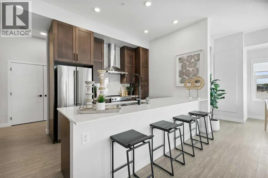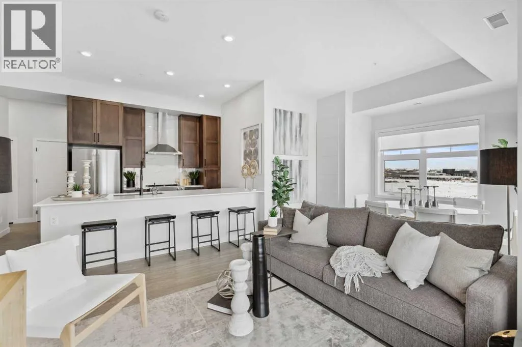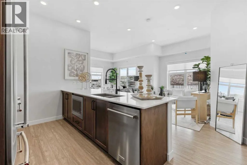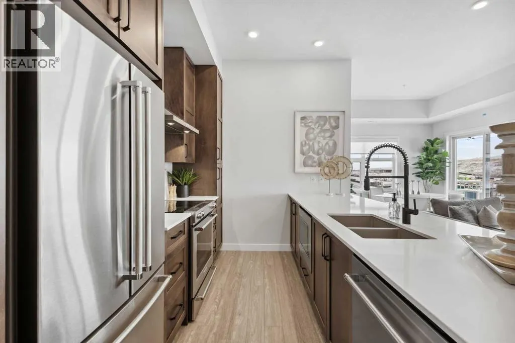 **BRAND NEW HOME ALERT** Great news for eligible First-Time Home Buyers â NO GST payable on this home! The Government of Canada is offering GST relief to help you get into your first home. Save $$$$$ in tax savings on your new home purchase. Eligibility restrictions apply. For more details, visit a Jayman show home or discuss with your friendly REALTOR®. LOVE YOUR LIFESTYLE! Les Jardins by Jayman BUILT next to Quarry Park. Inspired by the grand gardens of France, you will appreciate the lush central garden of Les Jardins. Escape here to connect with Nature while you savor the colorful blooms and vegetation in this gorgeous space. Ideally situated within steps of Quarry Park, you will be more than impressed. Welcome home to 70,000 square feet of community gardens, a proposed Fitness Centre, a Dedicated dog park for your fur baby, and an outstanding OPEN FLOOR PLAN with unbelievable CORE PERFORMANCE. You are invited into a thoughtfully planned 2 Bedroom, 2 Full Bath TOP FLOOR CORNER UNIT plus expansive balcony beautiful CORNER Condo boasting QUARTZ COUNTERS through out, sleek STAINLESS STEEL KITCHENAID APPLIANCES featuring a refrigerator with French doors with built-in water and ice, dishwasher with stainless steel interior, slide in stainless steel electric convection range with ceramic cooktop, built-in microwave and designer hood fan. Luxury Vinyl Plank Flooring, High End Fixtures, Smart Home Technology, A/C and your very own in suite WASHER AND DRYER. This beautiful suite offers a spacious dining/living area with sliding doors and large bright windows, a spacious entry corridor with two storage closets, an expansive balcony, a galley kitchen design with an extended eating bar, and side-by-side laundry. STANDARD INCLUSIONS: Solar panels to power common spaces, smart home technology, air conditioning, state-of-the-art fitness center, high-end interior finishings, ample visitor parking, luxurious hallway design, forced air heating and cooling, and window coverings i n bedrooms. Offering a lifestyle of easy maintenance where the exterior beauty matches the interior beauty with seamless transition. Les Jardins features central gardens, a walkable lifestyle, maintenance-free living, nature nearby, quick and convenient access, smart and sustainable, fitness at your fingertips, and quick access to Deerfoot Trail and Glenmore Trail. It is located 20 minutes from downtown, minutes from the Bow River and pathway system, and within walking distance to shopping, dining, and amenities. Schedule your appointment today! (id:27476)