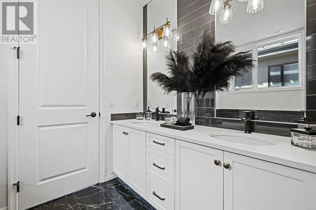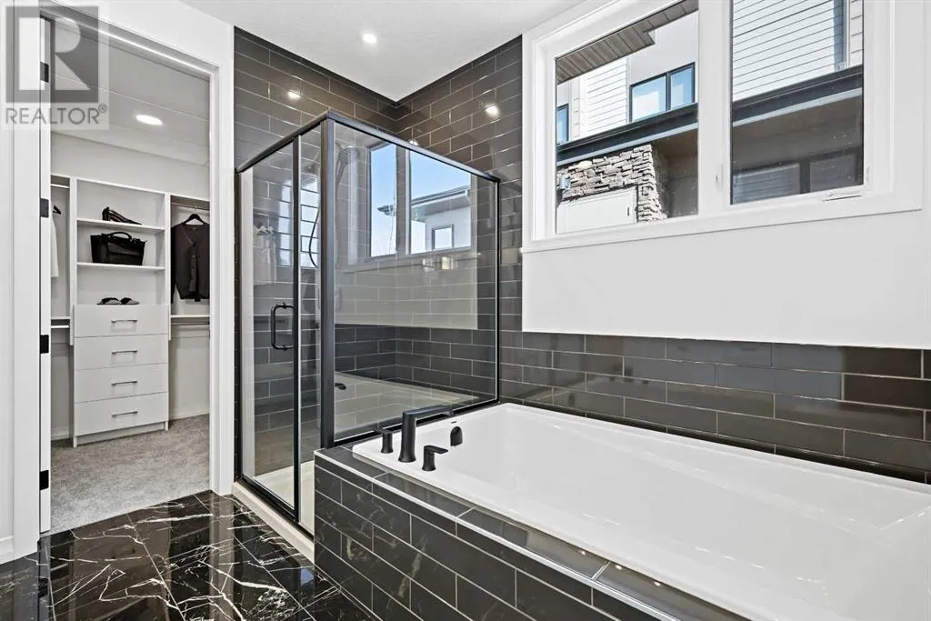 **BRAND NEW HOME ALERT** Great news for eligible First-Time Home Buyers â NO GST payable on this home! The Government of Canada is offering GST relief to help you get into your first home. Save $$$$$ in tax savings on your new home purchase. Eligibility restrictions apply. For more details, visit a Jayman show home or discuss with your friendly REALTOR®. The Streams of Lake Mahogany present an elevated single-level lifestyle in our stunning Reflection Estate homes situated on Lake Side on Mahogany Lake. Selected carefully from the best-selling renowned Westman Village Community, you will discover THE BROOK, a home created for the most discerning buyer, offering a curated space to enjoy and appreciate the hand-selected luxury of a resort-style feeling while providing you a maintenance-free opportunity to lock and leave. Step into an expansive 1700+ builders sq ft stunning home with 10-foot ceiling heights with greenspace views featuring a thoughtfully designed open floor plan, inviting an abundance of natural daylight with soaring 10-foot ceilings and oversized windows. The centralized living area, ideal for entertaining, offers a Built-in KitchenAid sleek stainless steel package with French Door Refrigerator and internal ice make and water dispenser, a 36-inch 5 burner gas cooktop, a dishwasher with a stainless steel interior, and a 30-inch wall oven with convection microwave; all nicely complimented by the Charcoal Elevated Color Palette. The elevated package includes rich tone cabinets in the kitchen with oversized hardware; glossy subway tile at the kitchen backsplash; soft close cabinetry with 36" uppers, angled front hood fan shroud, sil granite undermount sink, upgraded pantry, under cabinet lighting and a stylish modern light package in a beautiful finish to match. All are highlighted with bright white Quartz countertops. You will enjoy two bedrooms on either side, nicely framing in the central living area, with the Primary Suite featuring a spacious 5-piece oasis-like ensuite with dual vanities, a large soaker tub, a stand-alone shower, and a generous walk-in closet with built-ins. The Primary Suite and main living area step out to a 54ft terrace with beautiful views. Yours to soak in every single day. To complete the package, you have a sizeable foyer, and the spacious laundry room is adjacent to the entry of your private double-attached heated garage with a full-width driveway. Jayman's standard inclusions feature their trademark Core Performance, which includes Solar Panels, Built Green Canada Standard with an Energuide rating, UVC Ultraviolet light air purification system, high-efficiency heat pump for air conditioning, forced air fan coil hydronic heating system, active heat recovery ventilator, Navien-brand tankless hot water heater, triple pane windows and smart home technology solutions. Enjoy Calgaryâs largest lake, with 21 more acres of beach area than any other community. (id:27476)