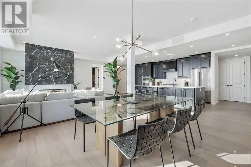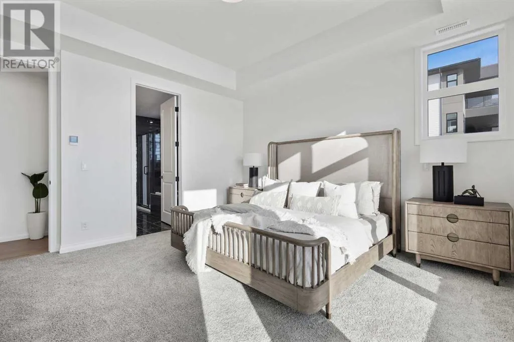 The Streams of Lake Mahogany present an elevated single-level lifestyle in our stunning Reflection Estate homes situated on Lake Side on Mahogany Lake. Selected carefully from the best-selling renowned Westman Village Community, you will discover THE BROOK, a home created for the most discerning buyer, offering a curated space to enjoy and appreciate the hand-selected luxury of a resort-style feeling while providing you a maintenance-free opportunity to lock and leave. Step into an expansive 1700+ builders sq ft stunning home with 10' ceiling heights overlooking Mahogany Lake featuring a thoughtfully designed open floor plan inviting an abundance of natural daylight with soaring 10-foot ceilings and oversized windows. The centralized living area, ideal for entertaining, offers a Built-in KitchenAid sleek stainless steel package with French Door Refrigerator and internal ice make and water dispenser, a 36-inch 5 burner gas cooktop, a dishwasher with a stainless steel interior, and a 30-inch wall oven with convection microwave; all nicely complimented by the Charcoal Elevated Color Palette. The elevated package includes rich tone cabinets in the kitchen with oversized hardware; glossy subway tile at the kitchen backsplash; soft close cabinetry with 36" uppers, angled front hood fan shroud, sil granite undermount sink, upgraded pantry, under cabinet lighting and a stylish modern light package in a beautiful finish to match. All are highlighted with bright white Quartz countertops. You will enjoy two bedrooms on either side, nicely framing in the central living area, with the Primary Suite featuring a spacious 5-piece oasis-like ensuite with dual vanities, a large soaker tub, a stand-alone shower, and a generous walk-in closet with built-ins. The Primary Suite and main living area step out to a 54ft terrace with a gorgeous view of the Lake. Yours to soak in every single day. To complete the package, you have a sizeable foyer, and the spacious laundry room is adjacent t o the entry of your private double-attached heated garage with a full-width driveway. Jayman's standard inclusions feature their trademark Core Performance, which includes Solar Panels, Built Green Canada Standard with an Energuide rating, UVC Ultraviolet light air purification system, high-efficiency heat pump for air conditioning, forced air fan coil hydronic heating system, active heat recovery ventilator, Navien-brand tankless hot water heater, triple pane windows and smart home technology solutions. Enjoy Calgaryâs largest lake, with 21 more acres of beach area than any other community. Enjoy swimming, canoeing, kayaking, pedal boating in the summer, skating, ice fishing, and hockey in the winter with 2 private beach clubs and a combined 84 acres of lake & beachfront to experience. Retail shops & professional services at Westman Village & Mahoganyâs Urban Village are just around the corner, waiting to be discovered. (id:27476)