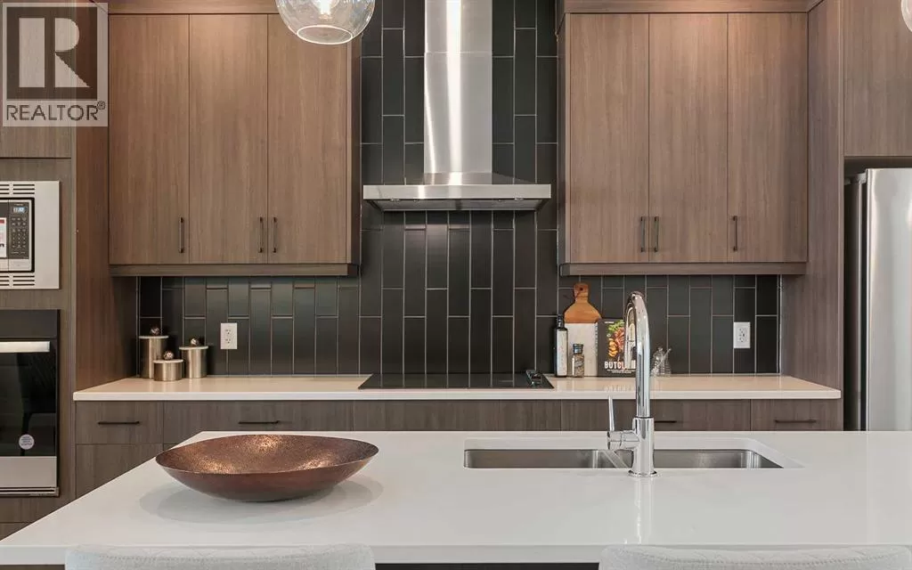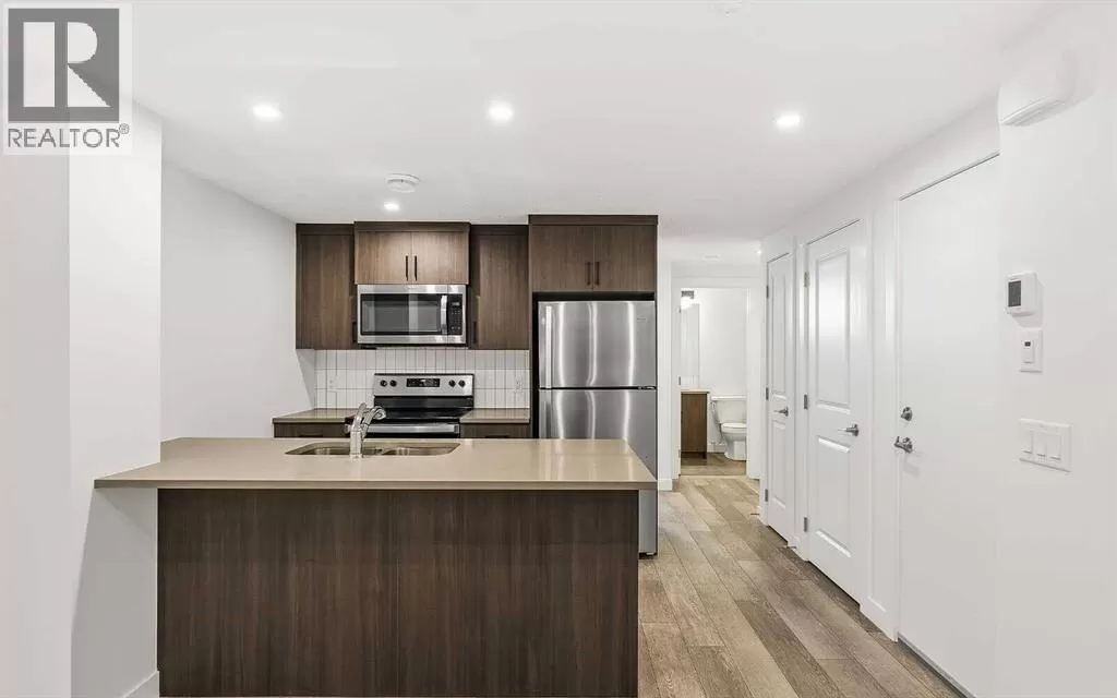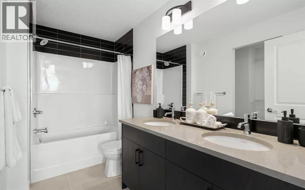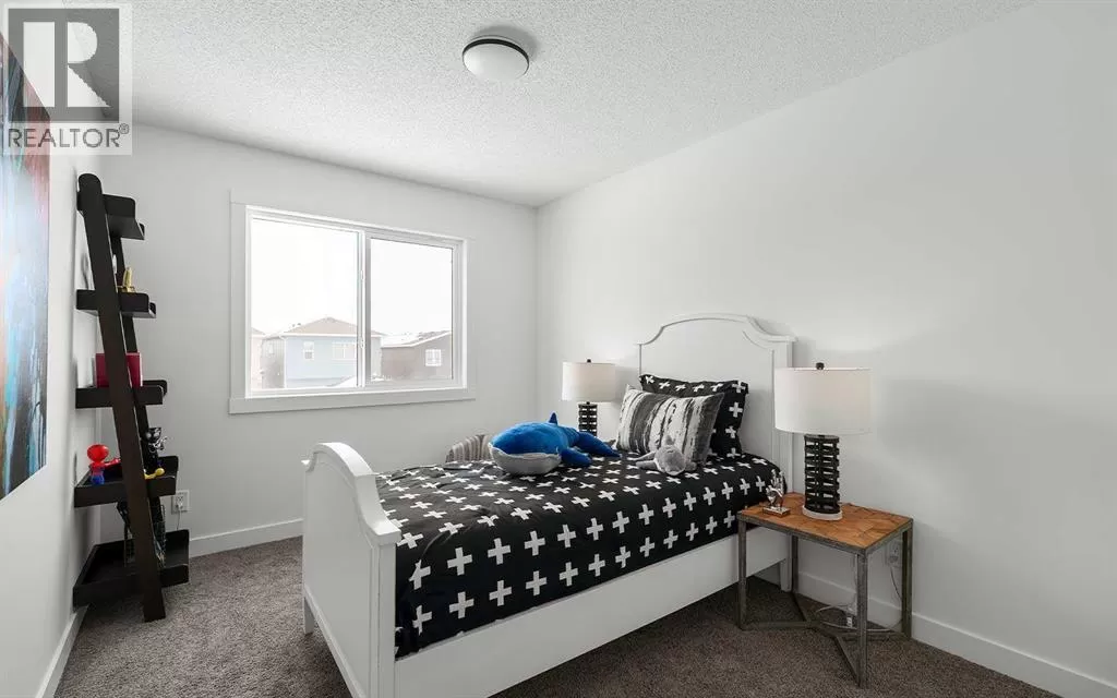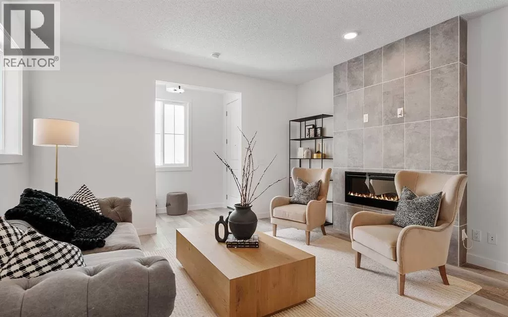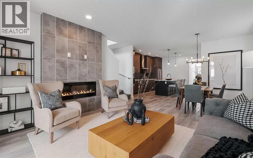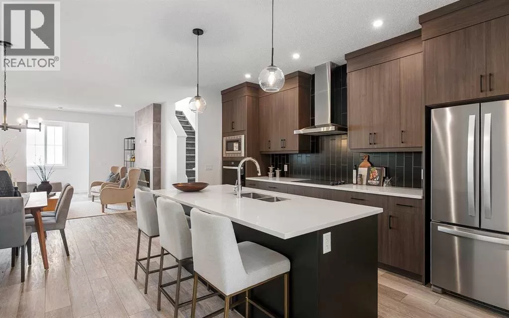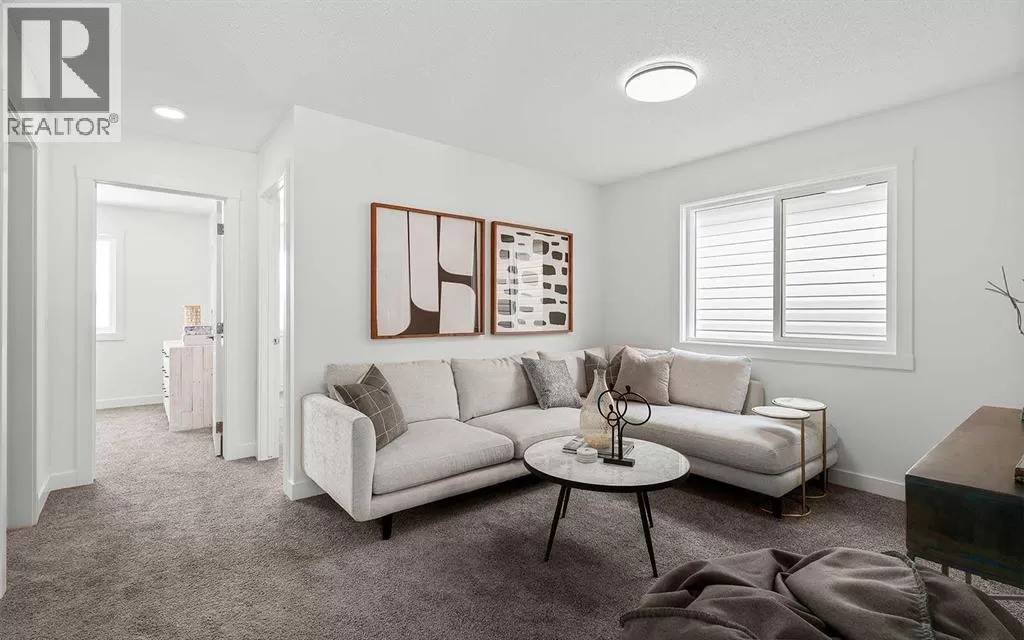 The beautiful new 'Portland' model by Brookfield Residential offers 1,900 square feet of living space + a legal 2 bedroom basement suite. Situated in the heart of Calgary's newest community, Starling, this brand new home features 2 living areas, a home office/flex space on the main level, 3 bedrooms, 2.5 bathrooms and a fully legal 2 bedroom basement suite that is accessed by its own private entrance! The expansive great room at the front of the home has a wall of west-facing windows allowing for natural light to flow through the main level all evening long. The central kitchen is complete with a suite of stainless steel appliances including a chimney hood fan and built-in microwave, a large island with additional seating space and a full walk-in pantry with ample storage space. The kitchen opens to both the living and dining areas - offering an open concept design that is ideal for entertaining. Located at the back of the home is a private flex-space, ideal for a home office of children's play space, that overlooks the backyard. Off of the rear entrance is a walk-in coat closet and two piece bathroom, completing the main level. On the upper level, a central bonus room with a window separates the primary suite from the secondary bedrooms and provides the perfect TV room in addition to the main level great room. The primary suite spans nearly 12'x12' and is complete with a large walk-in closet and private ensuite with walk-in shower. Two more bedrooms, a full bathroom and separate laundry room complete the upper level of this home - offering space for a growing family without the compromise of everyday conveniences. The legal 2-bedroom basement suite has its own private entrance and features a central kitchen with peninsula seating, a living room, 2 bedrooms, a full bathroom and laundry + storage space. Completing this home is a fully private backyard with double parking pad. Builder warranty and Alberta New Home Warranty included with this new home. *Please note: Ph otos are from a show home model and are not an exact representation of the property for sale. (id:27476)