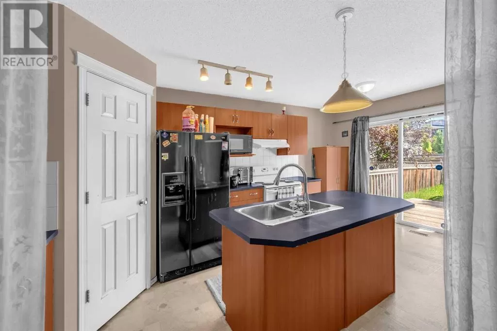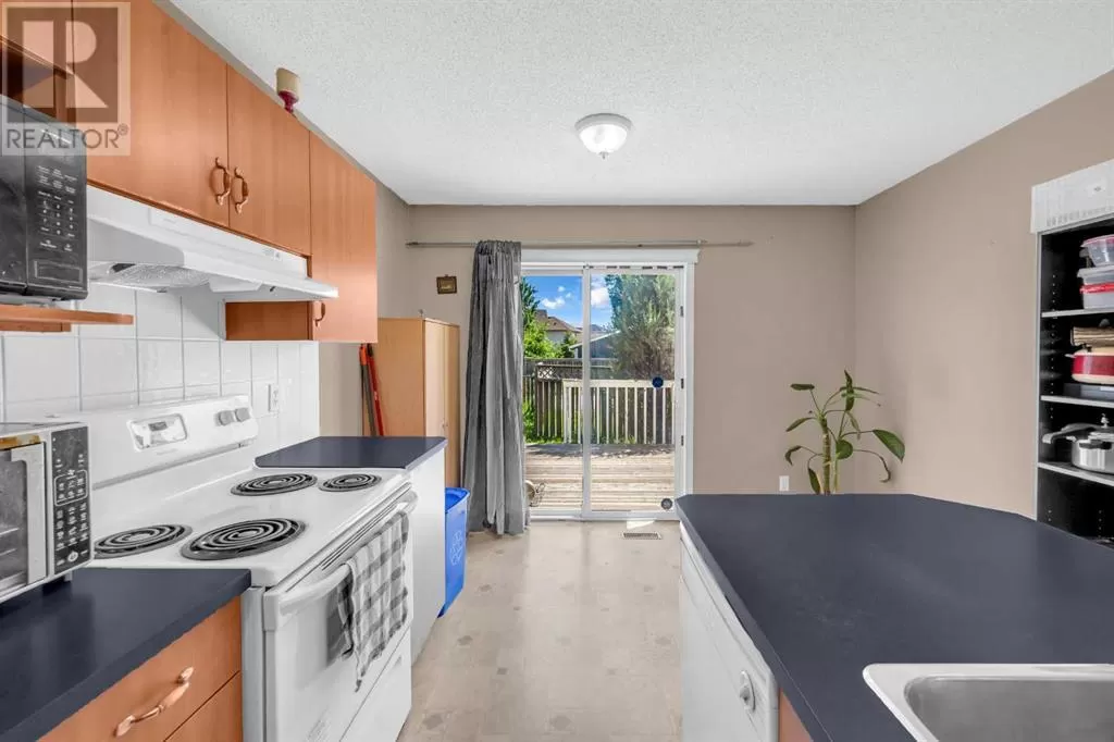 Welcome to this bright and open 3-bedroom, 1.5-bath home, perfect for first-time buyers or anyone looking for great value. The main floor offers a cozy living area with a corner gas fireplace, perfect for relaxing on cooler evenings. The kitchen is bright and functional, featuring a centre island with space for meal prep and casual dining. Upstairs, you'll find three comfortable bedrooms and a full bathroom, making it an ideal layout for small families. The home also includes a convenient half bath on the main level. Notable updates include a new hot water tank installed in 2024. The front bedroom window was replaced in 2025, and the main level window was updated in 2020, contributing to improved comfort and energy efficiency. The siding and roof were also replaced in 2025, offering peace of mind and added curb appeal.Step outside and enjoy a very large deck, perfect for outdoor gatherings or simply soaking up the sun. The fully fenced and landscaped backyard offers a private and secure area for kids, pets, or gardening. Rear parking for two vehicles adds even more convenience. Located in a quiet neighbourhood with a school just steps away, this home is also close to a nearby train station, multiple grocery stores, and everyday amenities. This is truly a great place to call home. It shows well and is ready for you to move in! (id:27476)