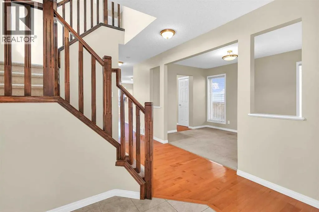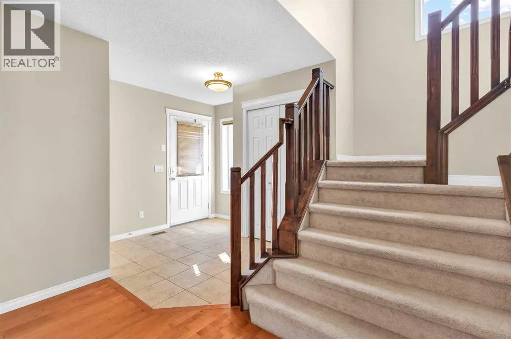 Welcome to this move-in ready 2-storey home in Coventry Hills, offering over 1,780 sq ft of well-planned living space. The main floor features durable hardwood and tile flooring, a cozy gas fireplace in the living room, and a functional kitchen with upgraded countertops, cabinets, and a walk-in pantry. A flexible front room provides options for a dining area, home office, or kidsâ playroom.Upstairs, discover a spacious bonus room filled with natural light, along with three bedrooms. The primary suite includes a walk-in closet and private ensuite with a soaker tub and separate shower. The upper-level laundry adds everyday convenience.The unfinished basement presents excellent potential for future developmentâwhether as a recreation room, gym, or additional living areaâtailored to your needs. Outside, the west-facing backyard is fully fenced with plenty of space for gatherings, gardening, or RV parking, with rear lane access for flexibility.Located within walking distance to Coventry Hills School, Nose Creek School, and North Trail High School, and just minutes from shopping, parks, and transit. This home combines everyday convenience with future growth potential. (id:27476)