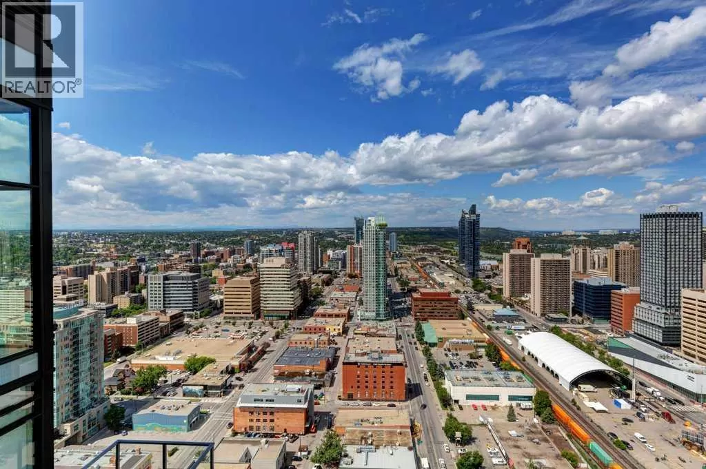 Fantastic views from this beautiful Penthouse! Location location, enjoy all the great new amenities in the heart of downtown Calgaryâs Beltline, this modern penthouse suite is situated on the 31st floor of 6th and 10th. With over 1700 sqft. of living space on the inside and an additional 970 sq.ft. of outdoor living space, this stunning two-bedroom home is the largest and most impressive suite in the tower. The massive outdoor terrace area is one of the largest of any penthouses within the city and boasts stunning panoramic, mountain and city views, ideal for entertaining friends and family. The floorplan has been thoughtfully designed and features an open concept floor plan creating a bright and spacious living space. The chef inspired kitchen is well equipped with sleek, high gloss and modern cabinetry, stone countertops, stylish backsplash, and stainless-steel appliances with a gas stove. This incredibly open concept design is highlighted by 12 ft ceilings and floor to ceiling windows. Youâre going to love working in the den, which offers incredible light and breathtaking views towards the Rocky Mountains, making it a perfect place to work or relax. The gorgeous master bedroom features a luxurious spa inspired ensuite with marble flooring, oversized shower (with mountain views!), double sink and a deep soaker tub, a brilliantly designed walk-in closet and a spacious private balcony offering some of the best views in the city. The second bedroom is inviting, also offering incredible views with a private balcony and large closet. Conveniently located close to the second bedroom is the 4-piece bath that features stunning marble flooring, a soaker tub, and a stone countertop. Additional special features include in-suite laundry, a large foyer and full-sized closet. Amenities in the building include the outdoor plunge pool and lounging area in the summer,24 Hour executive concierge and security, gym, and ownerâs lounge. This incredible penthouse suite also includes 2 titled parking stalls conveniently located close to the elevator along with a titled storage unit and bicycle storage. Donât miss out on this great opportunity to invest in this unique, one-of-a-kind home which is located so close to so many amazing amenities! (id:27476)
