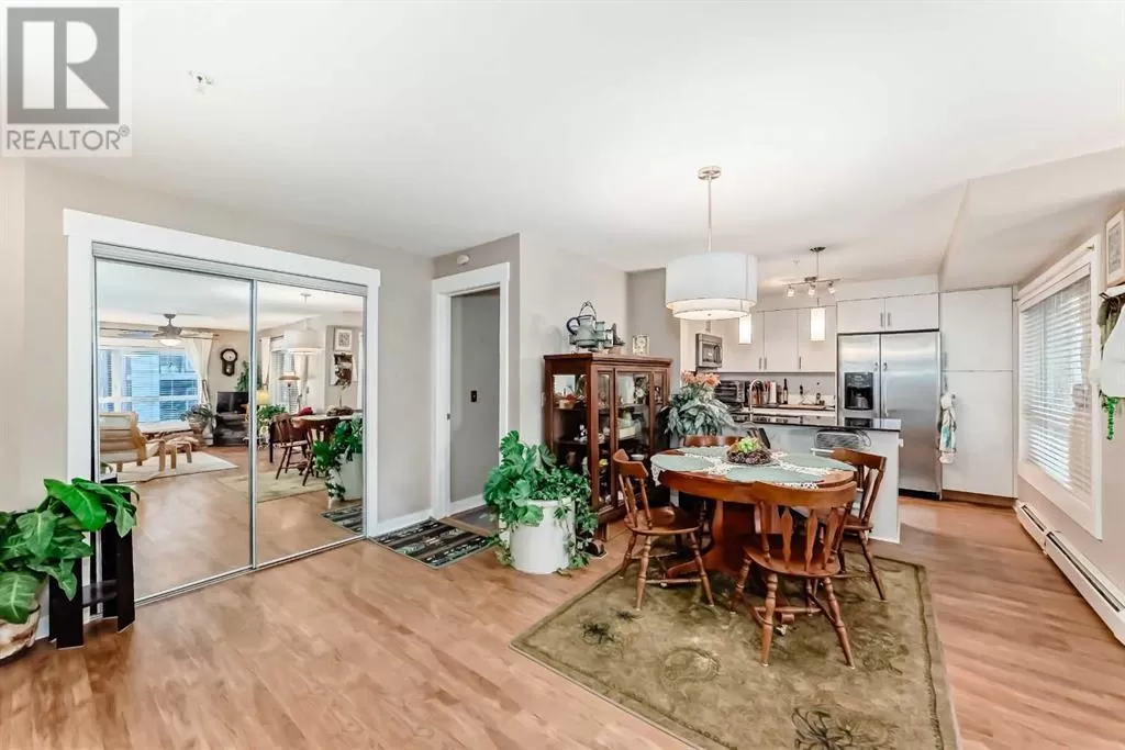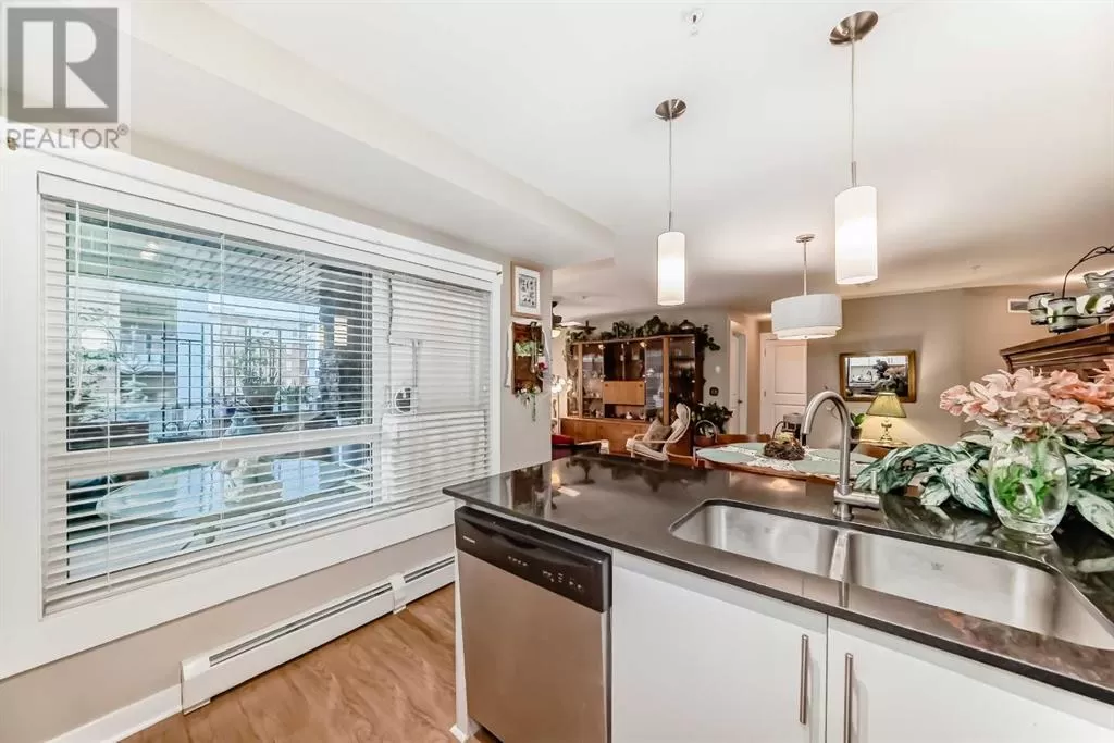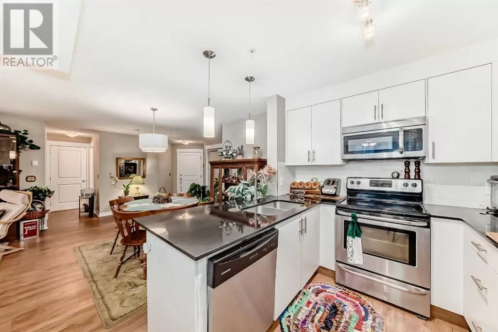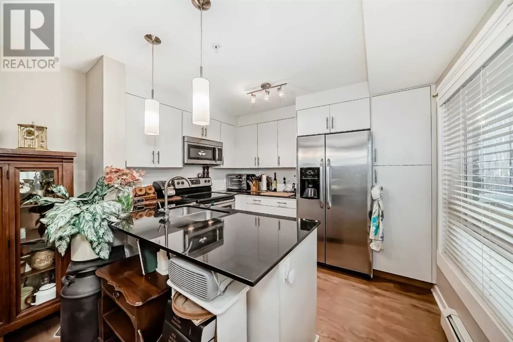 Bright, modern large unit with large balcony. Two generously sized bedrooms and 2 bathrooms. Upgraded flooring. Includes heated underground parking stall and private storage. Large balcony. Desirable Calgary neighborhood. (id:27476)