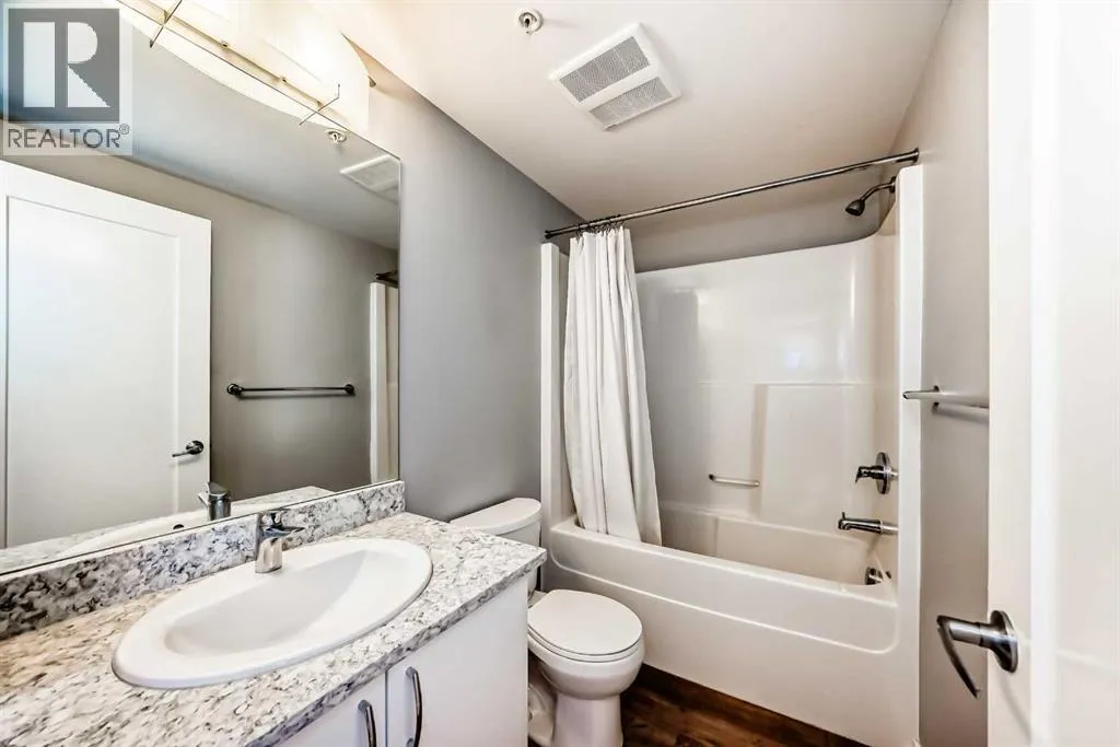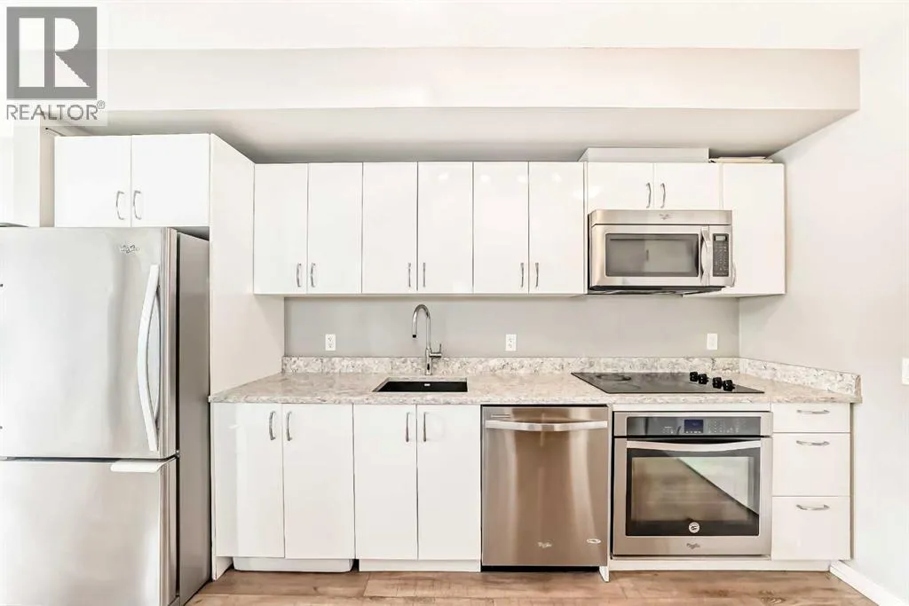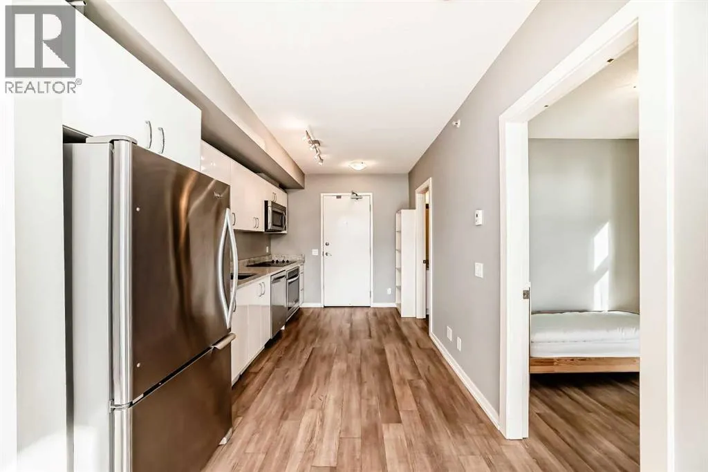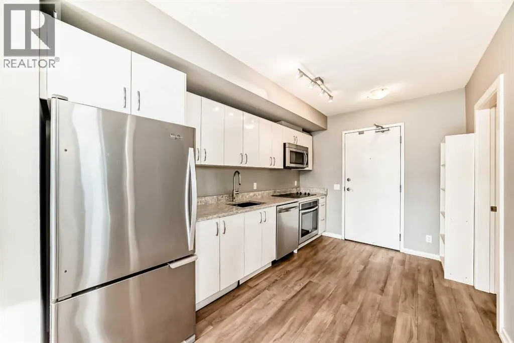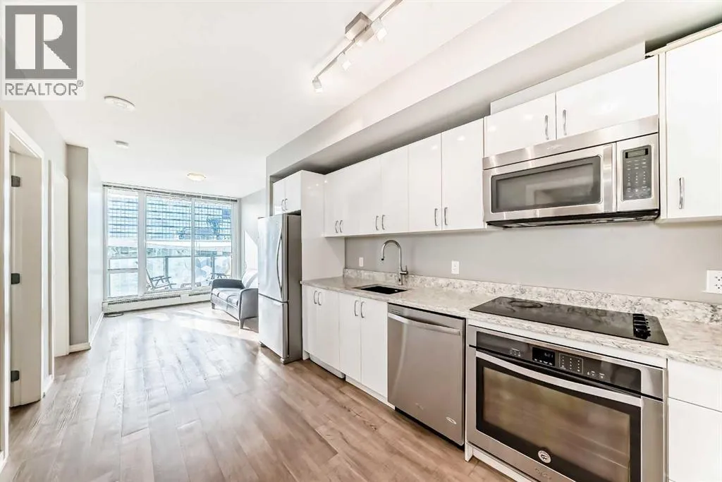 Welcome to this wonderful 2-bedroom, 1-bath apartment nestled in the vibrant inner-city neighborhood of Downtown East Village. This open-concept unit features stylish flooring throughout. The spacious living room extends to an inviting balcony, perfect for relaxation while enjoying breathtaking city and river views. The modern kitchen is equipped with sleek cabinetry and appliances, while two sizable bedrooms are filled with natural light. A well-appointed bathroom completes this functional layout. For added convenience, underground bicycle storage is available. This apartment also offers a range of amenities, including a party room, fitness center, 24-hour security, a rooftop terrace, and more. Ideally located within walking distance of everything East Village has to offerâCentral Library, C-Train, Studio Bell & Arts Centre, Bow River Pathways, Real Canadian Superstore, and a variety of restaurants, coffee shops, and bars. Book your private showing today! (id:27476)
