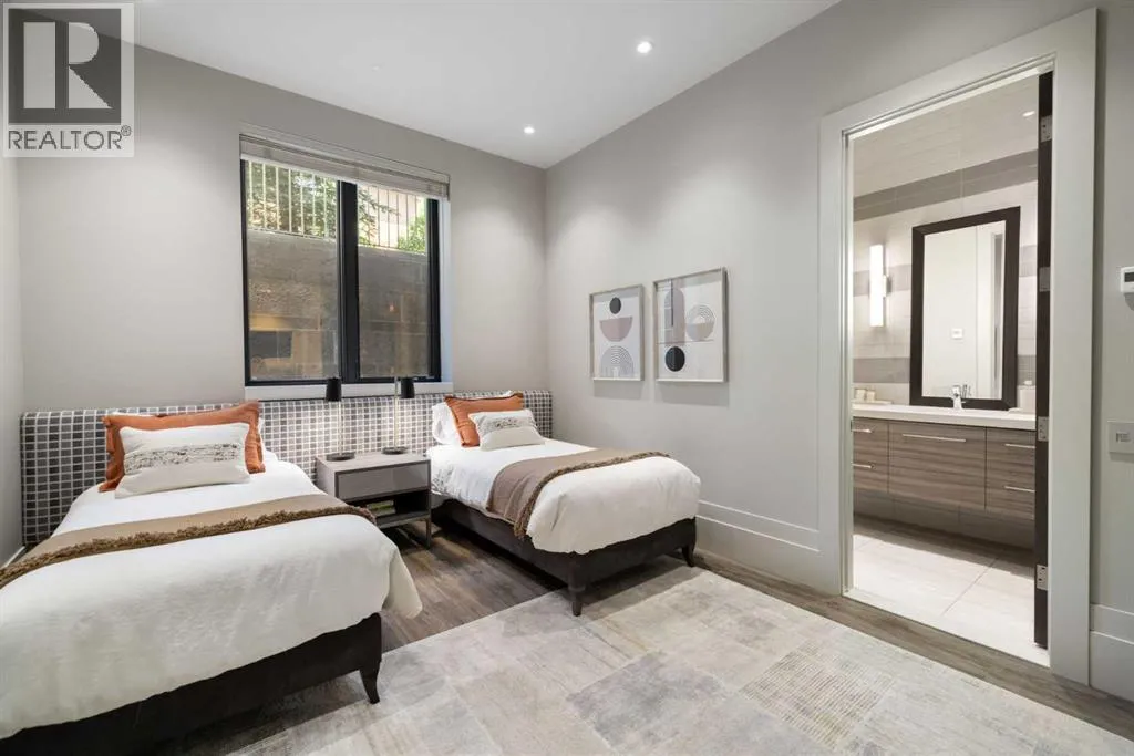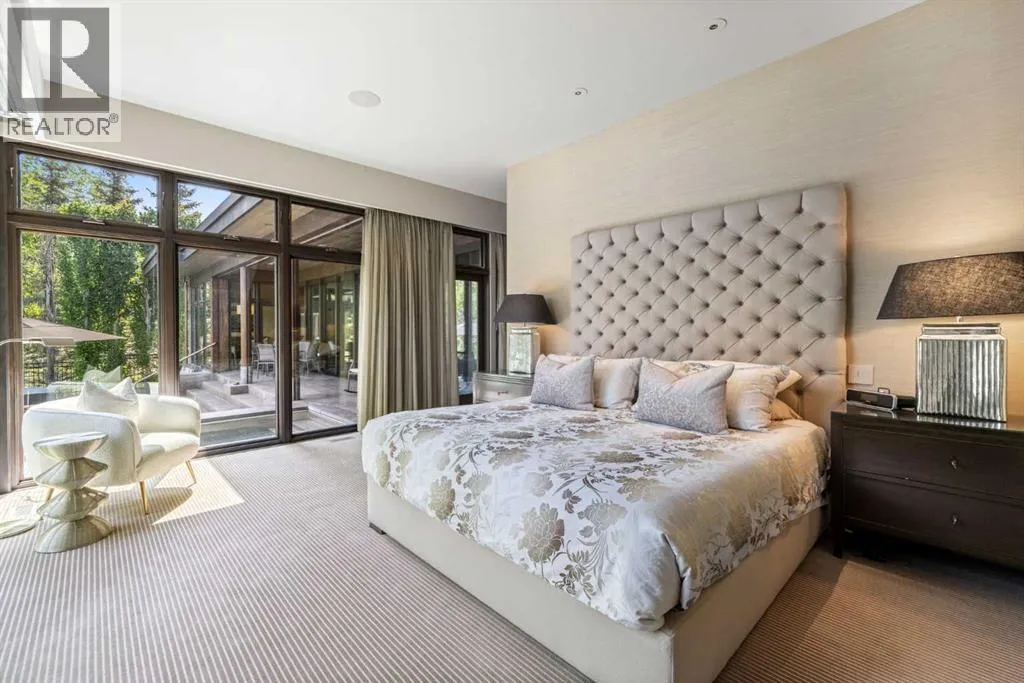 A rare offering where modern architecture & meticulous execution meet on one of Elbow Parkâs most prized riverfront lots. Situated on a coveted tree-lined street steps from river pathways, parks, top schools, vibrant restaurants & the downtown core, this is a once-in-a-lifetime opportunity to own one of Calgaryâs most architecturally significant homesâa perfect harmony of design, craftsmanship, & location.Thoughtfully designed by award winning architect Mark Burkart and custom built by Mission Custom Homes, this extraordinary residence offers over 6,600 sq ft of refined living space. The design is quietly sophisticated, blending natural materials & light-filled spaces to create a home of remarkable beauty & comfort. The exterior, clad in warm silver-to-charcoal Saint Marc limestone, copper roofing, and Meranti hardwood soffits lends a sense of permanence and quiet strength evoking the spirit of a small modern museum. A front courtyard with a tranquil reflecting pool invites you into the home, while the rear terrace creates a serene outdoor retreat overlooking the Elbow River. Inside, elegant proportions and rich finishes create an atmosphere of understated luxury. Soaring 19' ceilings define the great room, where a monumental limestone fireplace serves as a stunning focal point. A 30' retractable glass wall opens entirely to a heated limestone terrace with phantom screens, infrared heaters, & built-in speakers, perfect for year-round enjoyment and effortless indoor-outdoor living. The chefâs kitchen is both functional & striking, featuring custom tigerwood cabinetry, a cantilevered 13â Caesarstone island, and top-of-the-line Gaggenau and Miele appliances. A walk-in pantry, wet bar, & seamless flow to the dining area make the space ideal for entertaining or everyday living. The primary suite is a private riverside sanctuary with floor-to-ceiling windows, silk wall coverings, & heated marble floors. Its spa-caliber ensuite offers Bianca Carrera marble, a steam show er, a freestanding tub & a walk-in closet with custom cabinetry. Two exceptional home offices, a beautifully appointed laundry room, & an exquisite powder room complete the main floor. The lower level continues the homeâs thoughtful design with a floating oak staircase, spacious family/rec room anchored by a stunning four-sided limestone fireplace, three bedrooms each with a full ensuite, a professional-grade gym, a custom wine room & a 12-foot wet bar. Radiant in-floor heating & elevator access ensure comfort & convenience on every level. Advanced mechanical and smart home systems provide comfort & security, Crestron AV, Lutron lighting, triple-pane Lowen windows, a heated driveway, Viessmann boilers, a water filtration system, & backup generator. Professionally landscaped, the outdoor living spaces include three distinct patio areas: a limestone-encased hot tub, a rundle stone firepit patio surrounded by lush perennial gardens & built-in BBQ area. More than a home, this residence is about a lifestyle. (id:27476)