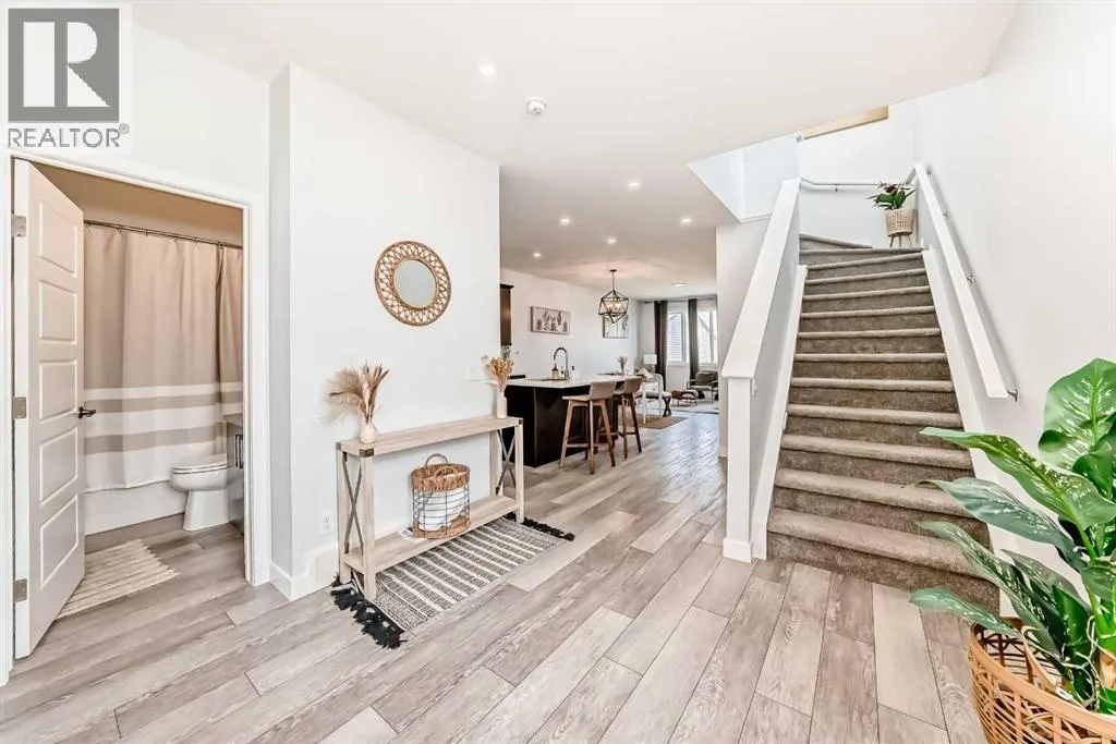 Welcome to this beautifully upgraded 6-bedroom , 4-bathroom home located on a spacious corner lot in the vibrant community of Evanston. Built in December 2020, this well-maintained home blends comfort, energy efficiency, and family-friendly functionality. A brand-new roof was installed in March 2025, offering added peace of mind and long-term value.The open-concept main floor features a bright living space, modern kitchen with stainless steel appliances and a central island, and a generous dining areaâperfect for everyday living and entertaining. A major highlight is the main-floor bedroom with a full 4-piece bathroom, ideal for guests, seniors, or as a private home office.Upstairs, the spacious primary suite includes a walk-in closet and ensuite bathroom. Two additional bedrooms, another full bath, convenient upper-floor laundry, and a storage nook complete the second level. The lower level adds extra space with two more bedrooms, a large living area, full bathroom, and secondary laundry.Smart features such as solar panels and smart lighting help reduce utility costs while enhancing your living experience. The large backyard includes alley access and rough-ins already completed for a future garage and 2-bedroom carriage suite (original permit expired; new approval required).Located just steps from parks, walking paths, schools, and shopping, this home is also near the site of the brand-new Kâ6 public school scheduled to open in Fall 2026. With thoughtful design, energy-efficient features, and room to grow, this is the perfect place to settle into one of NW Calgaryâs most desirable family communities. (id:27476)