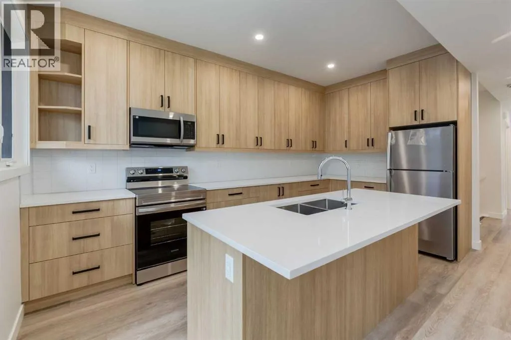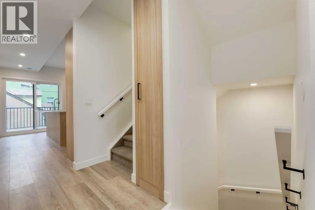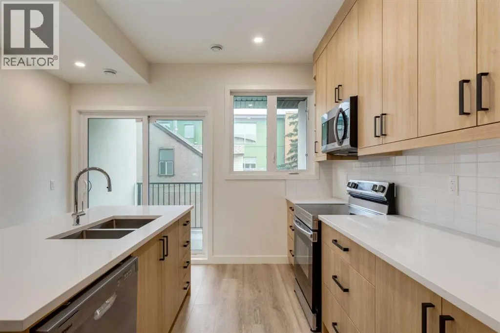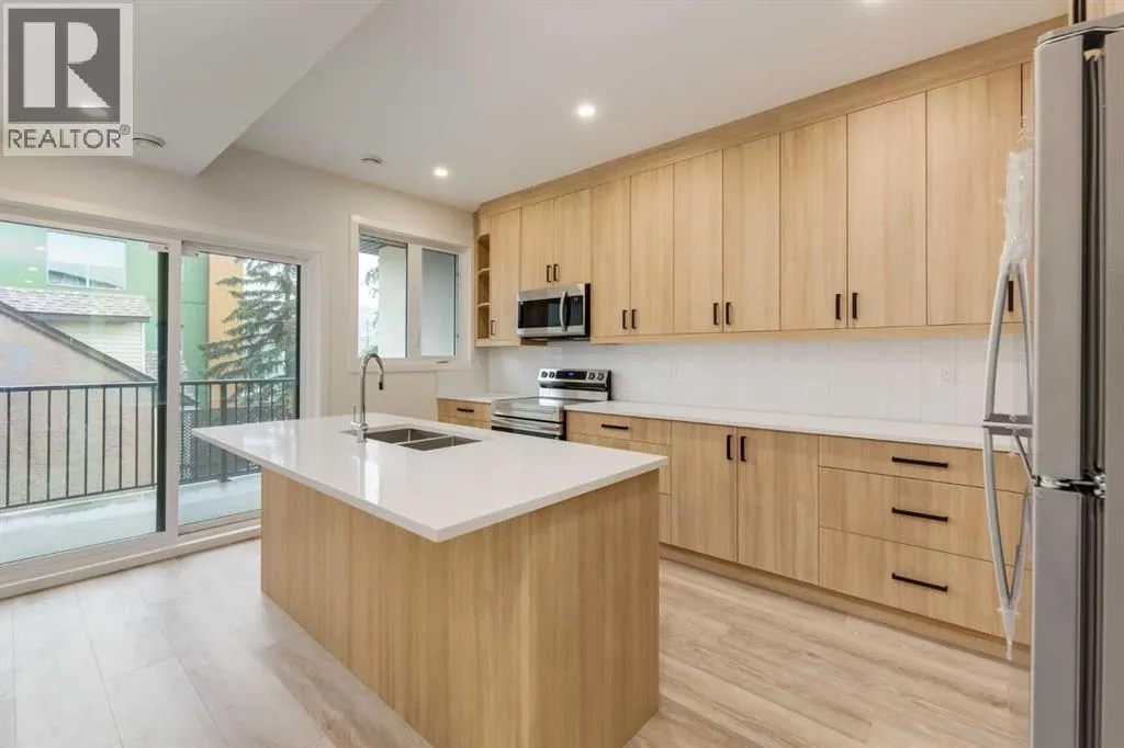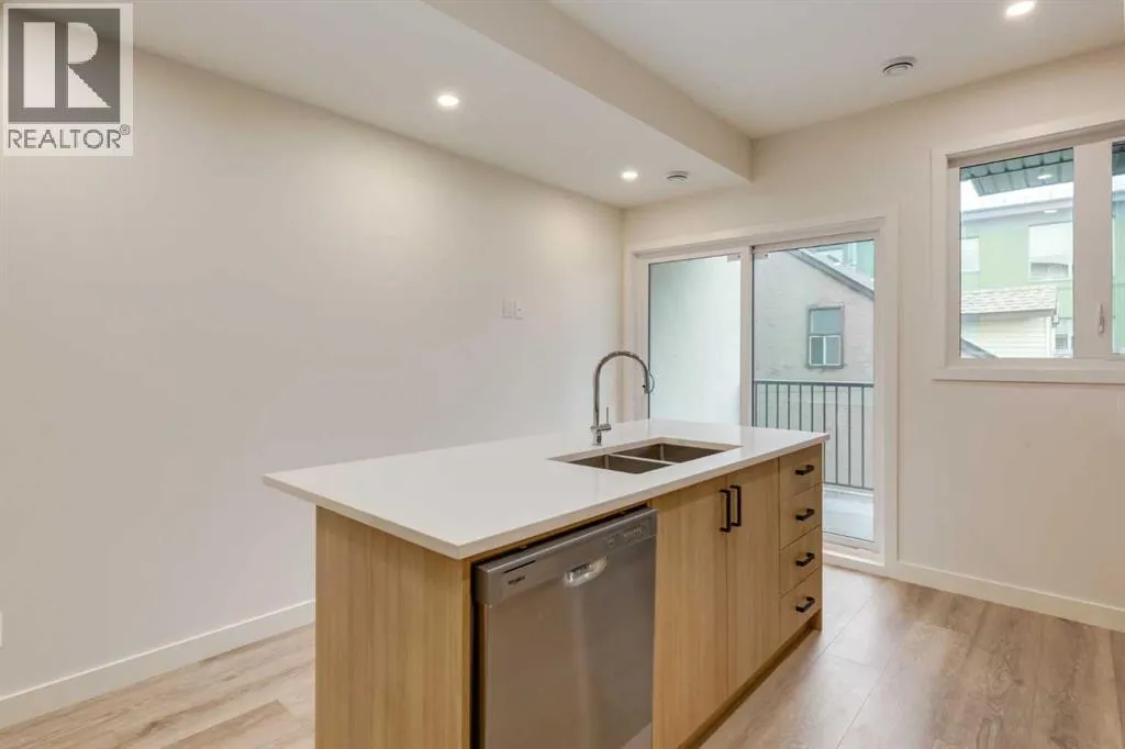 Experience Contemporary Living in Calgaryâs Vibrant West EndThis newly built townhouse blends modern design with everyday functionality, nestled in a dynamic inner-city neighbourhood.Step inside through the ground-level entrance to a spacious foyer that connects to a single attached garage and a versatile self-contained studioâideal for guests, remote work, or generating rental income.Upstairs, luxury vinyl plank stairs lead to a bright and open main floor. The sleek kitchen is outfitted with full-height cabinetry, stainless steel appliances, quartz countertops, and a built-in buffet for additional storage. A cozy dining nook offers the perfect setting for relaxed meals or casual entertaining.The airy living area features two oversized windows that flood the space with natural light, along with a convenient two-piece powder room for guests.On the upper level, youâll find two large primary suites, each with its own four-piece ensuite and generous closet space. A dedicated laundry area on this floor adds to the homeâs practical appeal.Located steps from local cafes, shops, and services, and offering quick access to the Trans-Canada Highway, Stoney Trail, Shouldice Park, and the Bow River, this move-in ready home offers exceptional lifestyle and investment potential. (id:27476)