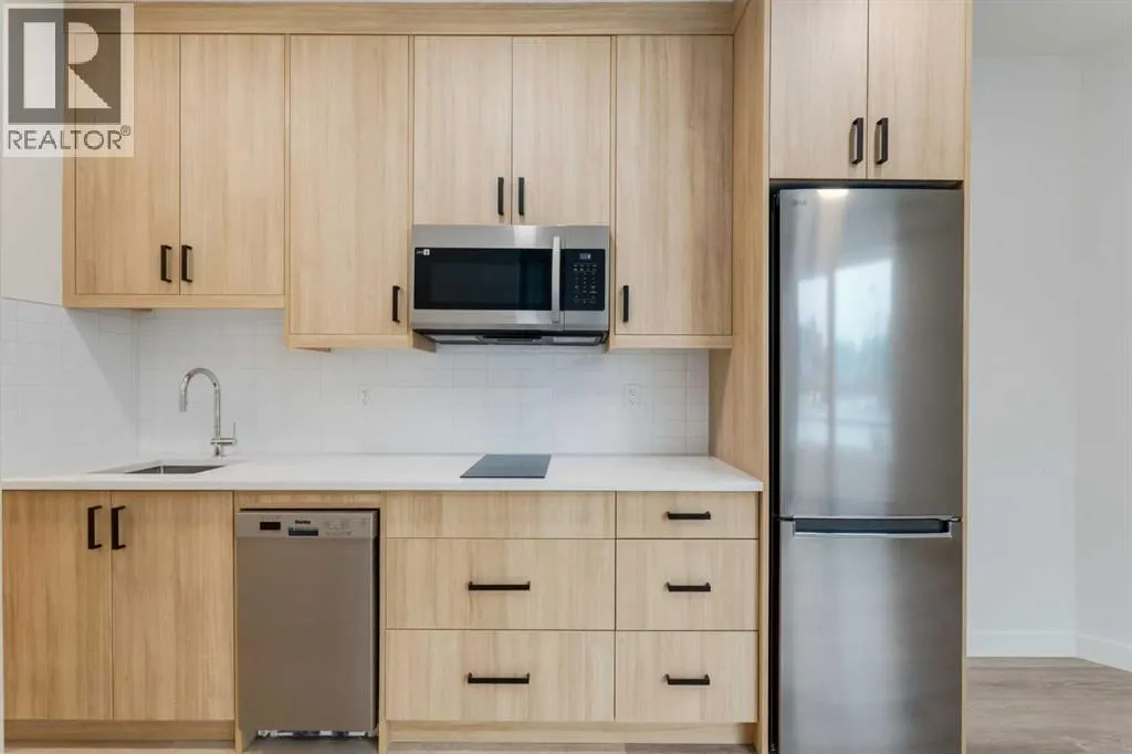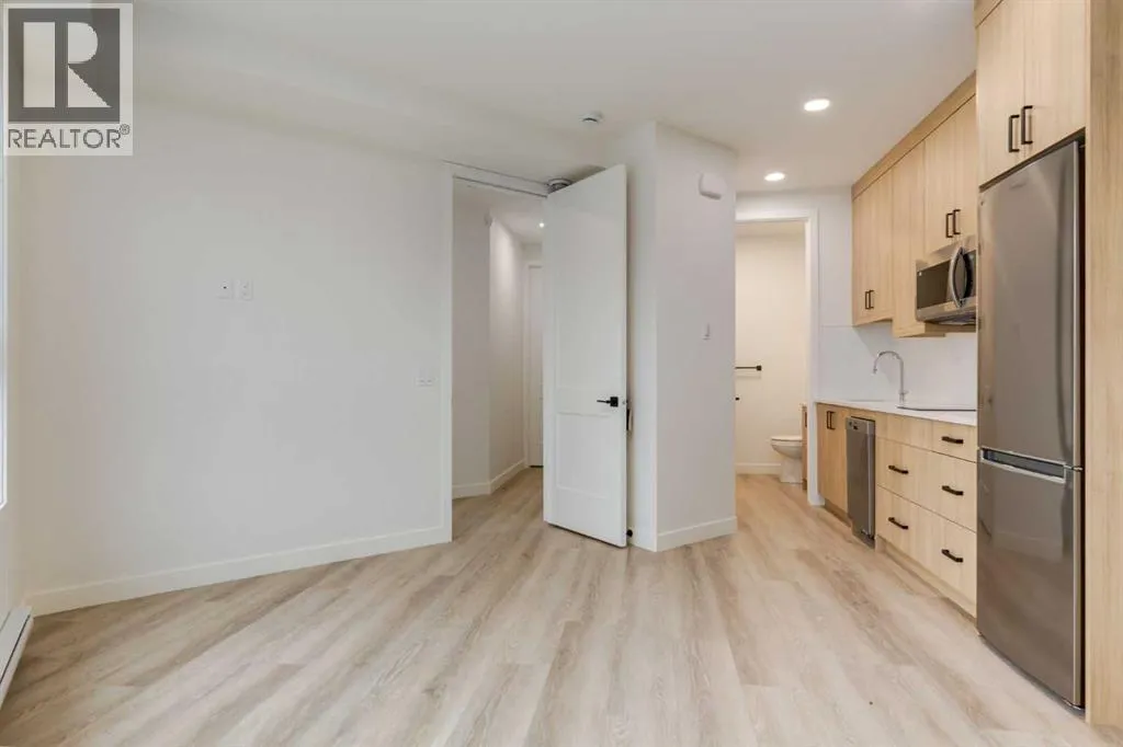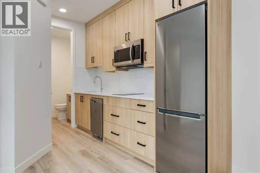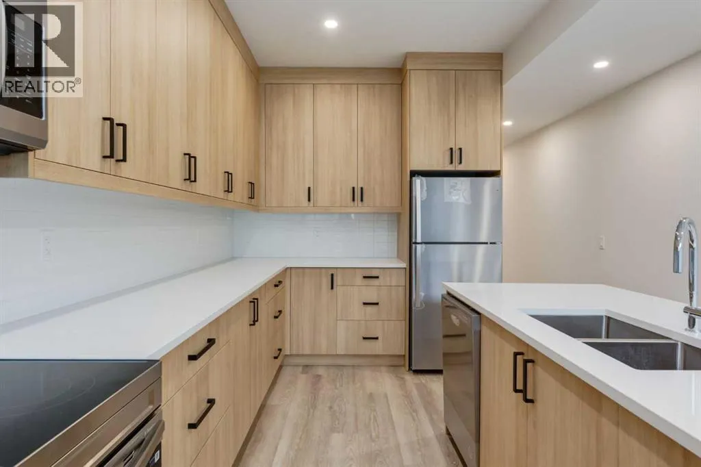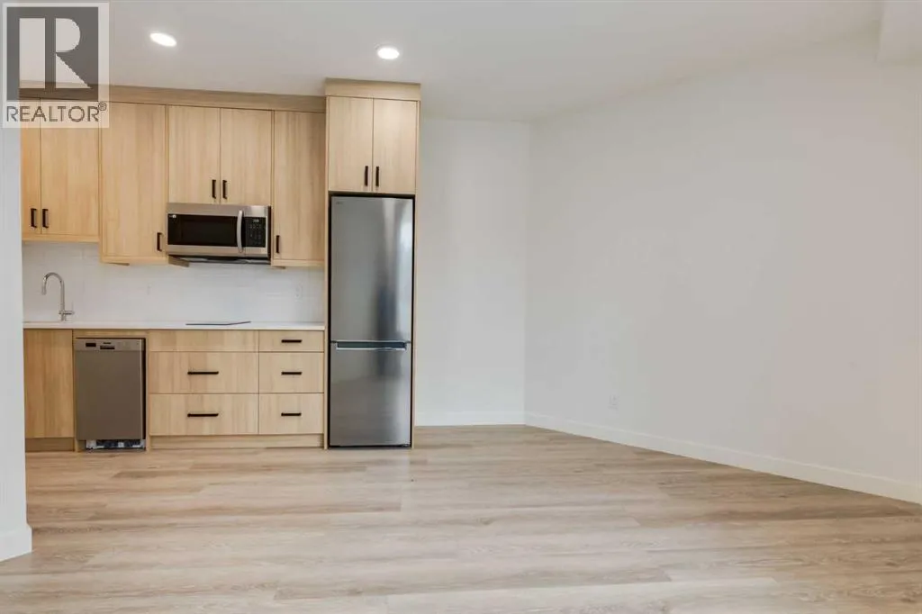 Experience Contemporary Living in Calgaryâs Vibrant West EndThis newly built townhouse blends modern design with everyday functionality, nestled in a dynamic inner-city neighbourhood.Step inside through the ground-level entrance to a spacious foyer that connects to a single attached garage and a versatile self-contained studioâideal for guests, remote work, or generating rental income.Upstairs, luxury vinyl plank stairs lead to a bright and open main floor. The sleek kitchen is outfitted with full-height cabinetry, stainless steel appliances, quartz countertops, and a built-in buffet for additional storage. A cozy dining nook offers the perfect setting for relaxed meals or casual entertaining.The airy living area features two oversized windows that flood the space with natural light, along with a convenient two-piece powder room for guests.On the upper level, youâll find two large primary suites, each with its own four-piece ensuite and generous closet space. A dedicated laundry area on this floor adds to the homeâs practical appeal.Located steps from local cafes, shops, and services, and offering quick access to the Trans-Canada Highway, Stoney Trail, Shouldice Park, and the Bow River, this move-in ready home offers exceptional lifestyle and investment potential. (id:27476)