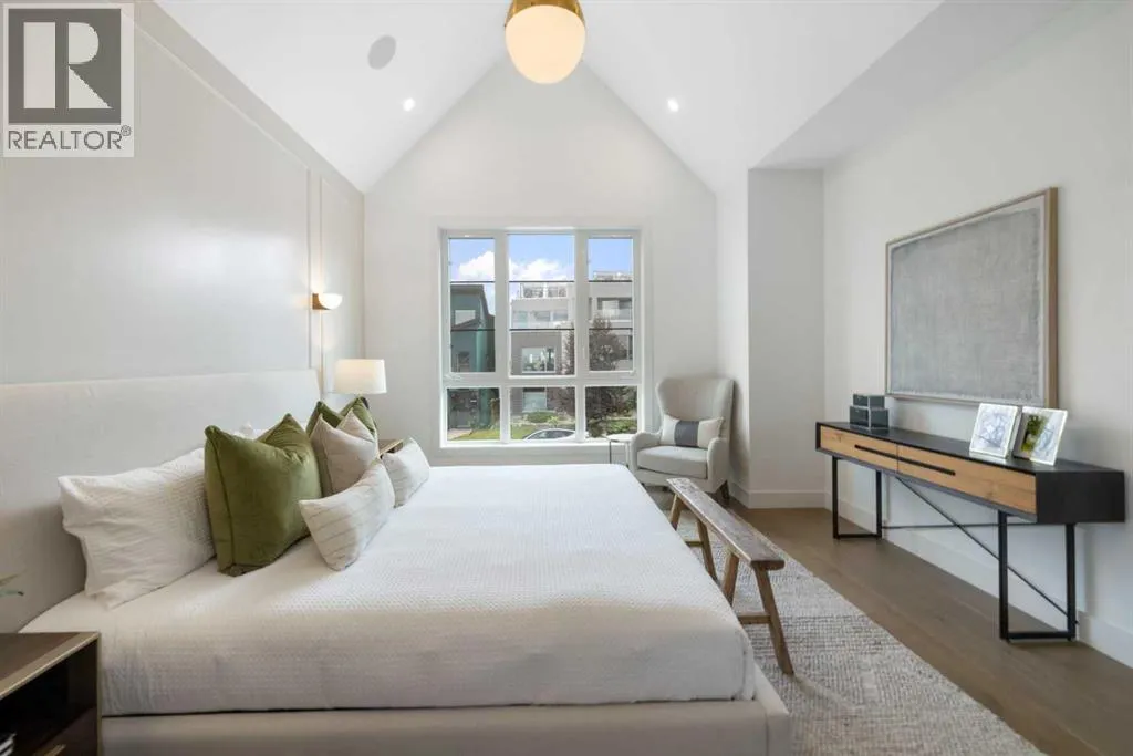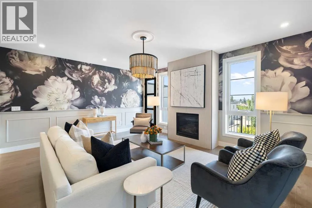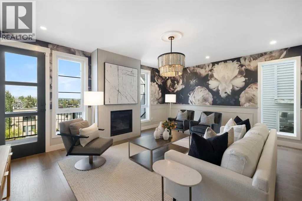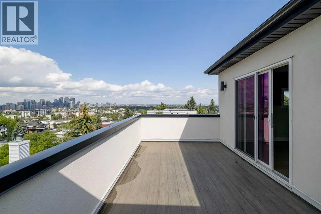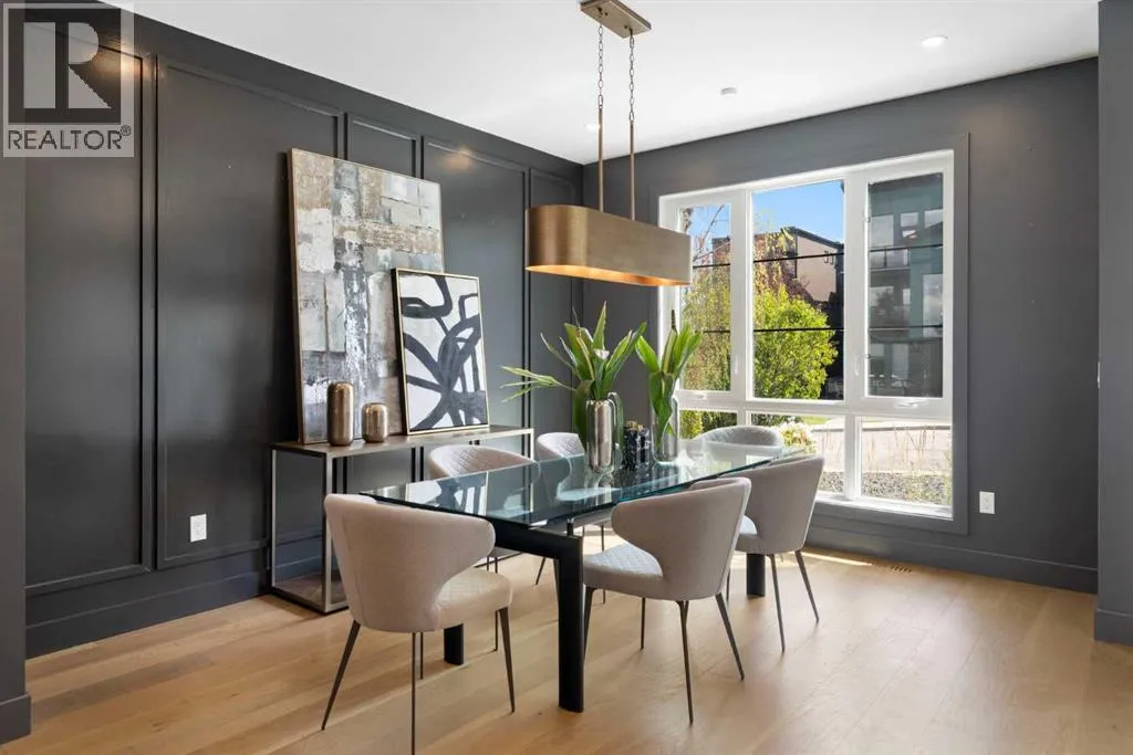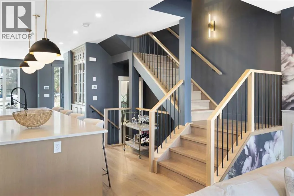 Welcome to this architecturally stunning, contemporary home perched on one of Calgaryâs most coveted streets, 29th Avenue SW which offers breathtaking panoramic views of the downtown skyline. This elegant semi-detached residence delivers over 3,200 sq ft of sophisticated living across four beautifully finished levels. Upon arrival, you're greeted by fantastic curb appeal, professional landscaping front and back, and an inviting street-level main floor entry that transitions seamlessly to a sun-filled rear deck complete with gas BBQ hookup. The open-concept main floor is an entertainerâs dream: wide-plank hardwood floors, soaring ceilings, and abundant natural light set the stage for elegant gatherings. The formal dining room flows effortlessly into a chefâs kitchen appointed with a high-end Bertazzoni gas range, double Even-Temp fridge, Braun dishwasher, two wine fridges, quartz countertops, large island with eating bar, pantry, and premium fixtures. The spacious living room with gas fireplace creates an inviting atmosphere, and a stylish powder room completes this level. Upstairs, the second level features three spacious bedrooms and a convenient laundry room with sink. The luxurious primary retreat impresses with vaulted ceilings, a generous walk-in closet with organizers, and a spa-like 5-piece ensuite with heated floors, oversized glass shower (roughed-in for steam), and a freestanding soaker tub â all designed for ultimate relaxation. The third level loft is a standout highlight, perfect for entertaining with a wet bar, full bathroom, and an expansive terrace where you can take in the sweeping 270-degree city views â ideal for summer evenings and sunset cocktails. The fully finished walk-out basement enhances the living space with a large family/media room with custom built-ins, a second wet bar, fourth bedroom, full bathroom, mudroom, and a walkout patio that extends the living area outdoors. Enjoy comfort year-round with in-floor heating (basement), forced-ai r heating, and a recently added 2-zone air conditioning system. The detached double garage is insulated, heated, plumbed for vacuflow, features an electric car charger, and provides ample space for storage and parking. Additional thoughtful touches include 9â ceilings, designer lighting, custom millwork, upgraded garage door opener, security system with cameras, ceiling speakers throughout, and energy-efficient mechanicals. Located in vibrant South Calgary, this home is walking distance to Marda Loopâs boutique shops, restaurants, wine bars, breweries, parks, playgrounds, dog park, bike tracks, community garden, outdoor pool, excellent schools including Richmond School, Rundle College, Montessori programs, and transit routes including 14th Street and close proximity to the Ring Road. A rare opportunity to own a turn-key urban luxury home with unbeatable views in an unbeatable location â this home truly has it all! (id:27476)