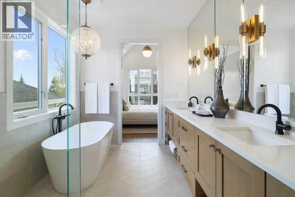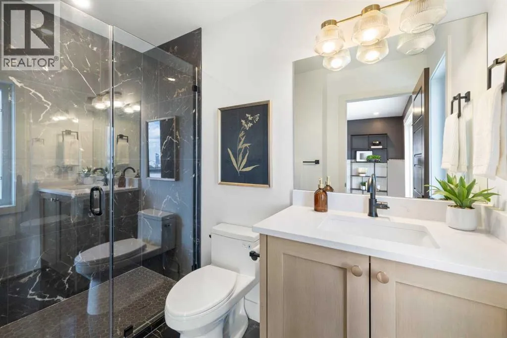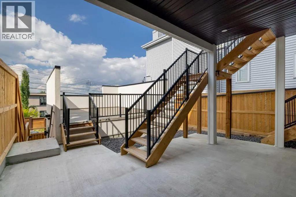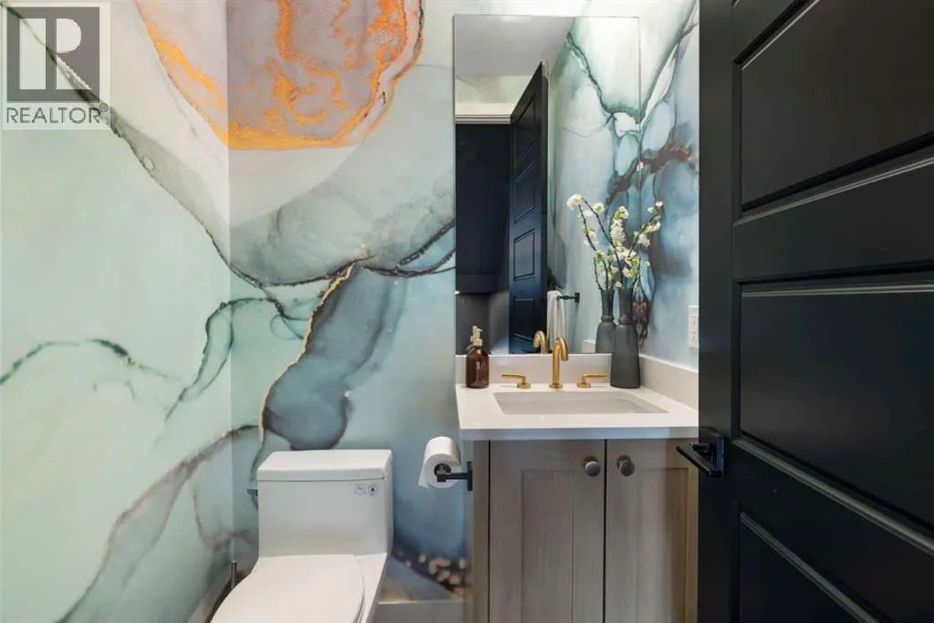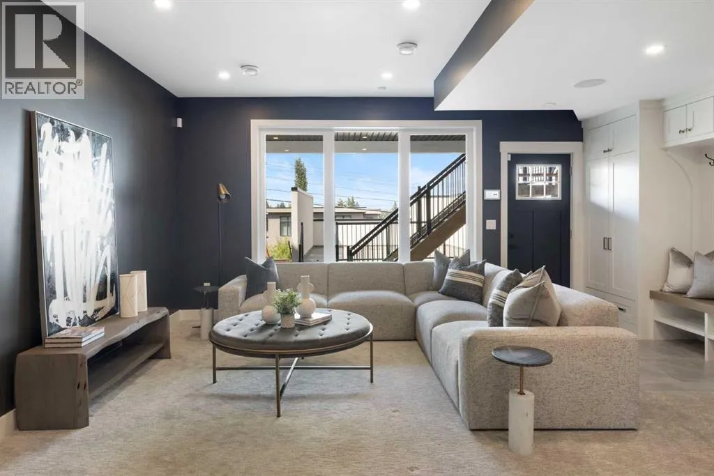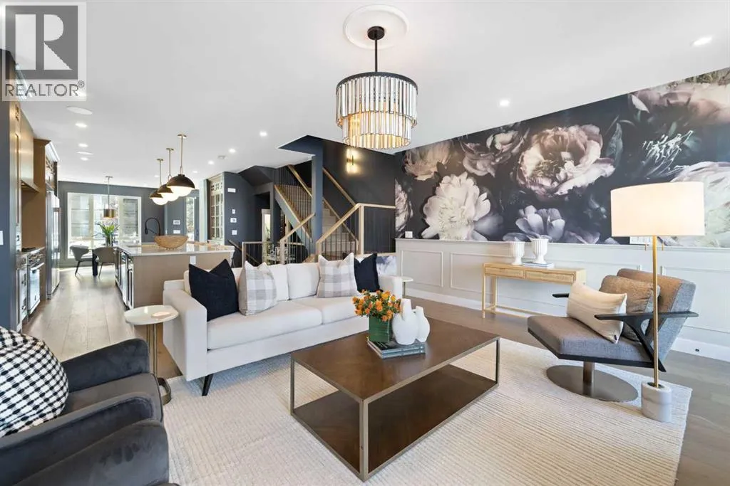 Welcome to this architecturally stunning, contemporary home perched on one of Calgaryâs most coveted streets, 29th Avenue SW which offers breathtaking panoramic views of the downtown skyline. This elegant semi-detached residence delivers over 3,200 sq ft of sophisticated living across four beautifully finished levels. Upon arrival, you're greeted by fantastic curb appeal, professional landscaping front and back, and an inviting street-level main floor entry that transitions seamlessly to a sun-filled rear deck complete with gas BBQ hookup. The open-concept main floor is an entertainerâs dream: wide-plank hardwood floors, soaring ceilings, and abundant natural light set the stage for elegant gatherings. The formal dining room flows effortlessly into a chefâs kitchen appointed with a high-end Bertazzoni gas range, double Even-Temp fridge, Braun dishwasher, two wine fridges, quartz countertops, large island with eating bar, pantry, and premium fixtures. The spacious living room with gas fireplace creates an inviting atmosphere, and a stylish powder room completes this level. Upstairs, the second level features three spacious bedrooms and a convenient laundry room with sink. The luxurious primary retreat impresses with vaulted ceilings, a generous walk-in closet with organizers, and a spa-like 5-piece ensuite with heated floors, oversized glass shower (roughed-in for steam), and a freestanding soaker tub â all designed for ultimate relaxation. The third level loft is a standout highlight, perfect for entertaining with a wet bar, full bathroom, and an expansive terrace where you can take in the sweeping 270-degree city views â ideal for summer evenings and sunset cocktails. The fully finished walk-out basement enhances the living space with a large family/media room with custom built-ins, a second wet bar, fourth bedroom, full bathroom, mudroom, and a walkout patio that extends the living area outdoors. Enjoy comfort year-round with in-floor heating (basement), forced-ai r heating, and a recently added 2-zone air conditioning system. The detached double garage is insulated, heated, plumbed for vacuflow, features an electric car charger, and provides ample space for storage and parking. Additional thoughtful touches include 9â ceilings, designer lighting, custom millwork, upgraded garage door opener, security system with cameras, ceiling speakers throughout, and energy-efficient mechanicals. Located in vibrant South Calgary, this home is walking distance to Marda Loopâs boutique shops, restaurants, wine bars, breweries, parks, playgrounds, dog park, bike tracks, community garden, outdoor pool, excellent schools including Richmond School, Rundle College, Montessori programs, and transit routes including 14th Street and close proximity to the Ring Road. A rare opportunity to own a turn-key urban luxury home with unbeatable views in an unbeatable location â this home truly has it all! (id:27476)