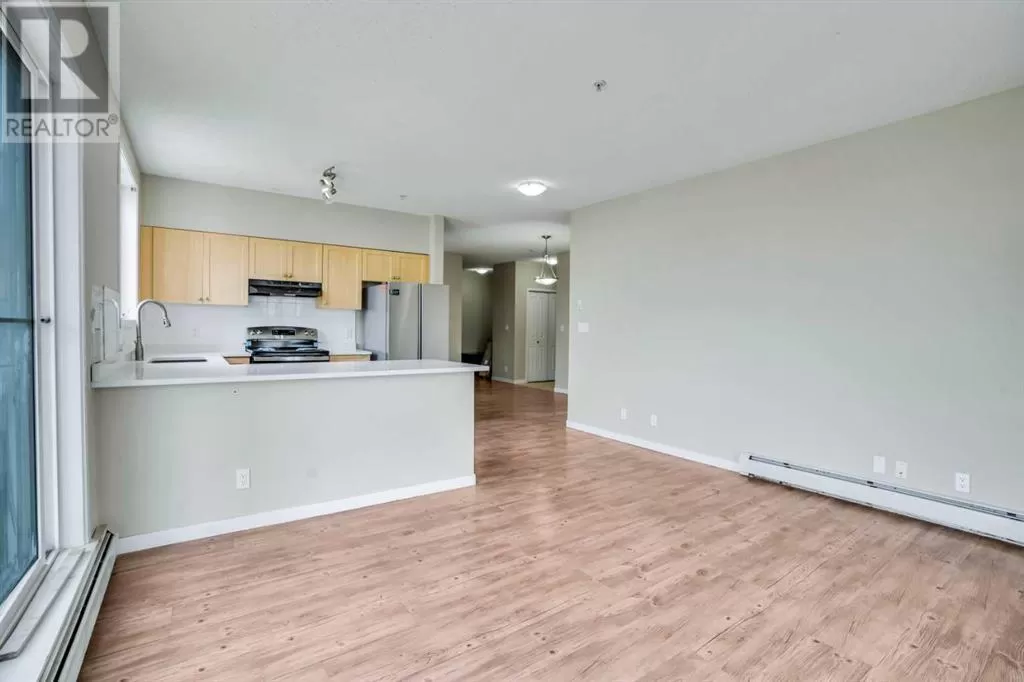 Amazing value for an amazing amount of space in this bright and spacious 2-bedroom plus den, 2 full bathroom corner unit condo! This large corner unit is flooded with natural light and features a larger-than-average wraparound balconyâperfect for relaxing or entertaining. The home is in excellent condition and located in a very clean and well-maintained building. The primary bedroom is generously sized and includes a spotless private ensuite bathroom, while the second bedroom has a convenient cheater door to the second full bath, essentially giving it ensuite access as well. A bonus den area offers the perfect spot for a tucked-away home office. The large kitchen is outfitted with maple cabinets, brand new quartz countertops, and brand new stainless steel appliances including a stove, fridge, and dishwasher. Both bathrooms also feature brand new quartz countertops, and luxury vinyl flooring has been installed throughout the living, dining, and bedroom areas. Additional highlights include in-suite laundry, a separate storage locker on the same floor, and a surface parking stall. Located close to major schools, shopping, Genesis Centre, train station, bus stops, walking trails, parks, and playgroundsâthis unit combines space, style, and convenience at an unbeatable price. Donât miss the photos and 3D tour! (id:27476)