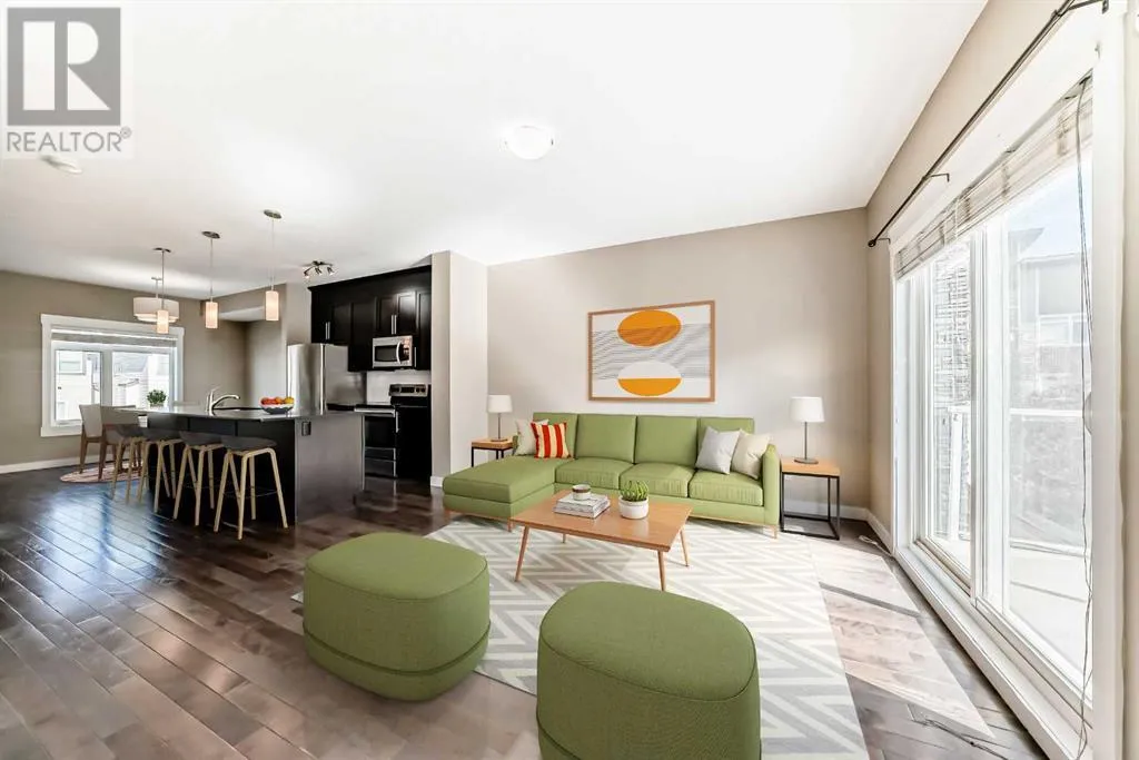 ** OPEN HOUSES, SAT. JULY 19, 1-3pm & SUN. JULY 20, 1-3PM** This beautiful 2-bedroom, 2.5-bathroom townhouse in Skyview Ranch offers both comfort and convenience. Highlights include a welcoming entry with a den and a large mudroom leading to the double attached garage. The main floor features an open-concept living area with distinct, functional spaces and great flow, including a well-designed kitchen with a large island, granite countertops, ceiling-height cupboards with lots of storage space, a pantry and a charming dining area. The large, bright living room is a wonderful, welcoming space with a balcony overlooking the courtyard, perfect for enjoying outdoor evenings. Upstairs, you'll find a versatile flex space ideal for an office, reading nook, or small family room. The second bedroom and main 4-piece bathroom are also well-sized, with the washer and dryer conveniently located nearby. This property is professionally landscaped, with plenty of visitor parking, and is situated in an established community close to schools, parks, major routes like Stoney Trail and Deerfoot Trail, and minutes to the airport. Recent updates include a newer washer and dryer, and the carpets have all been professionally cleaned. This home is move-in ready and an excellent choice for your next home! (id:27476)