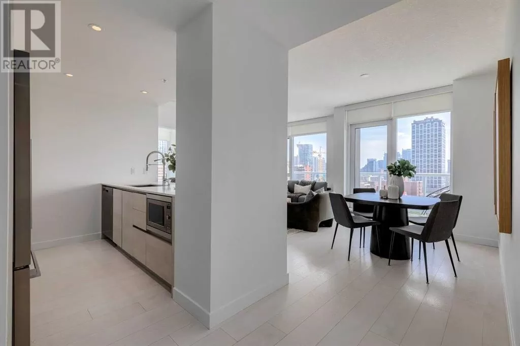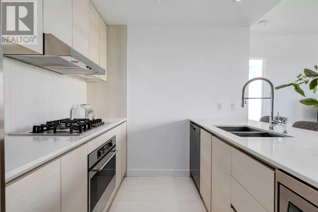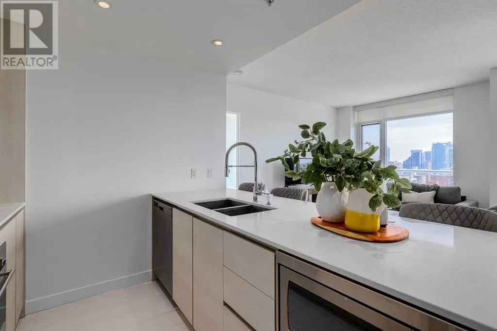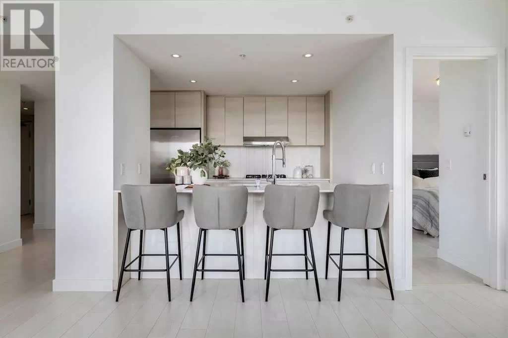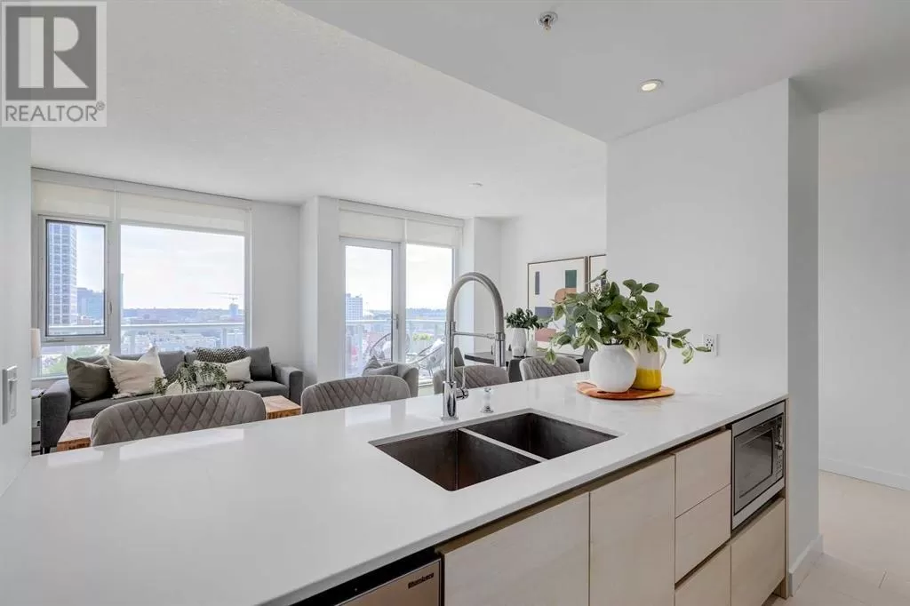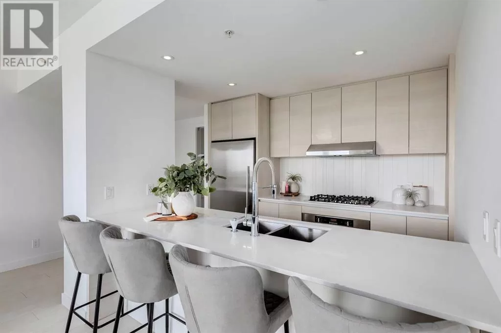 Welcome to effortless inner-city living at The Smith! This beautifully upgraded 2 bed, 2 bath condo offers an ideal layout for both daily living and entertaining, with gorgeous downtown views from nearly every room. Unlike most in the building, this unit features laminate flooring throughout â no carpet in sight â adding a modern and seamless feel to the space. The sleek, contemporary kitchen includes quartz countertops, flat-panel cabinetry, a gas cooktop, built-in oven, and stainless steel appliances, opening to a spacious living and dining area thatâs perfect for hosting or relaxing after a busy day. Enjoy your morning coffee on the balcony while watching the city wake up, and take advantage of all the extras The Smith has to offer: concierge service, bike share program, ownerâs lounge, secure bike storage, titled underground parking, and pet-friendly policies (2 pets max weighing no more than 25kg). With 17th Avenue just around the corner, youâre steps from Calgaryâs top restaurants as well as parks, boutiques, and transit options. Urban convenience meets elevated design in this Beltline gem. (id:27476)