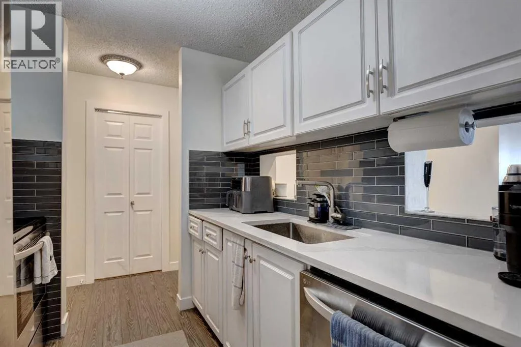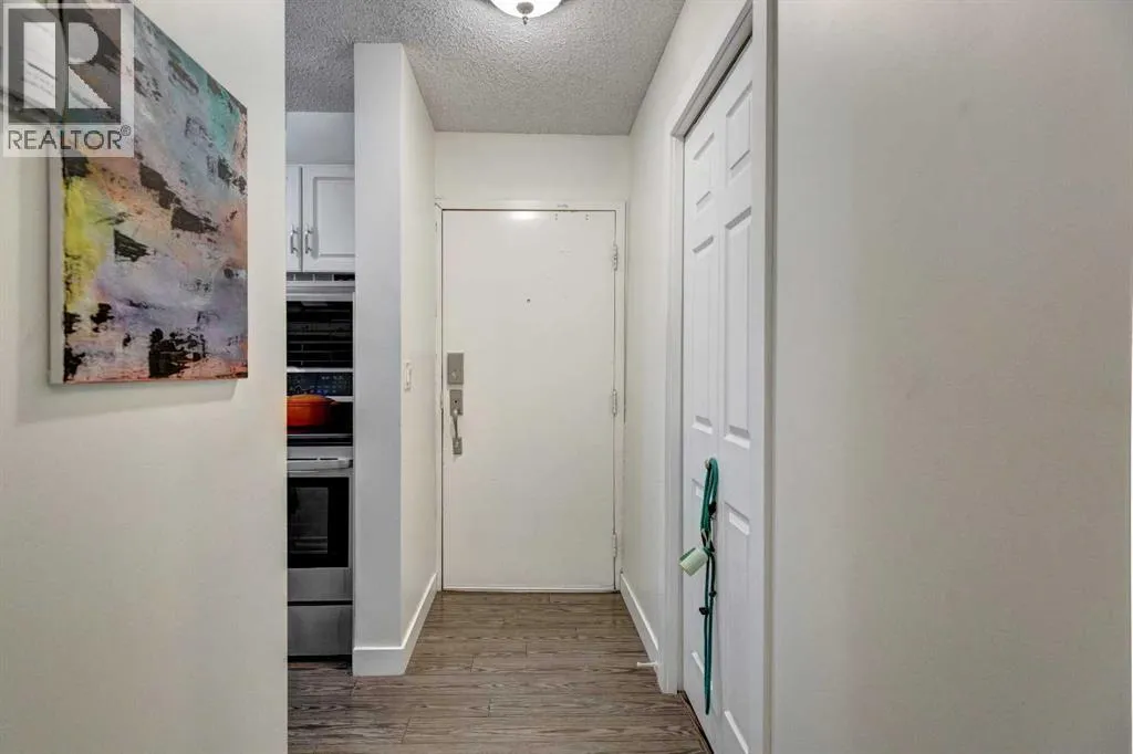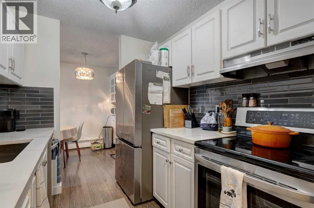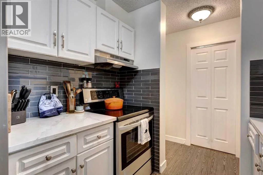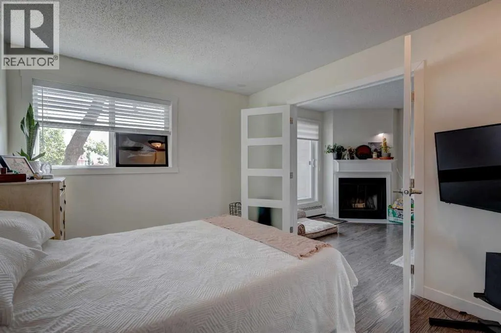 Ready to Move in Today? !Welcome to Patterson â Where Convenience Meets Comfort!RARE PET FRIENDLY; NO RESTRICTIONS(pet registration), RENOVATED ,EAST FACING, NICE VIEW,ABOVE GROUND MAIN FLOOR END UNIT, WELL MANAGED BUILDING,what else could you request?. Located in the highly desirable SW community of Patterson, this STYLISHLY renovated 2-bedroom, 1 bath, ground-level corner end unit offers low-maintenance living just minutes from downtown and the mountains. Featuring vinyl plank floors, updated appliances, quartz countertops, and freshly painted. This condominium combines modern finishes with rare touches like a cozy wood-burning fireplace. Enjoy in-suite laundry & storage, a private patio with parking directly in front. Condominium fees include heat, water & sewer for added value. There is a proactive and financially sound condo board. Set on a quiet street with lovely views, this unit offers easy access to transit, shopping, restaurants, walking/bike paths, and major routes including Stoney Trail. With a large primary closet and exceptional location, this is your chance to stop renting and start owning! (id:27476)