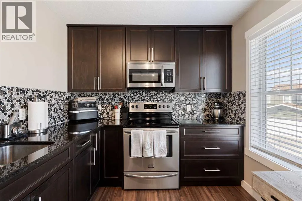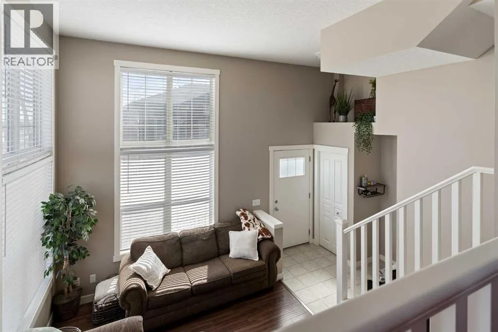 Don't miss the NEW PRICE for this Double WIDE Attached-Garage 3-Level Townhome for $405k - OPEN HOUSE Saturday November 15, 2025 12:00pm to 4:00pm. SEE Floor Plans, and 3D iGuide Virtual Tour. END UNIT, ONE NEIGHBOUR, and open around 3 sides by pathways. Quiet private patio under community fence. 199 Cranford Walk SE is right by single family alley's additional parking. The 3-level-split plan is vaulted, with HUGE windows, beside the tiled Foyer Entry (with closet). Up half a flight is Dining and Kitchen, with fridge, pantry and desk/coffee area, across from the wrapped cabinets with space for island and a raised eating bar. Granite counters, glass top range, microwave hood and dishwasher are stainless steel, and the decor is contemporary dark cabinets with snazzy tile-work. This gorgeous 1235 square foot home includes plank and tile floors. Upstairs, double Primary Bedrooms, each has Ensuite with Granite vanities, a walk-in shower or tub/shower unit, large Walk-in Closets with added shelving. Wide Loft-landing can be used for Laundry or reading. BONUS: Lowest level has storage under the stairs AND a full Games Room, partly developed with drywall. Furnace was recently serviced, Hot Water Tank is 60GAL. Enjoy BBQ year round on the concrete patio. Harvest Mosaic in Cranston SAVES owners money - solar panels, micro inverters, motion security lights at the low-maintenance pathways, high end siding, masonry, iron railings, and tiered-pathways between unit blocks, give privacy and chalet curb appeal. Don't wait to experience 199 Cranford Walk SE today - agents can see documents immediately. (id:27476)