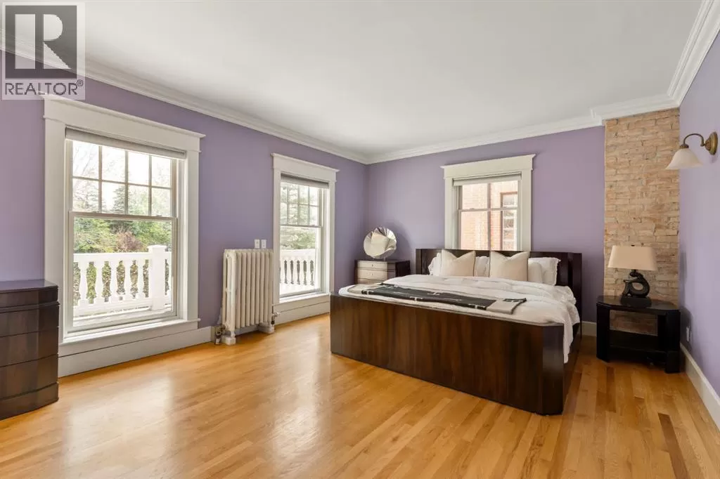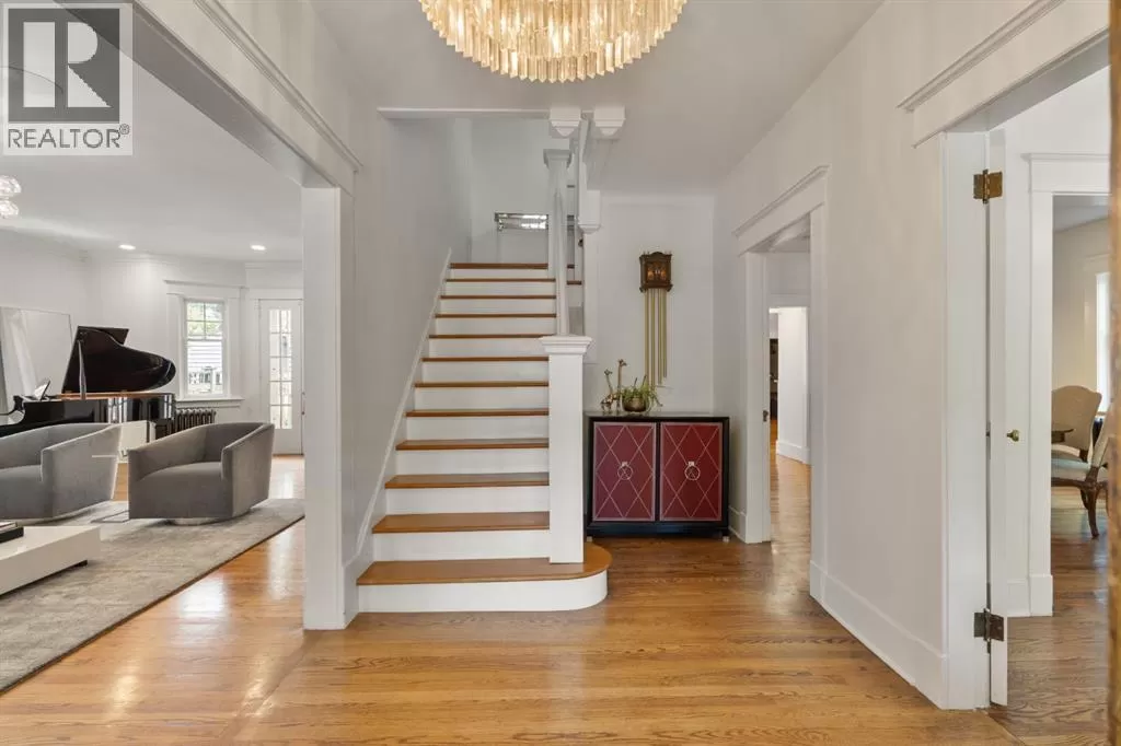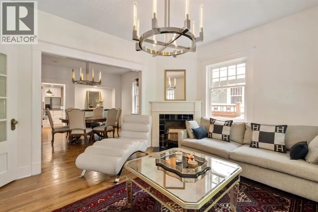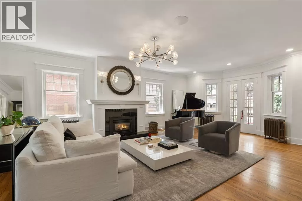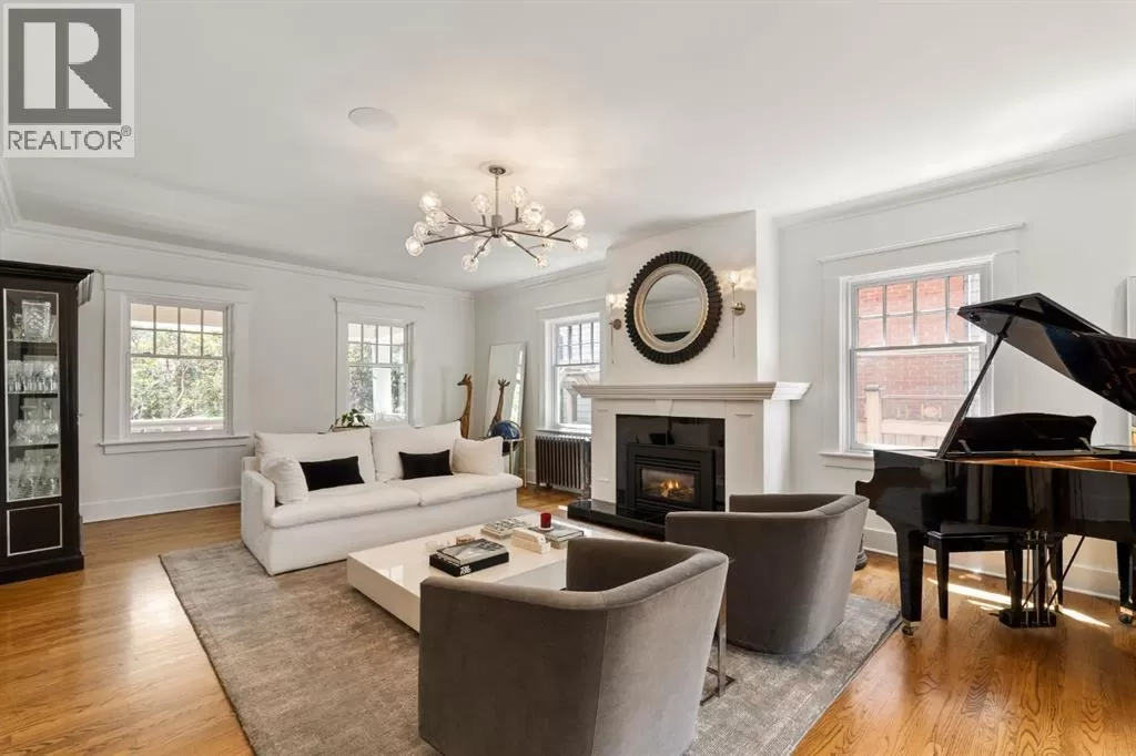 Introducing the Campbell Residence â A Rare Offering in the Heart of Elbow Park! Built in 1912, The Campbell Residence is a beautifully restored example of Georgian Revival-style architecture in Calgary. Situated on a 60' x 126' lot across from the Elbow River and surrounded by mature trees and lush landscaping, this 4,250 sq.ft. red-brick estate blends timeless architectural charm with modern functionality for contemporary living. Its dignified exteriorâdefined by formal symmetry, quality pressed brick, and a full-width veranda with classical balustradesârecalls the grace of substantial American colonial homes. But step inside, and youâll find a residence that has been thoughtfully and extensively restored to todayâs standards while preserving its historic soul. This home also has a storied past. Joseph Campbell acquired the lot in 1911, and in the decades that followed, it was occupied by several notable Calgarians, including Percy Carson, Mrs. Adelaide E. Parker, and Mrs. W.A. Stevens. From 1924 to 1927, it was the residence of John Burns, and nephew of Senator Patrick Burns. From 1929 to 1957, the home was owned by industrialist Frederick L. Irving and his familyâmarking over four decades of prominence in Calgaryâs social and business history. Inside, expansive principal rooms offer exceptional flow for everyday living and elegant entertaining. The formal living room features original millwork, a fireplace, and French doors that open to a private southwest-facing patio with an outdoor fireplace. The formal dining room is ideal for hosting, while a cozy family room with its own fireplace provides a relaxed retreat. The beautifully updated kitchen pairs heritage style with high-end functionalityâfeaturing classic white cabinetry, a generous walk-in pantry, top-tier appliances, a hearth-style sitting area with fireplace, and heated floors. The upper floors include four bedroomsâthree with ensuitesâhighlighted by a luxurious primary suite with a 5-piece ensuite and a spacious laundry room. The third floor offers flexible space for a gym or quiet retreat, complete with a large bedroom and full bathroomâideal for teens, guests, or a live-in nanny. A den or home office completes this versatile level. Modern upgrades are seamlessly integrated throughout, including new electrical and plumbing systems, built-in Sonos surround speakers, Nest thermostats, and secure electronic entry and car gatesâall enhancing daily comfort. The lower level is currently undeveloped but includes full architectural plans, offering the opportunity to tailor additional living space to your needs. A triple heated attached garage with an oversized door also includes a lofted bonus spaceâperfect for a gym, art studio, or music retreat. Enjoy a walkable lifestyle just steps to top schools, parks, river pathways, the Glencoe Club, and the shops and restaurants of 4th Street. With its rich history, modern upgrades and unbeatable location, The Campbell Residence is a true legacy home. (id:27476)