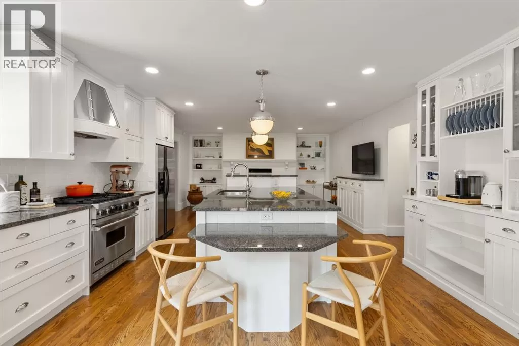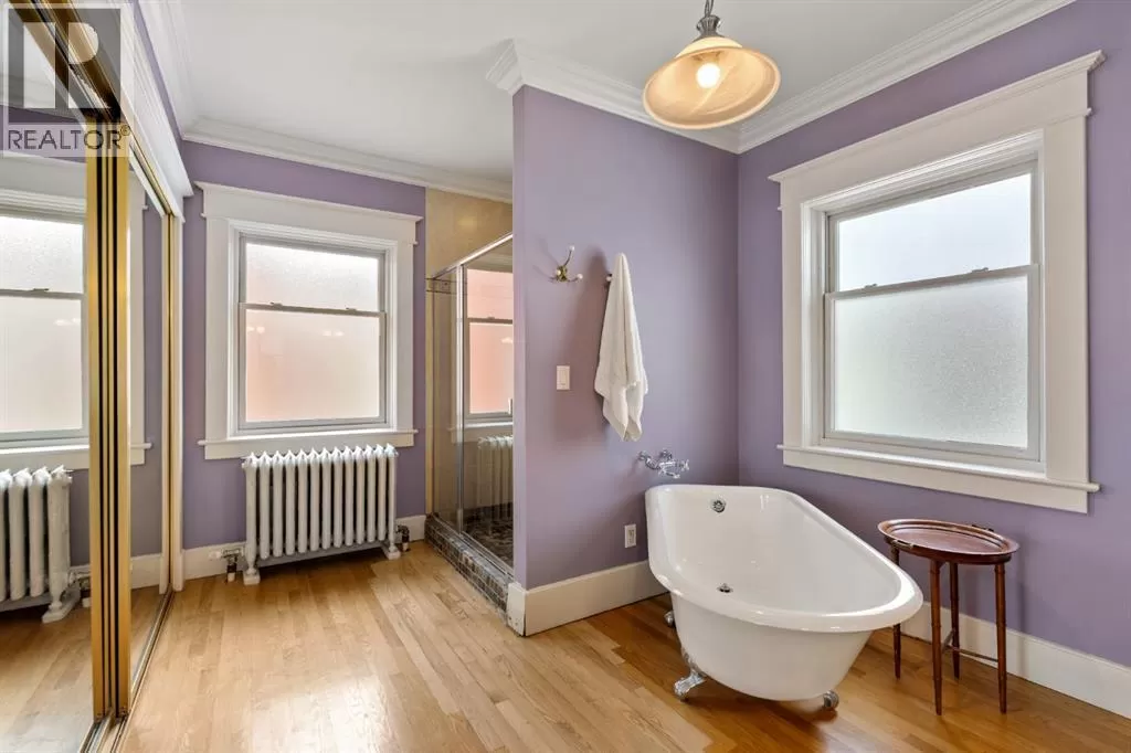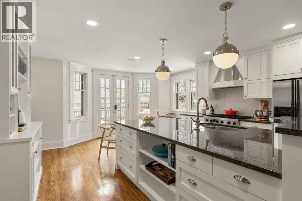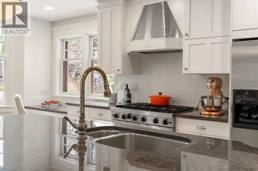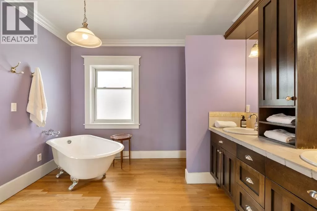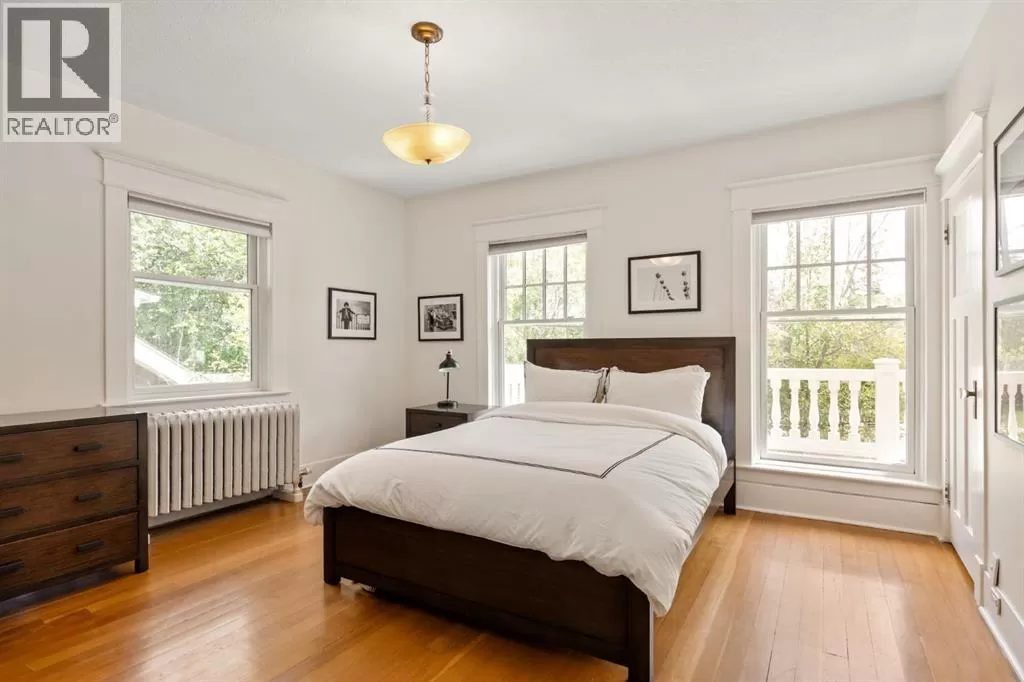 Introducing the Campbell Residence â A Rare Offering in the Heart of Elbow Park! Built in 1912, The Campbell Residence is a beautifully restored example of Georgian Revival-style architecture in Calgary. Situated on a 60' x 126' lot across from the Elbow River and surrounded by mature trees and lush landscaping, this 4,250 sq.ft. red-brick estate blends timeless architectural charm with modern functionality for contemporary living. Its dignified exteriorâdefined by formal symmetry, quality pressed brick, and a full-width veranda with classical balustradesârecalls the grace of substantial American colonial homes. But step inside, and youâll find a residence that has been thoughtfully and extensively restored to todayâs standards while preserving its historic soul. This home also has a storied past. Joseph Campbell acquired the lot in 1911, and in the decades that followed, it was occupied by several notable Calgarians, including Percy Carson, Mrs. Adelaide E. Parker, and Mrs. W.A. Stevens. From 1924 to 1927, it was the residence of John Burns, and nephew of Senator Patrick Burns. From 1929 to 1957, the home was owned by industrialist Frederick L. Irving and his familyâmarking over four decades of prominence in Calgaryâs social and business history. Inside, expansive principal rooms offer exceptional flow for everyday living and elegant entertaining. The formal living room features original millwork, a fireplace, and French doors that open to a private southwest-facing patio with an outdoor fireplace. The formal dining room is ideal for hosting, while a cozy family room with its own fireplace provides a relaxed retreat. The beautifully updated kitchen pairs heritage style with high-end functionalityâfeaturing classic white cabinetry, a generous walk-in pantry, top-tier appliances, a hearth-style sitting area with fireplace, and heated floors. The upper floors include four bedroomsâthree with ensuitesâhighlighted by a luxurious primary suite with a 5-piece ensuite and a spacious laundry room. The third floor offers flexible space for a gym or quiet retreat, complete with a large bedroom and full bathroomâideal for teens, guests, or a live-in nanny. A den or home office completes this versatile level. Modern upgrades are seamlessly integrated throughout, including new electrical and plumbing systems, built-in Sonos surround speakers, Nest thermostats, and secure electronic entry and car gatesâall enhancing daily comfort. The lower level is currently undeveloped but includes full architectural plans, offering the opportunity to tailor additional living space to your needs. A triple heated attached garage with an oversized door also includes a lofted bonus spaceâperfect for a gym, art studio, or music retreat. Enjoy a walkable lifestyle just steps to top schools, parks, river pathways, the Glencoe Club, and the shops and restaurants of 4th Street. With its rich history, modern upgrades and unbeatable location, The Campbell Residence is a true legacy home. (id:27476)