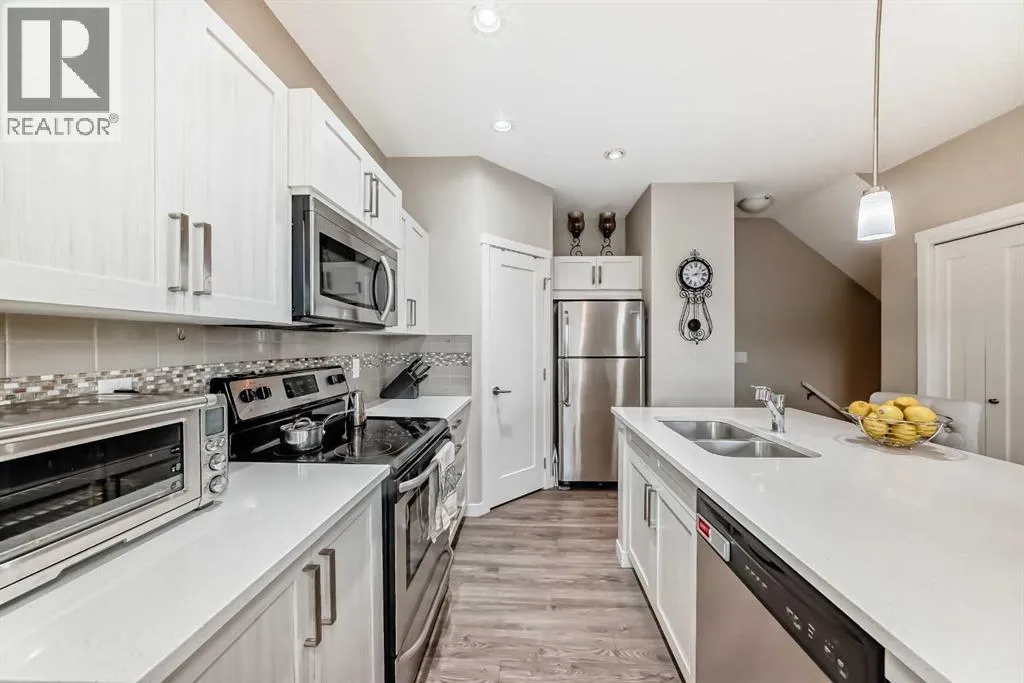 ( OPEN HOUSE Saturday Nov 15th, 1:00 to 3:30 PM ) The DEAL in Nolan Hill .... Stylish and Modern Townhouse Condo in the Heart of Nolan Hill. Welcome to this exceptional two-bedroom, 2.5-bathroom townhouse condo nestled in the quiet NW community of Nolan Hill. This beautifully designed home offers the perfect blend of contemporary comfort and everyday convenience, making it ideal for professionals, small families, or savvy investors. Enter this home from your attached garage or the front entry and make your way up to the bright and open main floor featuring durable vinyl plank flooring and soaring ceilings that enhance the sense of space and light. The thoughtfully designed kitchen is a modern chefâs dream, complete with quartz countertops, stainless steel appliances, and a corner pantry that provides ample storage. Whether you're cooking a casual meal or entertaining guests, this kitchen is built to impress. The living and dining areas flow seamlessly onto the spacious south-facing balcony (10.5' x 10.5'), offering a sunny spot for morning coffee or evening relaxation. & DOESN'T STARE INTO YOUR NEIGHBOURS BALCONY. A convenient two-piece powder room rounds out the main level. Upstairs, both bedrooms are generously sized with plush carpet and each features a private four-piece ensuite bathroom and walk-in closetâan ideal layout for roommates, guests, or growing families. With dual primary suites, privacy and comfort are never compromised. The single-car finished garage provides secure parking and additional storage, while the lower level utility room is equipped with a high-efficiency furnace and hot water tank, keeping your home comfortable and energy efficient year-round. Located just minutes from major shopping centers, schools, walking paths, and public transit, this pet-friendly complex delivers on location and lifestyle. And for those looking for a move-in-ready option, furniture is available and negotiable. This Nolan Hill gem checks all the boxesâstyle, sp ace, and smart design in one of Calgaryâs most vibrant and growing communities. Donât miss your chance to call this townhouse home! (id:27476)