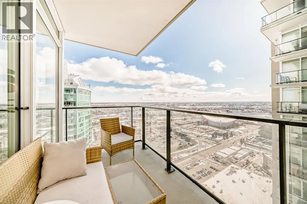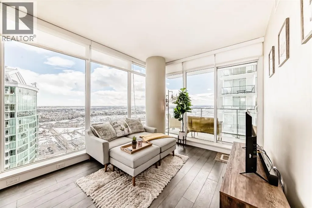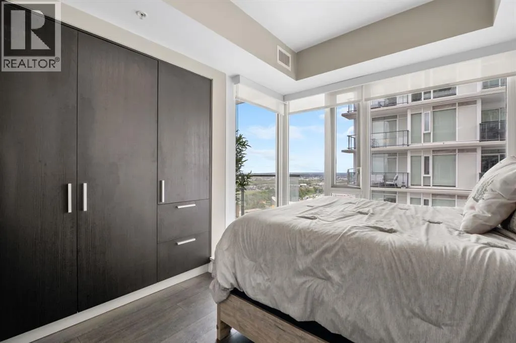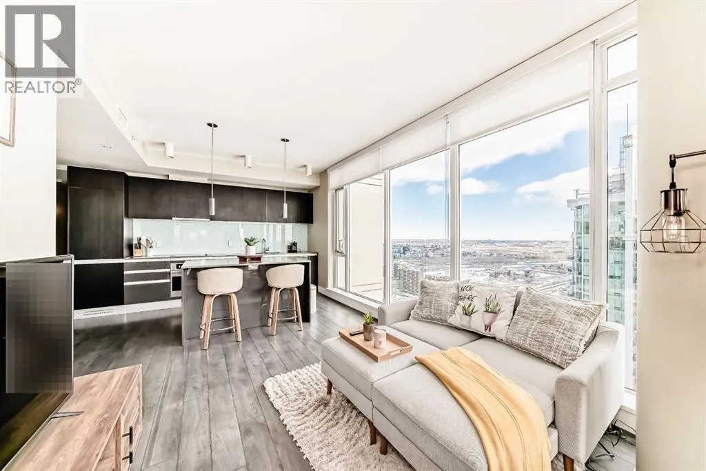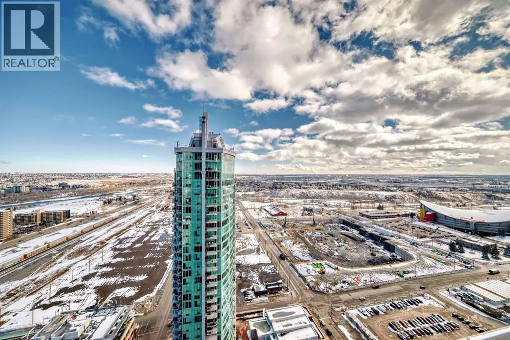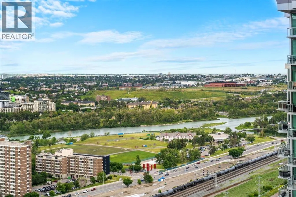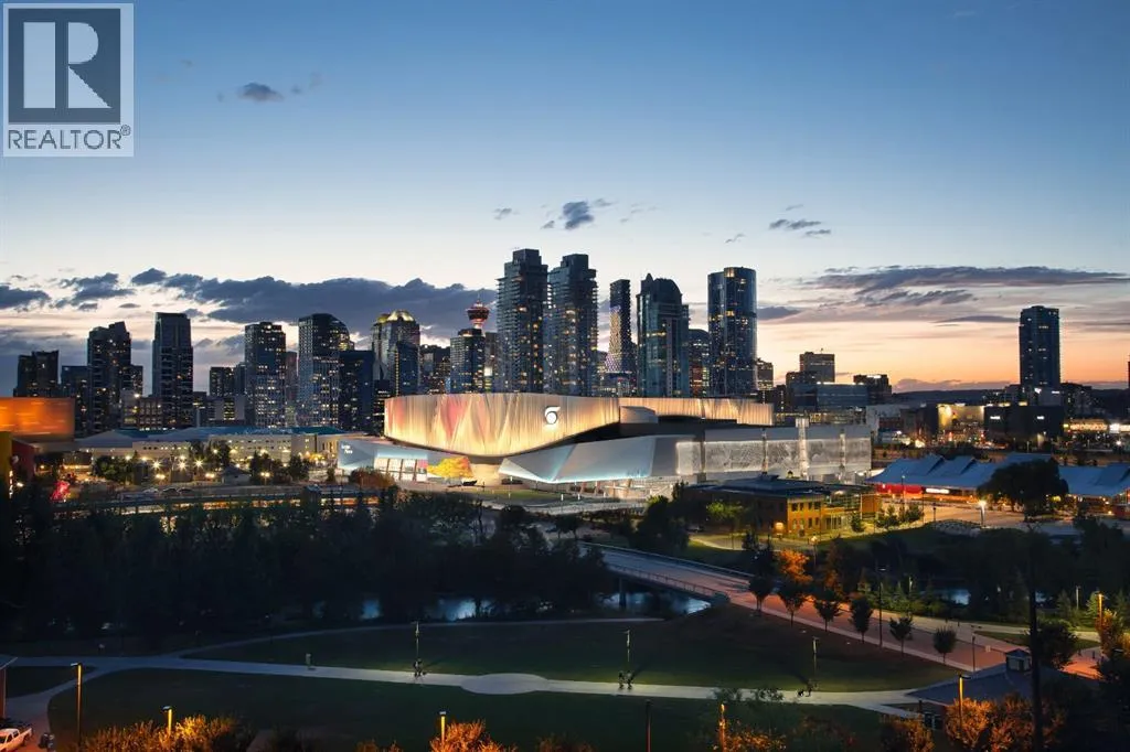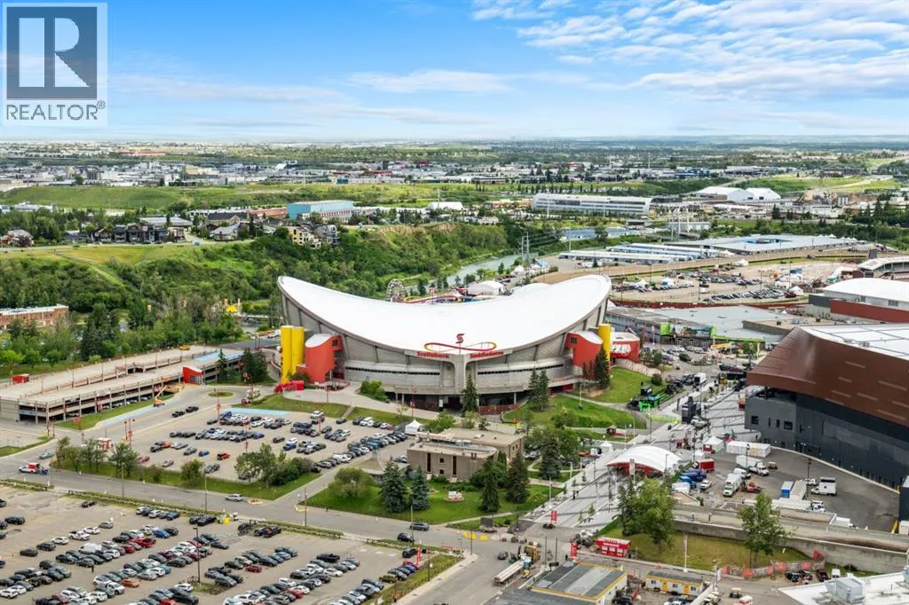 *First 3 months of condo fees covered by seller!* Welcome to this exquisite 33rd-floor corner unit with two balconies offering breathtaking views! To the east, you'll enjoy stunning river views, and to the south, you'll be treated to picturesque vistas of the Stampede Grounds, Saddledome and the new site of Scotia Place. On a clear day, you'll have Mountain views as well! This unit, located in the Guardian I, features a well-thought-out layout with two bedrooms strategically placed for privacy, along with two full bathrooms. The gourmet kitchen features a spacious island with beautiful quartz countertops and a convenient breakfast bar. High-end stainless steel appliances, sleek modern cabinetry complete the stylish aesthetic of the kitchen. Additionally, the unit is equipped with in-suite laundry for added convenience. The living room and open-concept kitchen/dining area are enveloped by floor-to-ceiling windows, immersing the space in natural light and providing captivating views of the surroundings. This unit also offers titled underground parking for your vehicle, as well as a separate storage locker to accommodate your belongings. The presence of a dedicated concierge ensures a high level of convenience and security for residents. The Guardian I provides an array of exceptional amenities for its residents to enjoy. The social lounge is perfect for entertaining guests or mingling with neighbors, while the garden terrace offers a serene outdoor space to relax and unwind. For fitness enthusiasts, the gym has impressive city views and loads of equipment, so convenient to enjoy before or after work. There is also a workshop equipped with a workbench and hand tools for those who enjoy hands-on projects and craftsmanship. Enjoy this trendy neighborhood, which offers a host of attractions just steps away from your doorstep. You'll find yourself in close proximity to the iconic Saddledome, Stampede Park, the National Music Centre, Sunterra Market, and the stunning Cent ral Library. With an abundance of entertainment options, dining experiences, and convenient amenities, this neighborhood is the epitome of vibrant and convenient urban living. (id:27476)