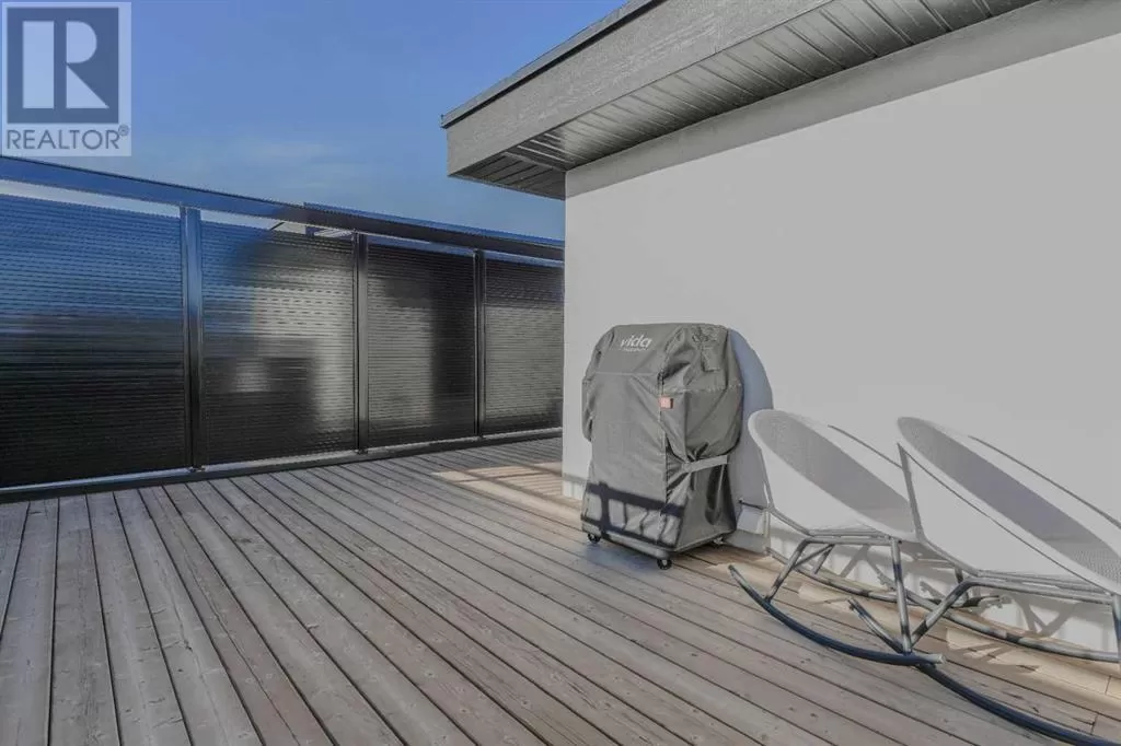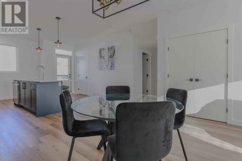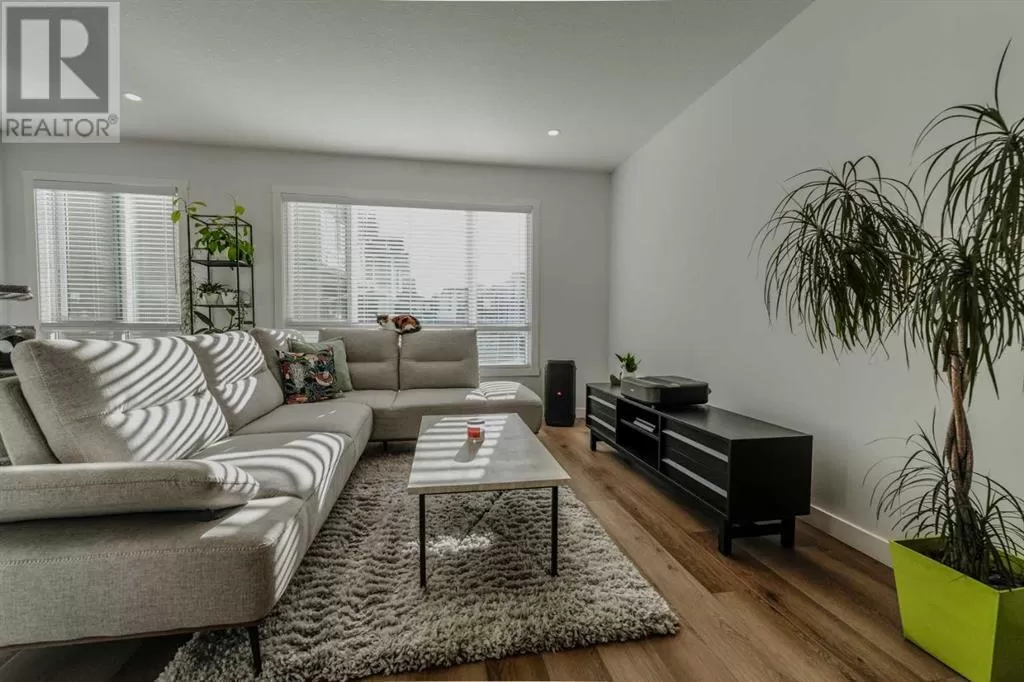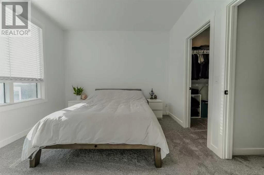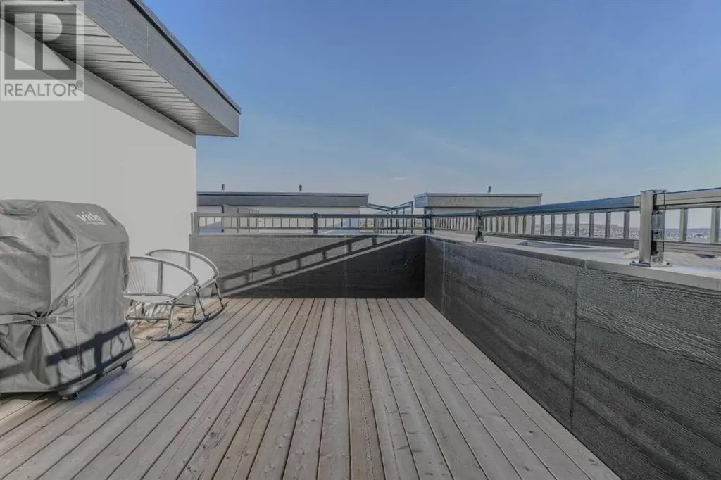 PRICE IMPROVED! Welcome home. Largest unit in the complex. 9-ft ceilings on every floor, large windows that let in ample sunlight, and a rooftop patio, this townhouse is as stunning as it is luxurious. The main floor provides open-concept living space and a kitchen with loads of cabinet space, a large quartz island that comfortably sits four, a walk-in pantry, high end appliances, and custom lighting. Also on the main floor is a dining area and a bright living room with plenty of space to get creative with your home decor. Upstairs, enter the large primary bedroom and its walk-in closet and ensuite with dual sinks and floor-to-ceiling tiled shower. Two additional bedrooms, another full bathroom, and a laundry area complete the upper floor. Heading up to your rooftop patio, you can use the landing in the summer to keep your supply of beverages cool or as a place to store outdoor furniture in the winter. Enjoy the privacy and fresh air, soak up the sunshine, host a BBQ, or just relax in tranquility. The ground floor entry has a full bathroom that is attached to a den, perfect for an office, gym or even a guest room. The attached DOUBLE GARAGE has been upgraded with epoxy flooring and you can comfortably fit another four vehicles on the 40-ft driveway. Plenty of amenities are within walking distance, including shops, restaurants, a daycare, and a brand new medical building. Book your private showing today so you can get a feel for what your life would be like in the growing community of Sage Hills. (id:27476)
