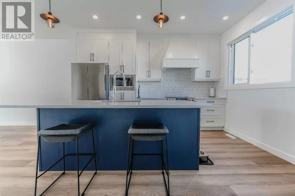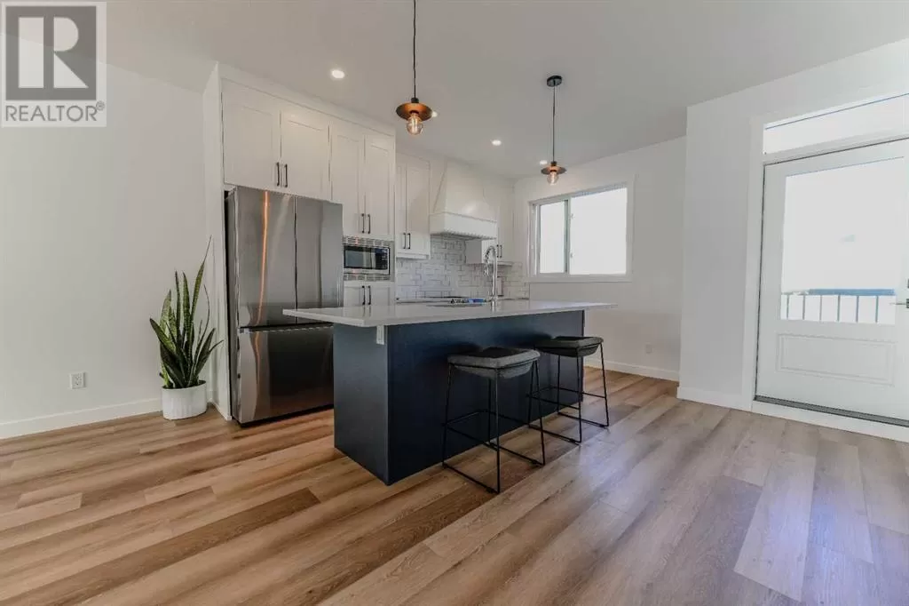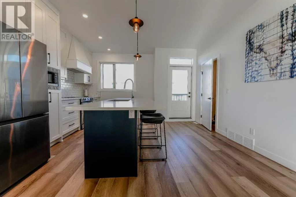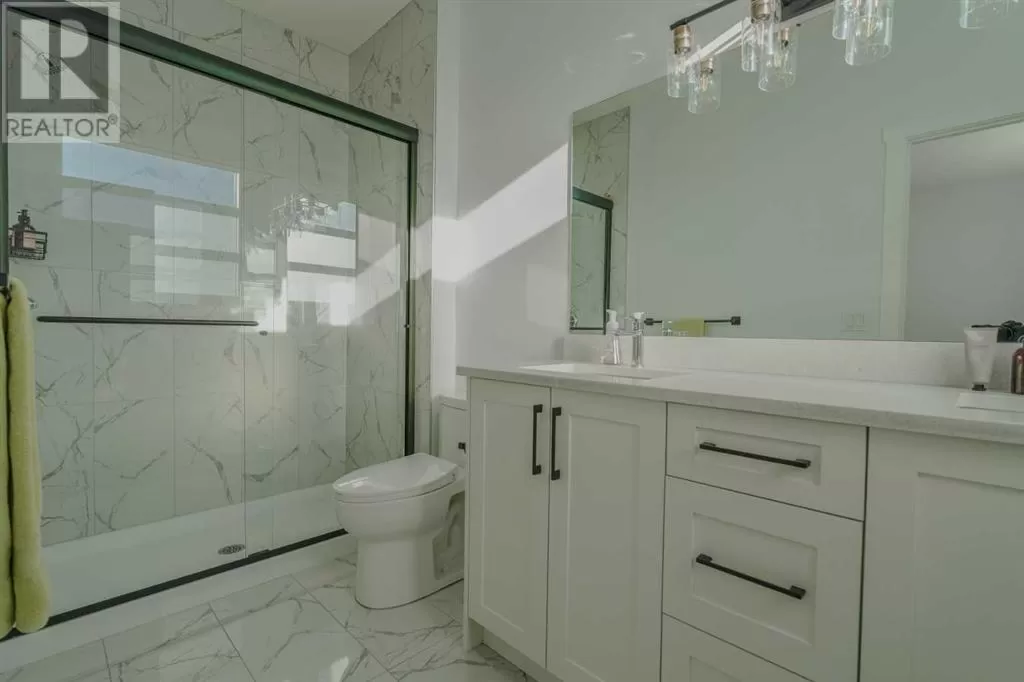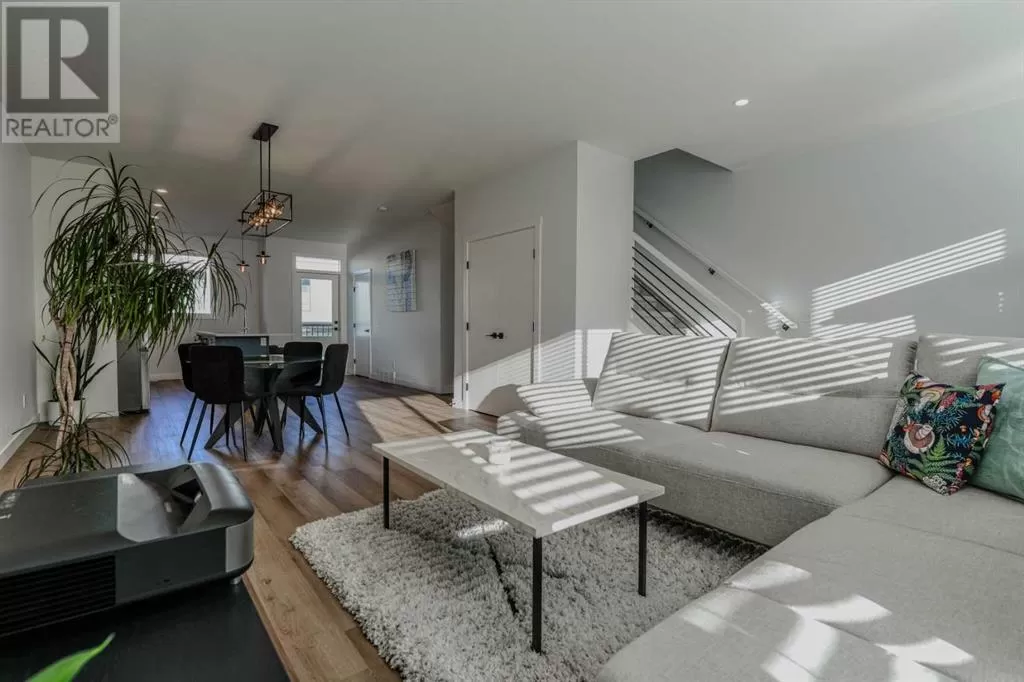 PRICE IMPROVED! Welcome home. Largest unit in the complex. 9-ft ceilings on every floor, large windows that let in ample sunlight, and a rooftop patio, this townhouse is as stunning as it is luxurious. The main floor provides open-concept living space and a kitchen with loads of cabinet space, a large quartz island that comfortably sits four, a walk-in pantry, high end appliances, and custom lighting. Also on the main floor is a dining area and a bright living room with plenty of space to get creative with your home decor. Upstairs, enter the large primary bedroom and its walk-in closet and ensuite with dual sinks and floor-to-ceiling tiled shower. Two additional bedrooms, another full bathroom, and a laundry area complete the upper floor. Heading up to your rooftop patio, you can use the landing in the summer to keep your supply of beverages cool or as a place to store outdoor furniture in the winter. Enjoy the privacy and fresh air, soak up the sunshine, host a BBQ, or just relax in tranquility. The ground floor entry has a full bathroom that is attached to a den, perfect for an office, gym or even a guest room. The attached DOUBLE GARAGE has been upgraded with epoxy flooring and you can comfortably fit another four vehicles on the 40-ft driveway. Plenty of amenities are within walking distance, including shops, restaurants, a daycare, and a brand new medical building. Book your private showing today so you can get a feel for what your life would be like in the growing community of Sage Hills. (id:27476)