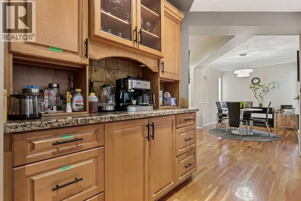 Welcome to 7 Spring View SW â the perfect family home nestled on a quiet street in sought-after Springbank Hill. Just steps from a neighborhood park, this spacious 4-bedroom, 4-bathroom home offers nearly 2,000 sq. ft. above grade, plus a bright, fully finished basement designed with both comfort and functionality in mind. The main floor features gleaming hardwood floors, a large living room with a cozy gas fireplace, and a bright, open-concept kitchen equipped with granite countertops, stainless steel appliances, a corner pantry, and direct access to the sunny, west-facing backyard. A formal dining room, breakfast nook, 2-piece powder room, and convenient main-floor laundry complete the level. A few steps up, the expansive bonus room offers the ideal space for movie nights, a play area, or a home office. Upstairs, the primary suite is a true retreat with a generous walk-in closet and a luxurious 5-piece ensuite. Two additional bedrooms and a full bathroom with granite counters complete the upper floor. The fully developed basement adds even more living space with a large rec room, fourth bedroom, and a 3-piece bathroomâperfect for guests or teens. Step outside to a low-maintenance backyard oasis featuring a two-tiered deck with gas BBQ hook-up, stone patio, and built-in natural gas firepitâideal for summer entertaining. With proximity to parks, playgrounds, top-rated schools, Westside Rec Centre, Westhills shopping, and the C-Train, this home checks all the boxes for location, layout, and lifestyle. Donât miss your opportunityâbook your private showing today! (id:27476)