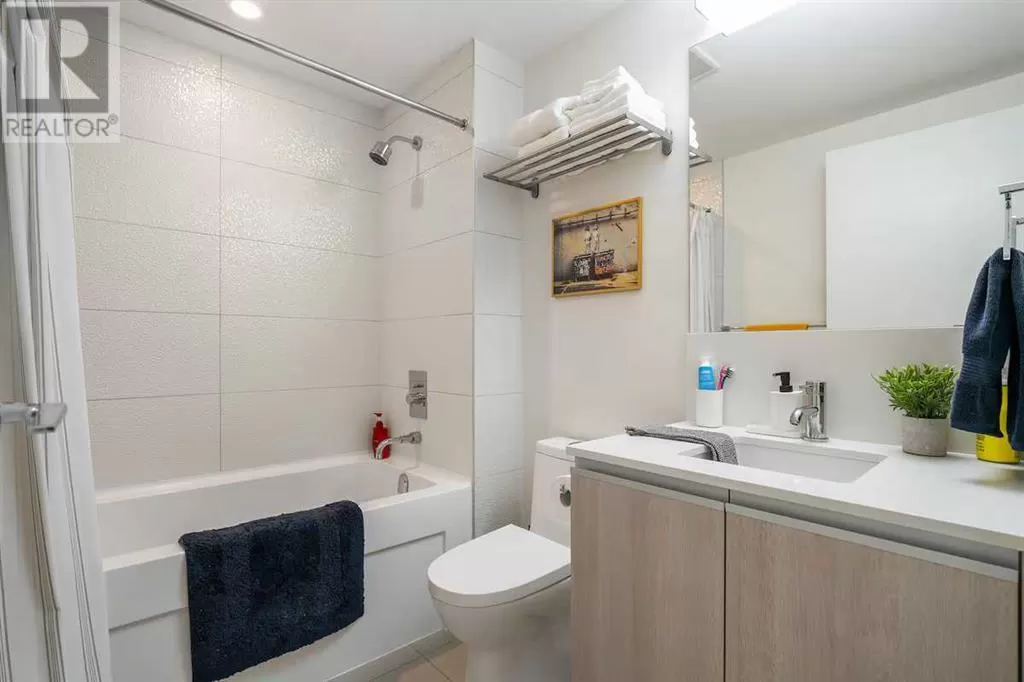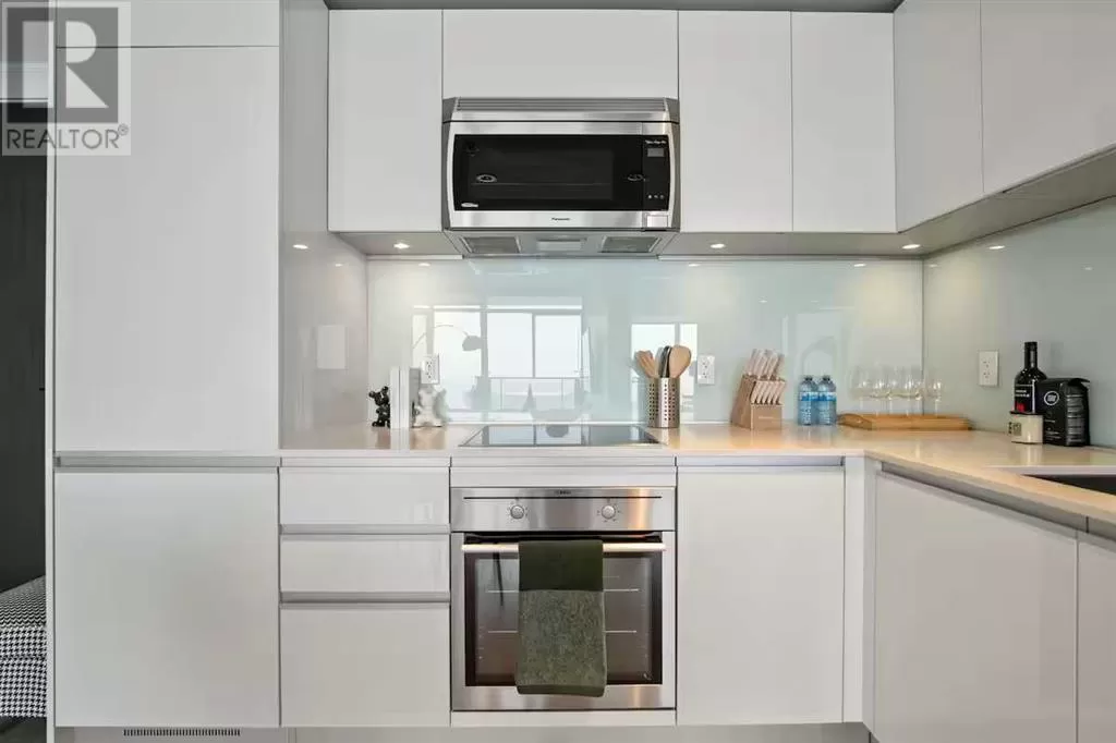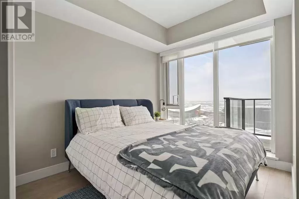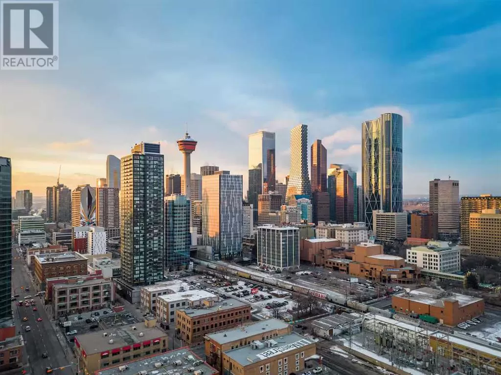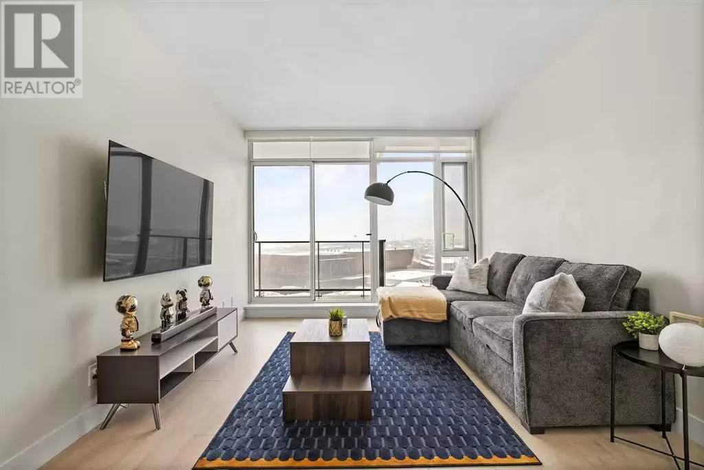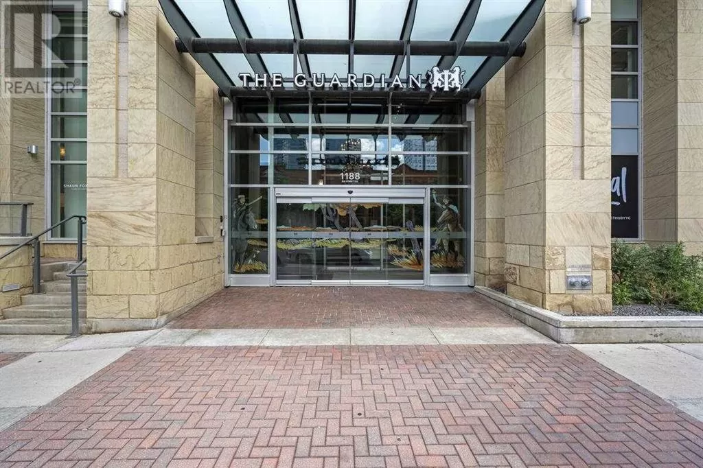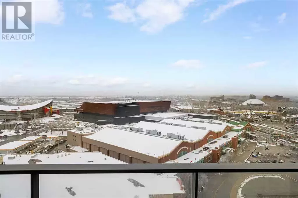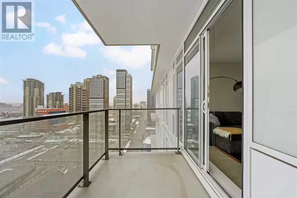 Experience vibrant downtown living in this stylish 1-bedroom condo perched on the 17th floor of The Guardian South, one of Calgaryâs tallest residential towers. Bathed in natural light from expansive floor-to-ceiling windows, this thoughtfully designed unit offers sweeping city vistas, a sleek European-style kitchen with integrated appliances and quartz countertops, and a spa-inspired bathroom with premium finishes. Step out onto your private balcony to take in iconic views of the Saddledome and Stampede Park. Enjoy modern comforts like in-suite laundry, central A/C, titled parking, and a storage locker, along with access to premium amenities including a fitness centre, yoga studio, workshop, social lounge, outdoor terrace, and 24-hour concierge. Ideally located just steps from the C-train, East Village, Sunterra Market, and the best of Calgaryâs dining and entertainment, book your private showing today! (id:27476)