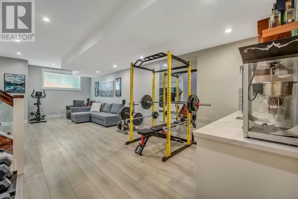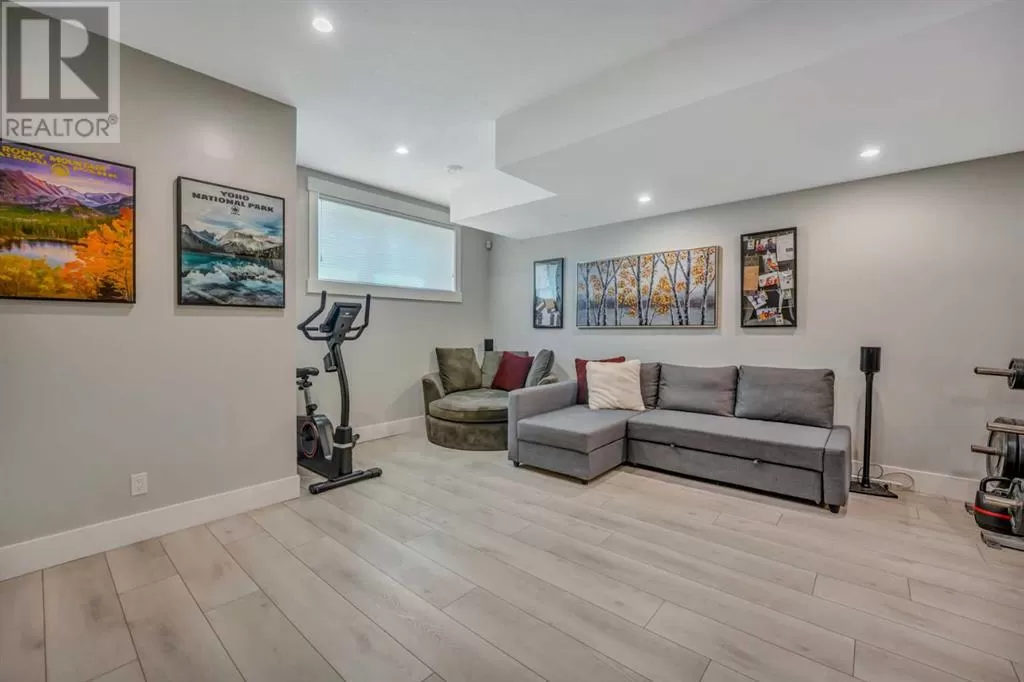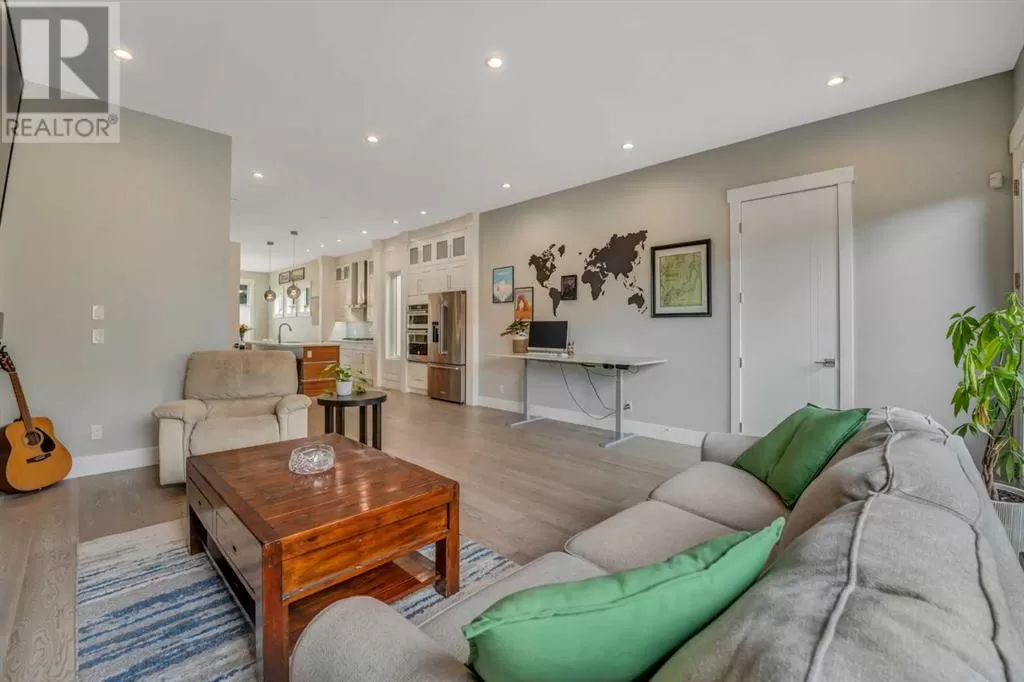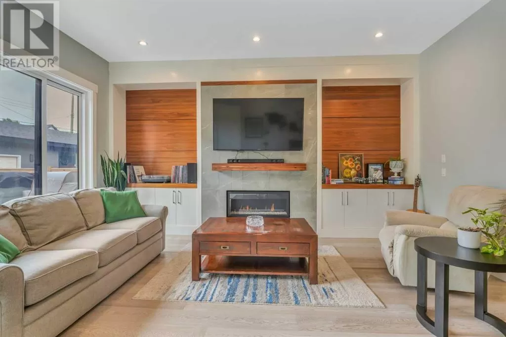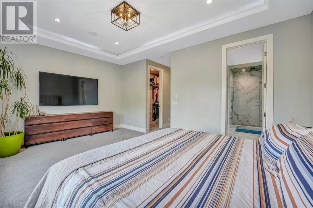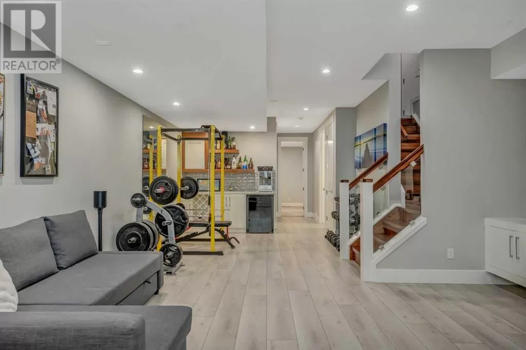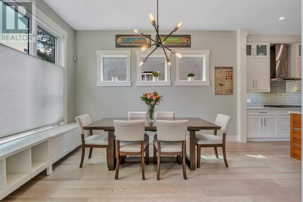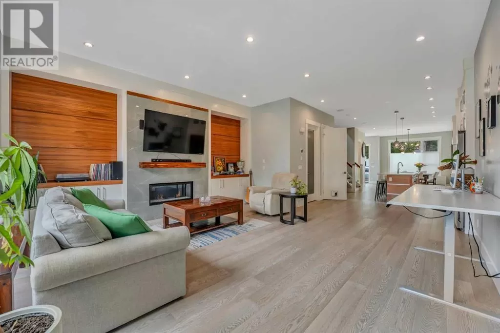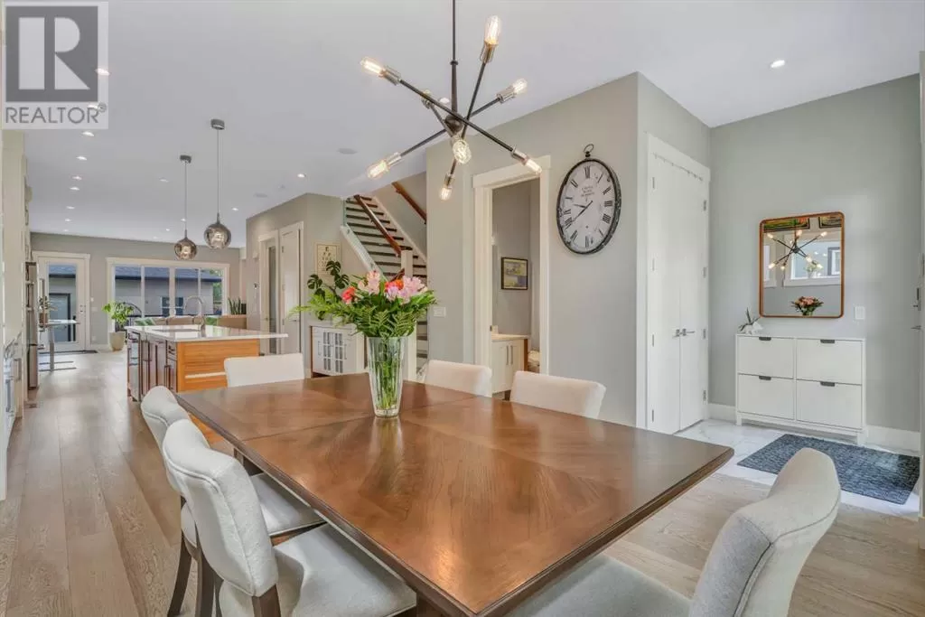 Welcome to 420 14 Avenue NE, an impeccably designed detached infill located on a quiet, tree-lined street in the heart of Renfrew, one of Calgaryâs most sought-after inner-city communities. Boasting 3,100 sqft of luxuriously finished living space, this beautifully appointed 4 bedroom, 3.5 bathroom home combines elegant finishes with functional family-friendly design. The main floor features soaring 10â ceilings, engineered hardwood flooring, custom lighting, and an open-concept layout ideal for entertaining. The chef-inspired kitchen is the centerpiece, complete with quartz countertops, a large island with eating bar, stainless steel appliances, walk-in pantry, and built-in buffet. A spacious living room showcases a floor-to-ceiling tile fireplace flanked by custom built-ins, and a formal dining area and tech center make daily life seamless.As you head upstairs youâll immediately notice the high vaulted ceilings, 8ft doors, and abundance of natural light. The primary bedroom feels less like a bedroom and more like a retreat. It is a true sanctuary, easily accommodating a king-sized bed and nightstands, plus a separate sitting area, recessed lighted ceiling, large walk-in closet with built-ins, and a spa-style 5-piece ensuite with dual sinks, jetted tub, and oversized 10mm glass shower (roughed-in for steam). Two additional bedrooms, an upper laundry room, plus an additional full bath round out the upper level with thoughtful efficiency. The fully developed basement offers 9â ceilings, a sprawling media/rec room with custom home theatre set up, wet bar, fourth bedroom, and a stylish 3-piece bathroom. The separate side entrance and wet bar layout create a fantastic opportunity for a future legal suite (subject to City approvals).Additional features include central air conditioning, glass-panelled staircase with wood accents, designer fixtures, built-in storage, and a double detached garage. Outside, the private backyard with deck offers a perfect spot to unwind. Situated just minutes to downtown Calgary and walking distance to Munro Park, Renfrew Athletic Park, top schools and beloved local gems like Boogieâs Burgers and Peterâs Drive-In. This is the perfect blend of upscale inner-city living and family comfort. (id:27476)