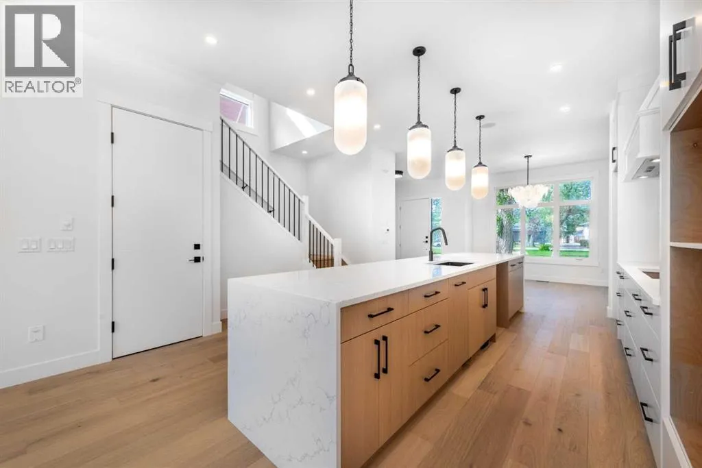 **Huge price drop for quick sale **Discover modern living at its finest in this beautifully designed home on a rare 30-foot-wide lot, featuring a sleek open-concept layout, legal basement suite, and upscale finishes throughout. With 10-foot ceilings, wide-plank hardwood floors, and striking architectural arches, the main level is both stylish and functional, complete with a chef-inspired kitchen boasting premium built-in appliances, a waterfall island, and designer wainscoting. The upper level offers a vaulted-ceiling primary retreat with a spa-like ensuite and walk-in closet, plus two spacious bedrooms, a chic four-piece bath, and convenient laundry. The fully equipped legal basement suiteâwith private entrance, separate laundry, and full kitchenâadds ultimate flexibility for rental income or multigenerational living. Finished with a 20x20 double garage, fenced yard with fresh sod, and quick access to major roads, downtown, and top parks, this is a rare opportunity to own a bold, contemporary home in a prime inner-city location. (id:27476)