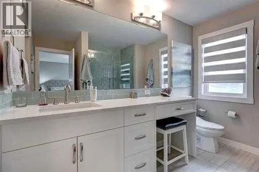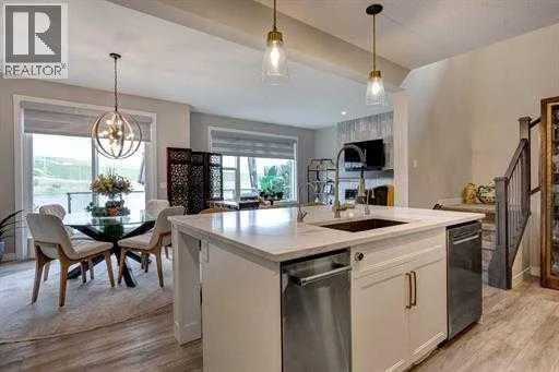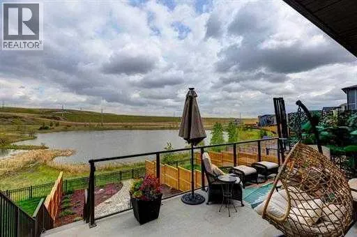 Riverstone has it all for you with this unique 2600+ finished sq ft living. One of the few that over look water, offering NGEO level nature viewing. So close to Bow River pathways! A Brookfield Rundle model with so many high end upgrades.The open style main living space has soaring 10' ceilings, 8' doors, and up-touches everywhere. Your kitchen has the full treatment custom package. Soft close reinforced drawers, luxury backsplash plus a widened and raised island of white quartz , Stainless steel appliances, a chimney hood fan, microwave and a gas top range. Accommodating your guests will be a pleasure , with its large living dining area .This main living area has wide view windows and a sliding door opening onto a full length widened deck with glass railings, of course. It overlooks the zen like professionally designed backyard and over the beautiful pond. All together, itâs a natural space all year round. The rear deck is the perfect place to soak up the sun with your morning coffee. Moving through and up the vaulted stairway, a large primary suite awaits with its 'wide sreen ' windows, overlooks the view and its gorgeous ensuite . Thereâs a fully tiled walk-in shower, a bidet, a wide quartz counter dressing area opening to a luxurious walk-in closet. Two more bedrooms ,one with another walk-in closet grace the upper level. thereâ also bonus area that easily makes space for work out or work /play .A 4pc bathroom & full laundry room complete the 2nd level. Your Walk out is a perfect NANNY or IN-LAW suite! Your flex family/living room could be a home gym/office or games area. It has a granite wet bar with cabinet, & up graded wiring for additional appliances. A washer dryer hook up in the storage area makes for even more possibilities & independent living! The large 4th bedroom /flexroom also has the beautiful view .A 4 pc bathroom with linen closet round out this walkout level . Sliding doors lead to the huge fully covered paving stone patio overlooking the ba ckyard & pond. This zen xeri-scaped yard has had 65K in custom designed professional landscaping, including a unique staircase from the deck that makes access to the beautiful yard & green space pond area so easy. Completing this home is an insulated double attached garage with custom wrap around deep & sturdy shelving for all of your extras. Plus, plus, youâve got RO system for extra filtered drinking water, trash compactor & hot tap on demand for those quick teas and specialty coffees... Yet Another bonus? yes, your 12 ft walk-in master closet with its own skylight!! Of course, youâll enjoy the central A/C to stay cool all summer long. this wonderful home has all of the things and more that you would have added yourself, but all done and move in ready!. Riverstone is well recognized as a natural wonder neighbourhood. - Note: Pond view homes are rare on the market. Get yours. (id:27476)