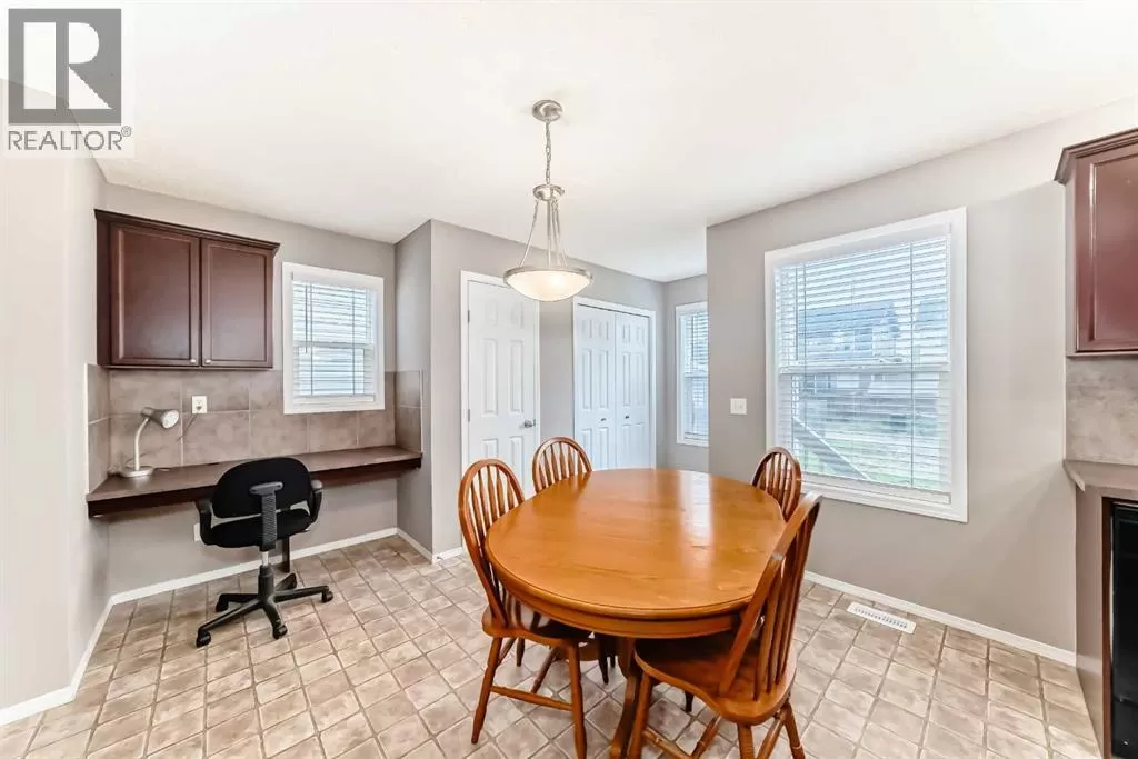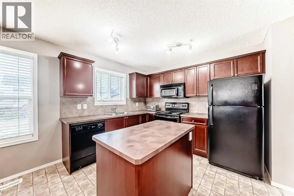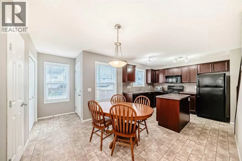 Tucked away on a quiet, family-friendly street, this beautifully maintained two-storey home offers exceptional comfort, thoughtful upgrades, and an ideal layout for growing families or first-time buyers alike. With 3 spacious bedrooms, 2.5 bath with over 1,400 square feet of well-designed living space, this home delivers both functionality and charm in one inviting package.Step into the welcoming living room, where large windows flood the space with natural light and a cozy fireplaceâframed by a rich cherry maple mantle and convenient TV nicheâsets the perfect ambiance for relaxing evenings. At the heart of the home, a centrally located maple staircase creates a stylish transition into the kitchen and dining area.The kitchen is a chefâs delight, featuring sleek black appliances, ample cherry maple cabinetry, a contemporary tile backsplash, and a functional center island ideal for meal prep and casual dining. Whether you're hosting guests or enjoying everyday meals, this space is designed for connection and convenience.Upstairs, the bright and spacious primary bedroom features extra windows, a large walk-in closet, and a private 3-piece ensuiteâoffering the perfect retreat after a long day. Two additional well-sized bedrooms and a full 4-piece bathroom complete the upper level.Located near schools, parks, shopping, and major commuter routes, this home offers easy access to everything your family needs. With great curb appeal and a welcoming interior, 135 Copperstone Grove SE is a home youâll be proud to call your own. (id:27476)