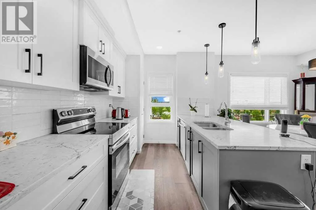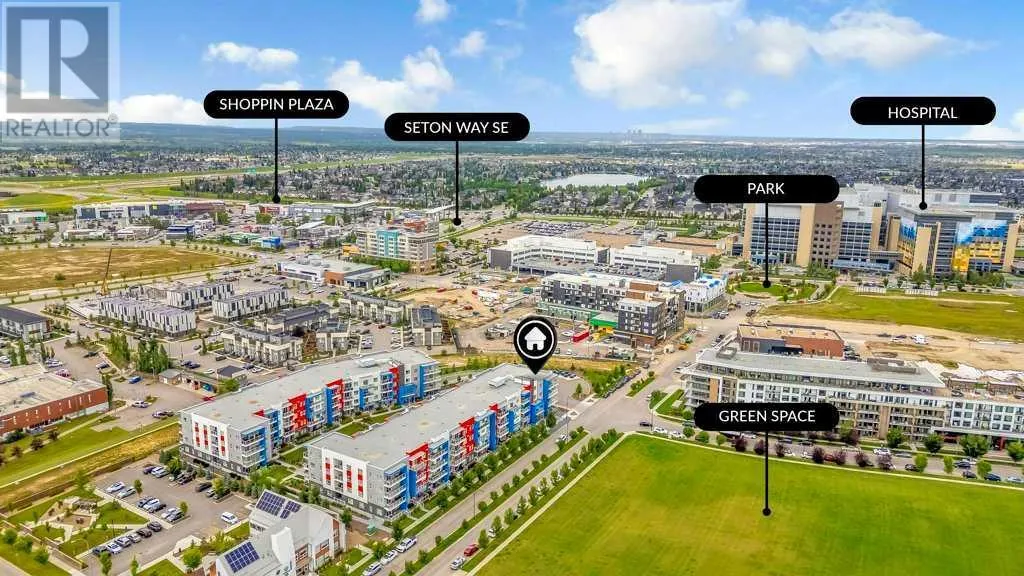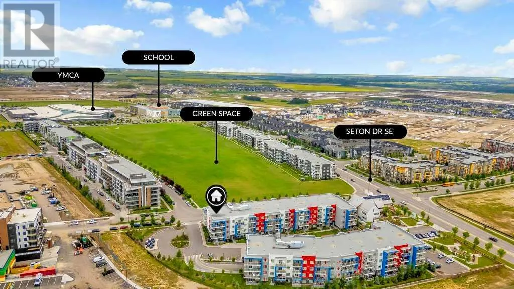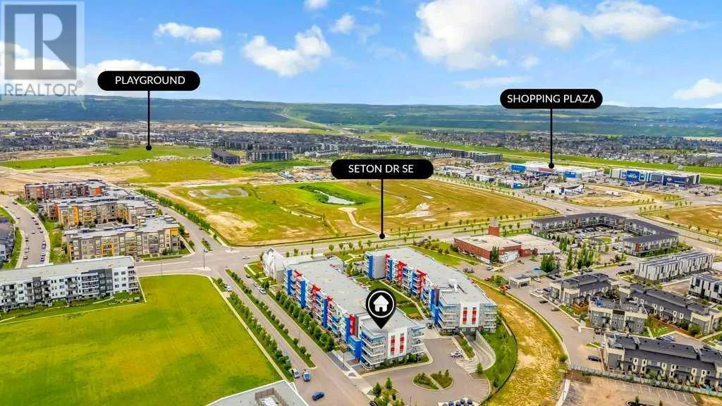 Welcome to this bright and spacious second-floor corner unit in the vibrant, master-planned community of Seton! Nearly brand new and offering 9â ceilings, this beautifully designed home features a modern open-concept layout with luxury vinyl plank flooring throughout the main living areas. Step into a generous foyer with space for a console table, leading into a stylish living and dining area thatâs perfect for both daily living and entertaining. The gourmet kitchen boasts extended soft-close cabinetry, stainless steel appliances, a large island with double sink, and sleek granite countertopsâideal for cooking and gathering with loved ones.A bright and spacious dining area with a large window brings in tons of natural light, and opens to a massive, private balcony, perfect for enjoying your morning coffee or hosting weekend BBQs. The living room offers ample space for a full set of furniture, making it easy to create a cozy, welcoming atmosphere. The primary bedroom is a true retreat, featuring space for a king-sized bed, a large walk-in closet, and a luxurious 4-piece ensuite with double vanity, granite countertops, soft-close drawers, and a stylish stand-up shower. The two additional bedrooms are well-sized with great closet space, ideal for kids, guests, or a home office. A second full 4-piece bathroom also features granite countertops and modern finishes.Additional features: One titled underground parking stall, Separate storage unit, Energy-efficient construction, Low-maintenance finishes throughout.Located just steps from South Health Campus, major shopping centres, restaurants, schools, and transit. Seton is one of Calgaryâs most desirable new communities, live close to everything you need! This is the perfect home for a family of 3â4, first-time buyers, or anyone looking to downsize without compromising on space or style. Book your showing today! (id:27476)
