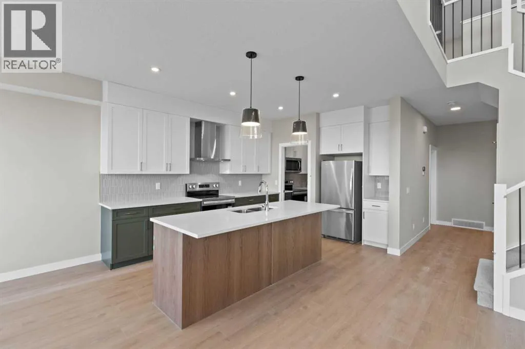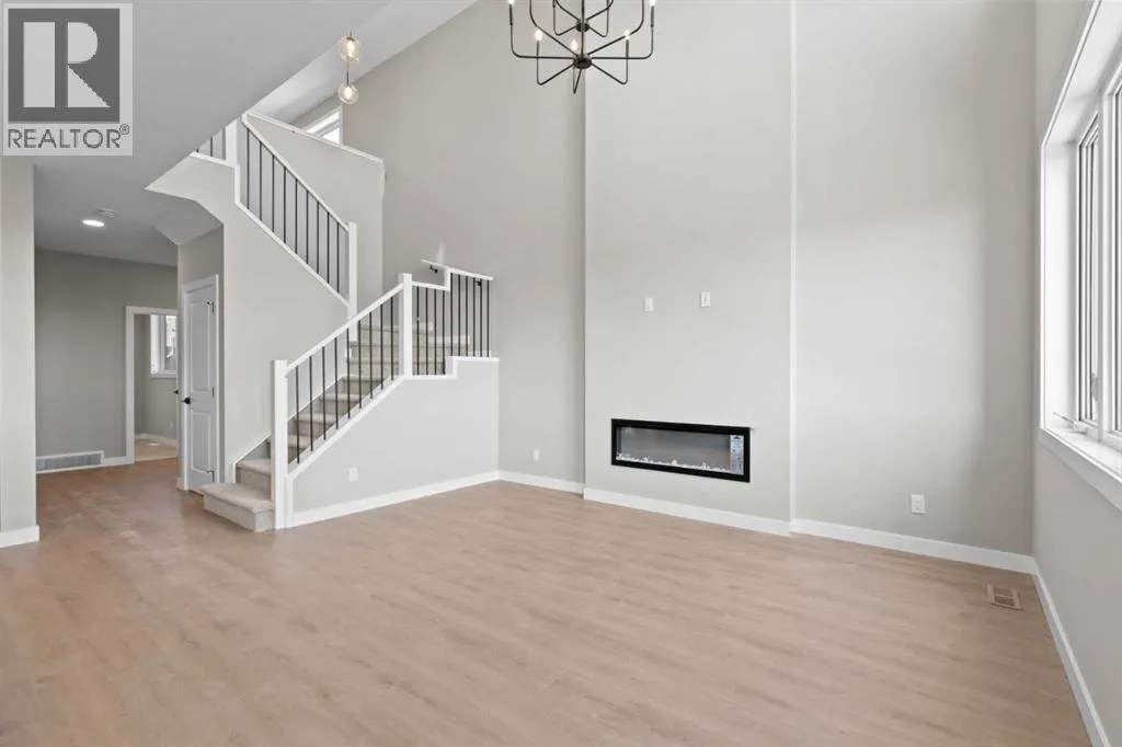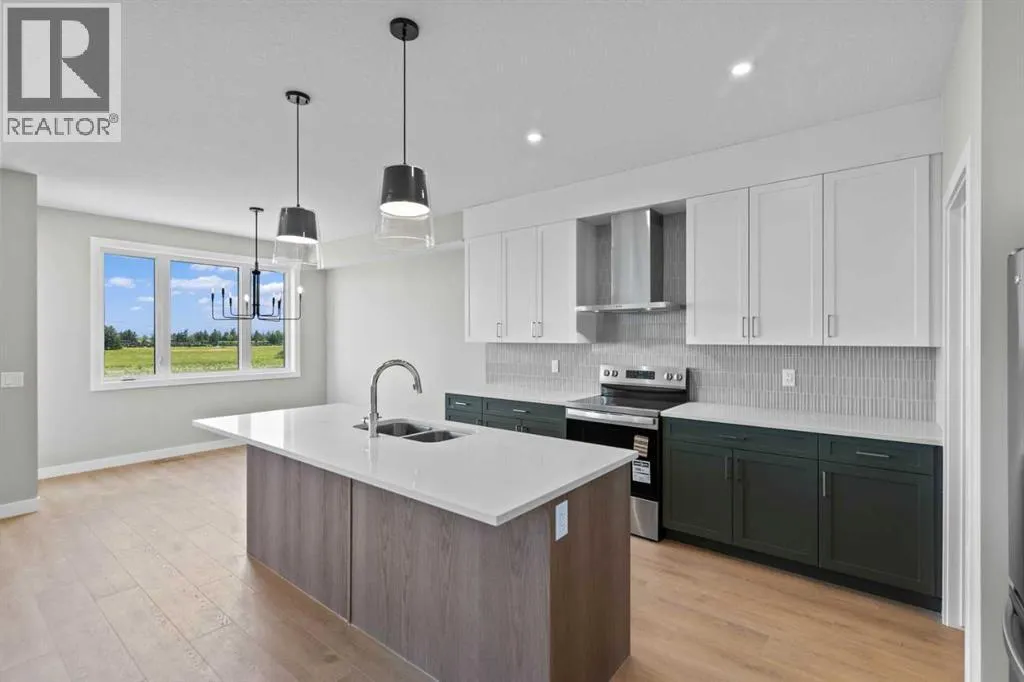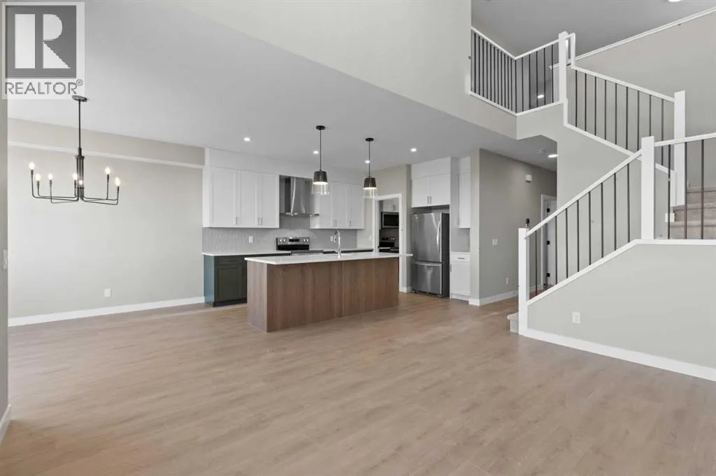 IMMEDIATE POSSESSION | 2,277 SQ.FT. | 5-BED | 3-BATH | MAIN FLOOR BED + BATH | OPEN TO ABOVE | SPICE KITCHEN | SEPARATE SIDE ENTRANCE | DECK | FRONT LANDSCAPING | HARDIE BOARD SIDING | This stunning home by Crystal Creek Homes BACKS ONTO GREENSPACE and is designed for everyday family life. The MAIN FLOOR has a BEDROOM and FULL BATH, perfect for grandparents or anyone who prefers to avoid stairs. Or use it as a home office. The standout kitchen features full-height cabinetry, quartz counters, and a SPICE KITCHEN to keep fragrant cooking contained. An open-to-above great room with large windows fills the space with light, and the dining area opens onto a rear deck thatâs perfect for summer barbecues and morning coffee. Upstairs there are four bedrooms, including a spacious primary suite, a bonus room, a 5-piece bathroom, and convenient laundry. The 9' BASEMENT and separate SIDE ENTRANCE provides future suite potential (subject to approval and permitting by the City). Hardie board siding adds durability, and a full builder warranty is included for peace of mind. Belvedere offers quick access to Stoney Trail, East Hills shopping, and future parks and schools. Book your showing today! (id:27476)