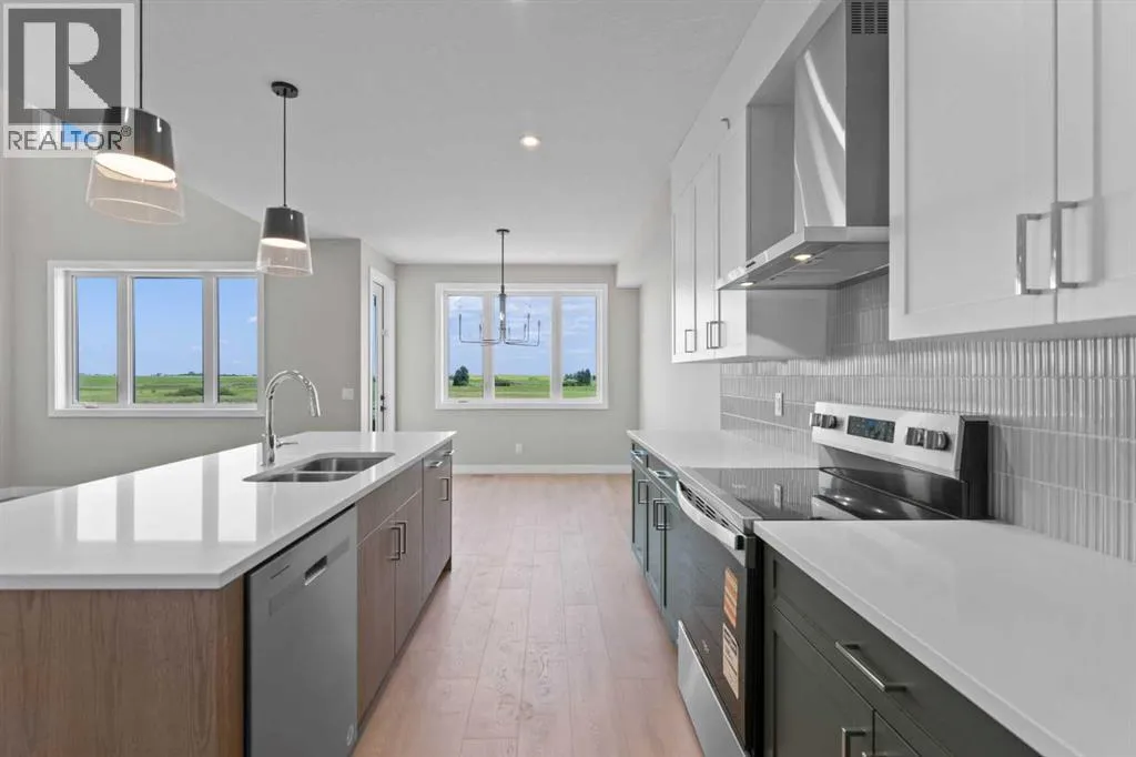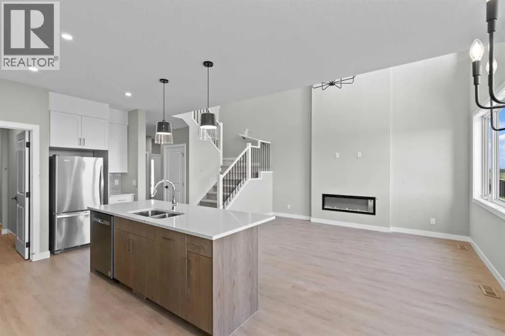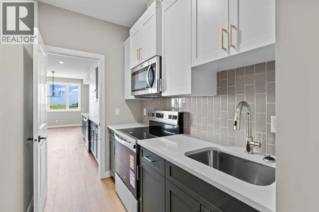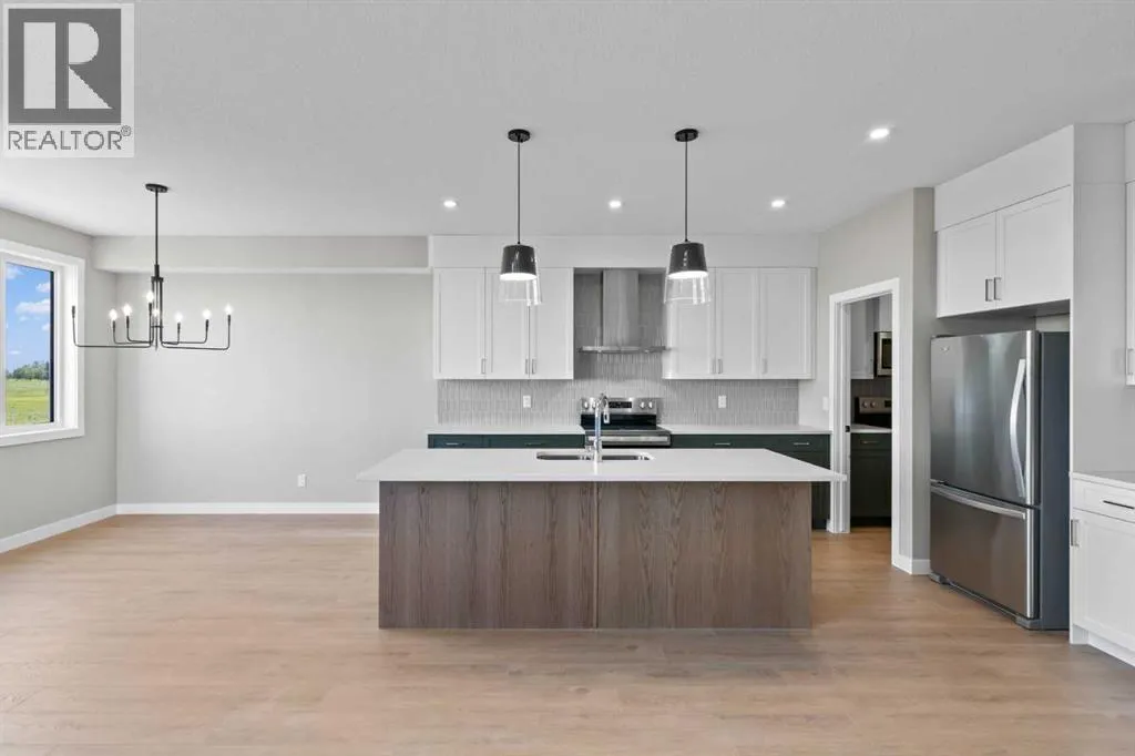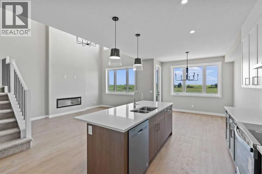 IMMEDIATE POSSESSION | 2,277 SQ.FT. | 5-BED | 3-BATH | MAIN FLOOR BED + BATH | OPEN TO ABOVE | SPICE KITCHEN | SEPARATE SIDE ENTRANCE | DECK | FRONT LANDSCAPING | HARDIE BOARD SIDING | This stunning home by Crystal Creek Homes BACKS ONTO GREENSPACE and is designed for everyday family life. The MAIN FLOOR has a BEDROOM and FULL BATH, perfect for grandparents or anyone who prefers to avoid stairs. Or use it as a home office. The standout kitchen features full-height cabinetry, quartz counters, and a SPICE KITCHEN to keep fragrant cooking contained. An open-to-above great room with large windows fills the space with light, and the dining area opens onto a rear deck thatâs perfect for summer barbecues and morning coffee. Upstairs there are four bedrooms, including a spacious primary suite, a bonus room, a 5-piece bathroom, and convenient laundry. The 9' BASEMENT and separate SIDE ENTRANCE provides future suite potential (subject to approval and permitting by the City). Hardie board siding adds durability, and a full builder warranty is included for peace of mind. Belvedere offers quick access to Stoney Trail, East Hills shopping, and future parks and schools. Book your showing today! (id:27476)