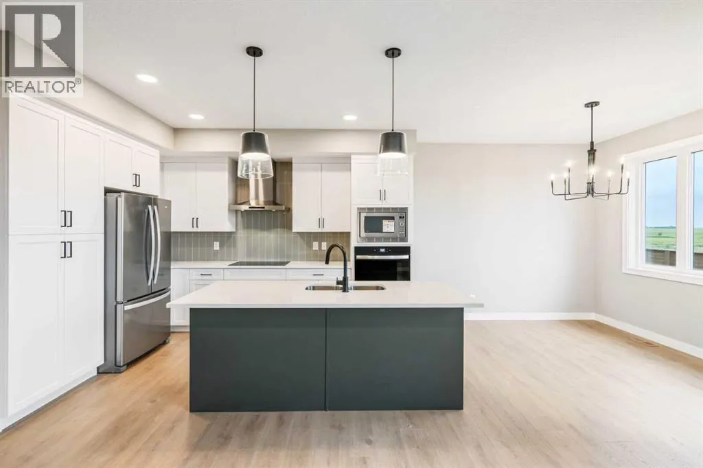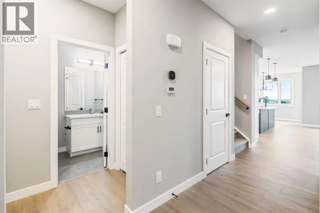 2,028 SQ.FT. | 3+1-BED | 3-BATH | GOURMET KITCHEN | SEPARATE ENTRANCE | HARDIE BOARD SIDING | DECK | FRONT LANDSCAPING | This MOVE-IN-READY home by Crystal Creek Homes combines OPEN, LIGHT-FILLED living with thoughtful design. The MAIN FLOOR features a GREAT ROOM with FIREPLACE and a GOURMET KITCHEN with full-height cabinetry, quartz countertops, wall oven, and a LARGE ISLAND thatâs perfect for gathering. A FLEX ROOM beside a FULL BATH works well for guests or as a MAIN FLOOR BEDROOM. Upstairs, 3 bedrooms include a spacious PRIMARY SUITE with a SPA-INSPIRED ENSUITE, along with a bonus room and laundry for convenience. The 9' BASEMENT with SEPARATE ENTRANCE offers future legal suite potential (subject to City approval & permitting). A rear deck and front landscaping is included. Belvedere offers quick access to Stoney Trail, East Hills Shopping Centre, and planned parks and schools. This home professionally curated and includes a NEW HOME WARRANTY for your peace of mind. Move in before the school year begins - book your showing today. (id:27476)