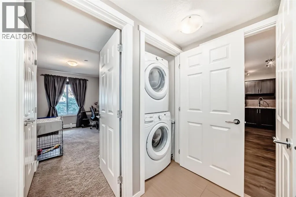 Welcome to a beautifully curated 2-bedroom, 2-bath home that balances comfort with quiet sophistication. Designed for easy living, the open floor plan offers a seamless flow, ideal for both relaxed evenings and effortless entertaining.The kitchen is a true standout â with granite countertops, full-height tiled backsplash, upgraded cabinetry, and a modern fridge with water and ice dispenser. Rich vinyl plank flooring adds warmth and durability throughout, while the extra cabinetry provides the practical storage every well-lived-in home deserves.The primary suite features a walk-through closet and private ensuite with custom cabinetry â a peaceful retreat tucked away from the dayâs demands. The second bedroom offers its own smart design with a cheater door to the main bath â perfect for guests, a home office, or flexible living.Youâll appreciate the titled underground parking stall, additional titled surface stall, and separate storage locker â all located within a well-managed, conveniently situated complex. Just across the street, a large urban park connects to the cityâs pathway system, offering space to walk, cycle, or simply step away from the noise.Close to transit, shopping, dining, and main city routes, this home is perfectly placed for those seeking a more thoughtful pace without sacrificing convenience.Elegant. Efficient. Easy to love. (id:27476)