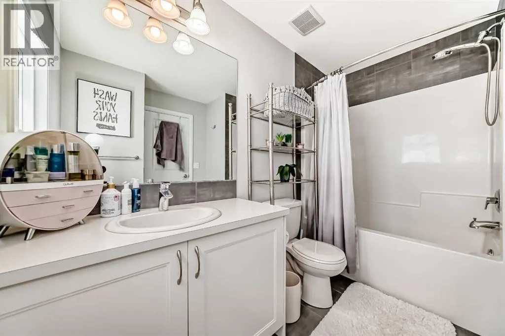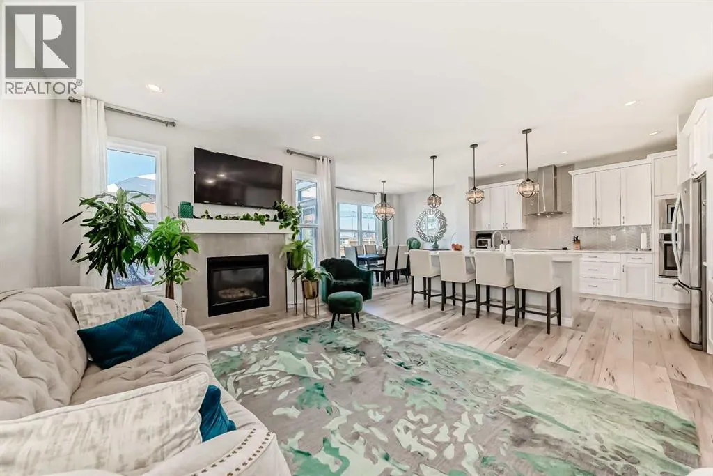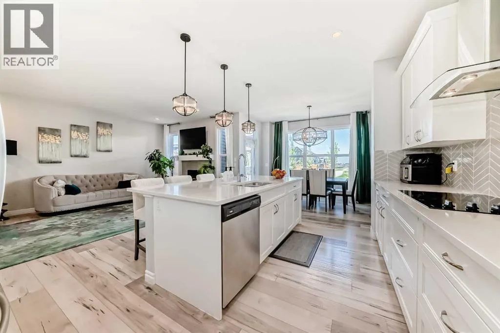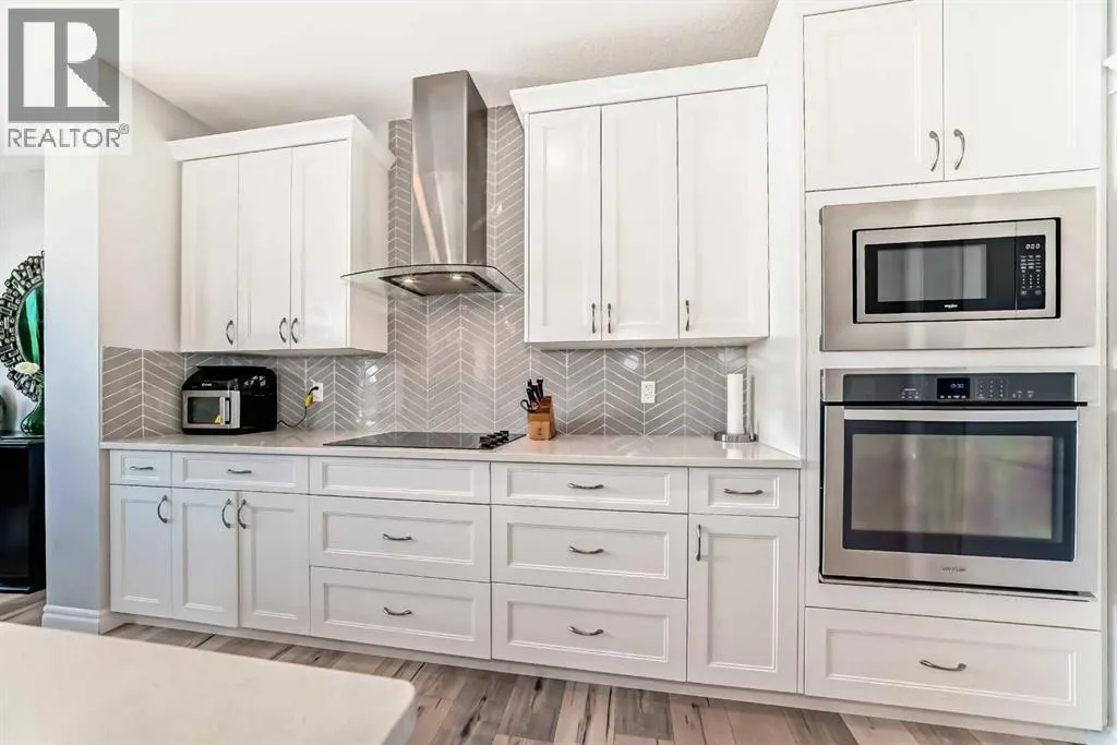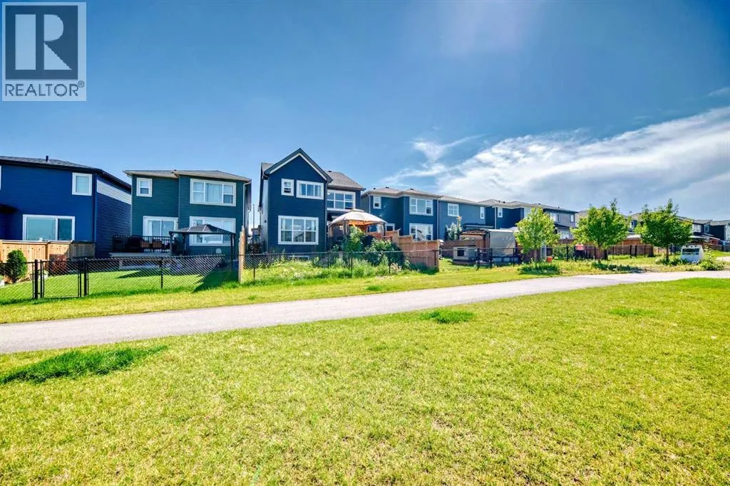 Stunning-Custom built Trico award winning floor plan with double attached garage in popular friendly Community of Belmont!! Backing onto GREEN-SPACE WITH A DOWNTOWN VIEW!! Welcome to this exceptional 2-storey home. This property boasts a unique layout that sets it apart in the neighborhood. Spacious living is offered with over 2,500 sqft of developed space, 9ft ceilings on the main, 2.5 -bathrooms, grand BONUS ROOM, with vaulted ceilings, and a Convenient main floor DEN/OFFICE, and all this with custom finishes. As you enter inside this home you are greeted by spacious foyer leading you to an inviting open concept layout with abundance of natural light. The living room features a cozy gas fireplace with sleek tile surround and mantle, and large windows creating a warm and welcoming space. The main floor DEN/OFFICE flows nicely with the rest to provide you that option to work from home, and all of this is Covered by gorgeous modern wide plank laminate flooring. The Kitchen is a chefs dream and offers large quartz center island perfect for casual dining, along with spacious dining area for family meals. The custom kitchen cabinets are raised all the way up to 9ft ceiling with quartz countertop, with herring bone backsplash. Plenty of storage space, stainless steel appliance package, with a built-in oven and a microwave. Convenient walk-through pantry, all modern upgraded light fixtures. Huge mud room to keep everything organized and a 2pc bath completes the main floor. The second floor is perfect for a growing family, featuring, large bright bonus room with vaulted ceiling, 3-generous sized bedrooms all on opposite sides of the upper floor, for that extra privacy, a convenient main 5pc bath with quartz double vanity, and everyone's dream an upper floor laundry room. The primary bedroom is a true retreat, offering a huge walk-in closet with built-in custom shelves, and a luxurious 5-pice en-suite bath, with a soaker tub and an oversized glassed shower with a tile d bench, with custom tile all the way up to the ceiling. Custom drapes and rods throughout the home. The second and Third bedroom are spacious with large windows, and a 4-pc bath completes the upper level. The full basement is undeveloped offering 9ft ceilings with a 2-stage furnace 50-gallon hot water tank, large egress window, and is awaiting your personal touches. Beautiful curb appeal. Fully landscaped-fenced private back yard, backing onto green space, with a large deck for those BBQ gatherings, with family and friends. This home is located in a Funtastic Location, just steps away from all the major Shopping Centers, All levels of Schools, Playgrounds, Parks, and a 5 min drive to convenient Stony Trail. This is a Truly amazing home!! Call today for your private viewing!! (id:27476)